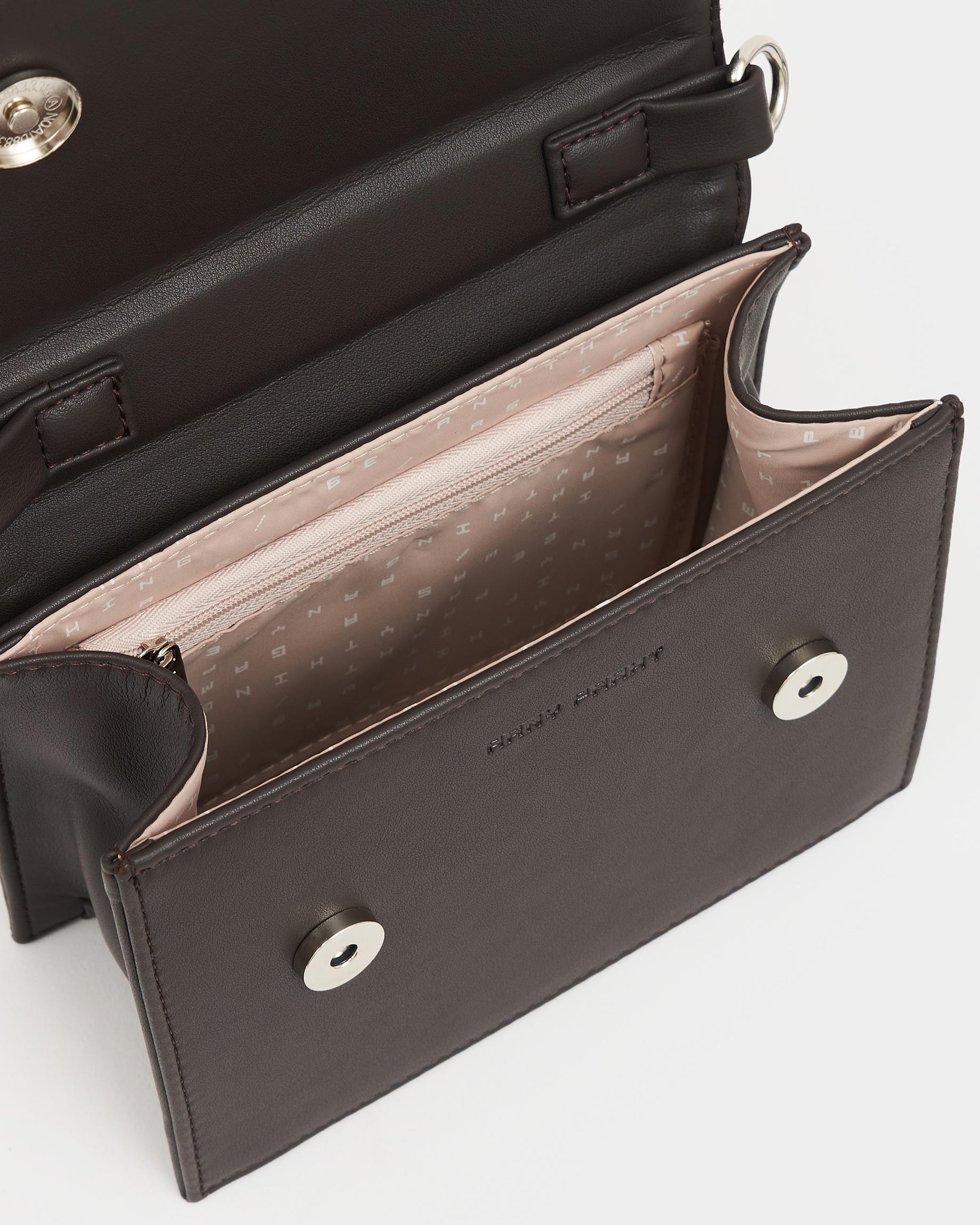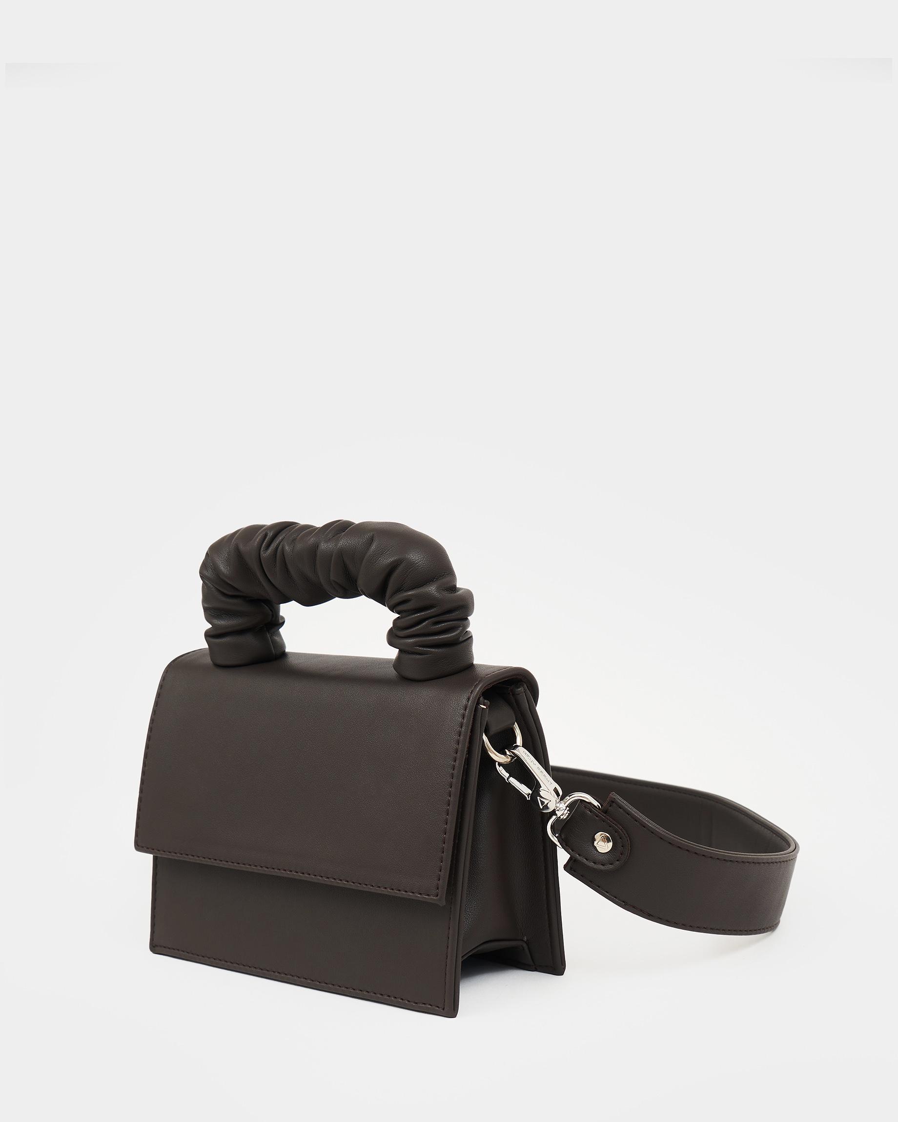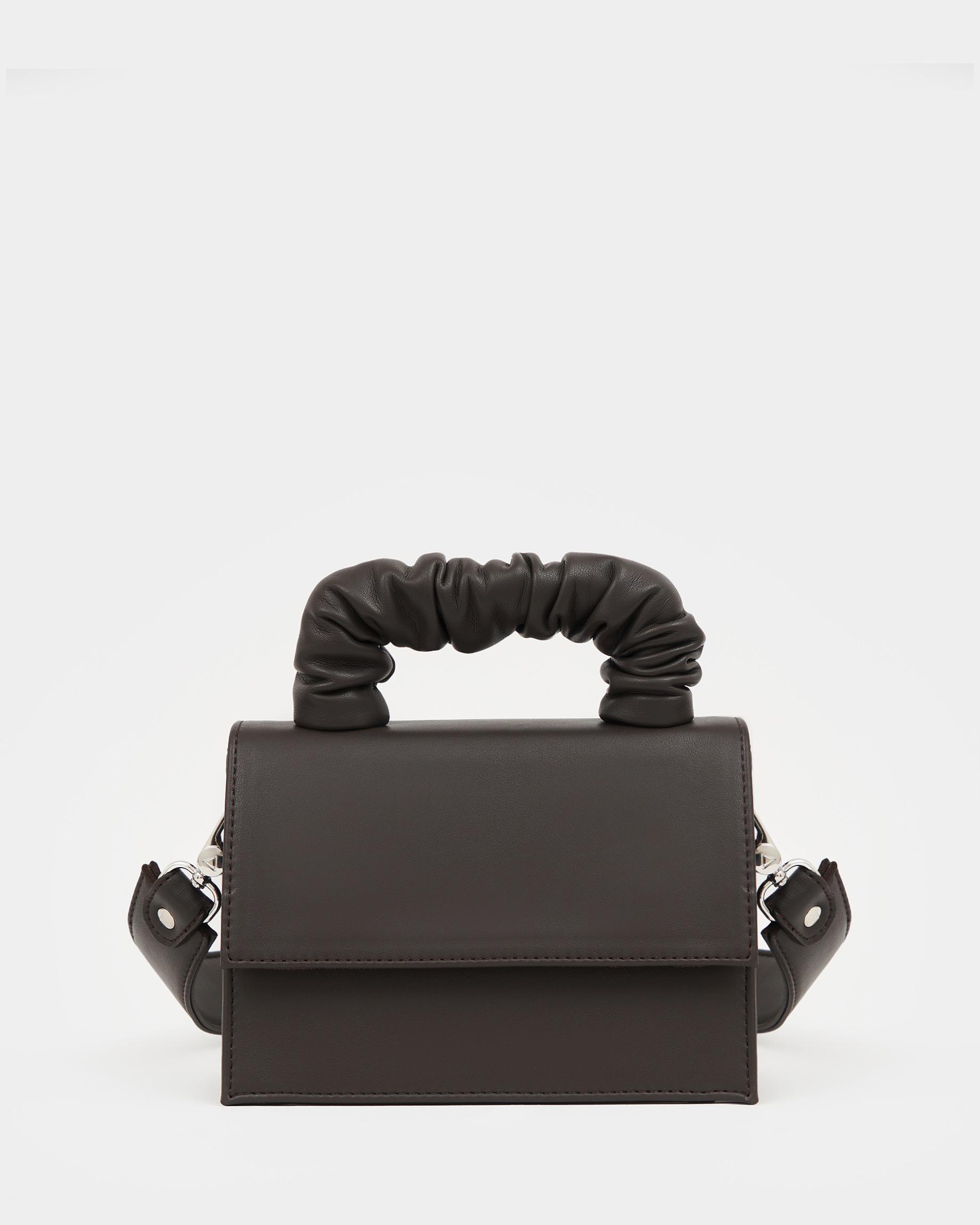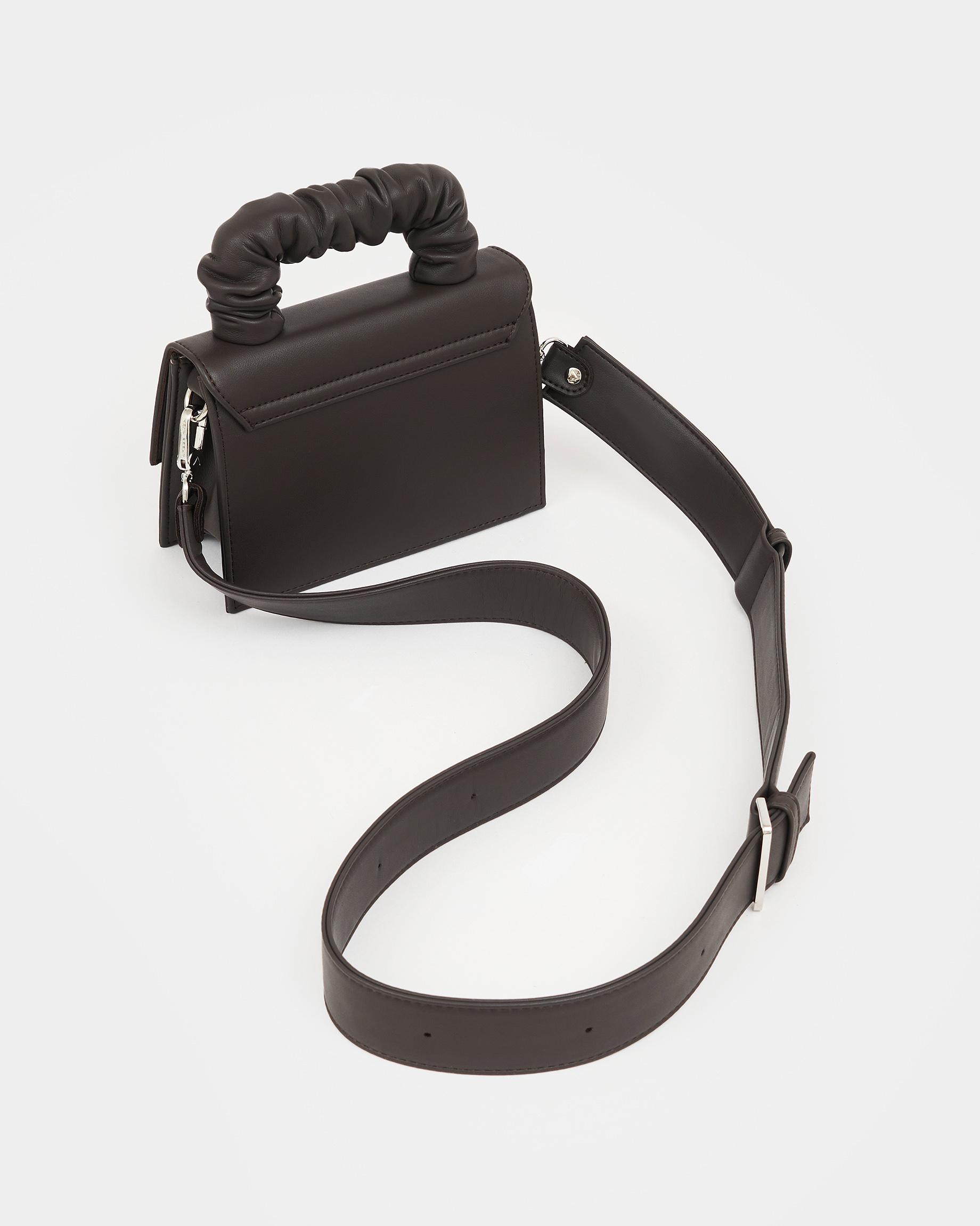 Маленькая сумка с широким ремнем в цвете кофе