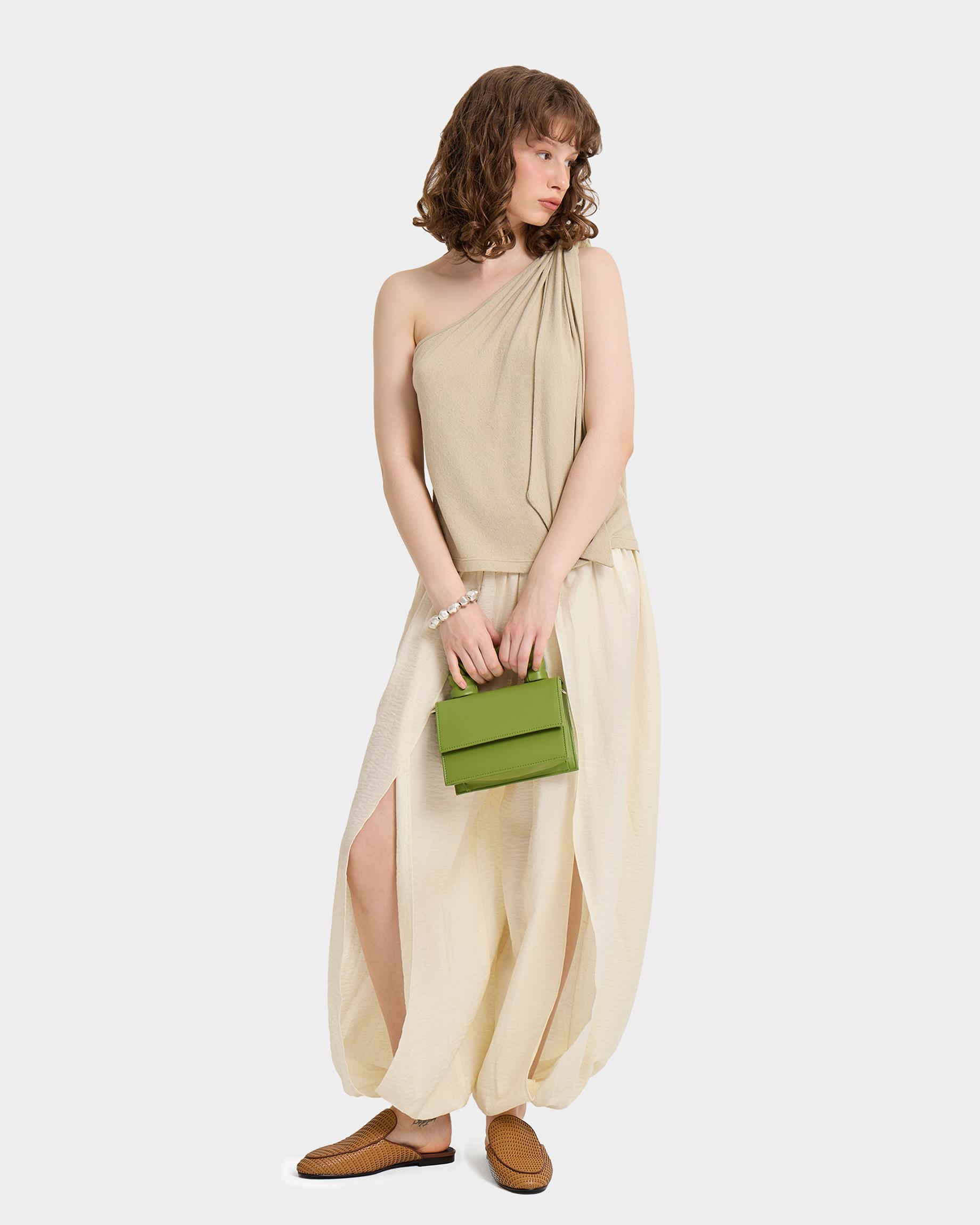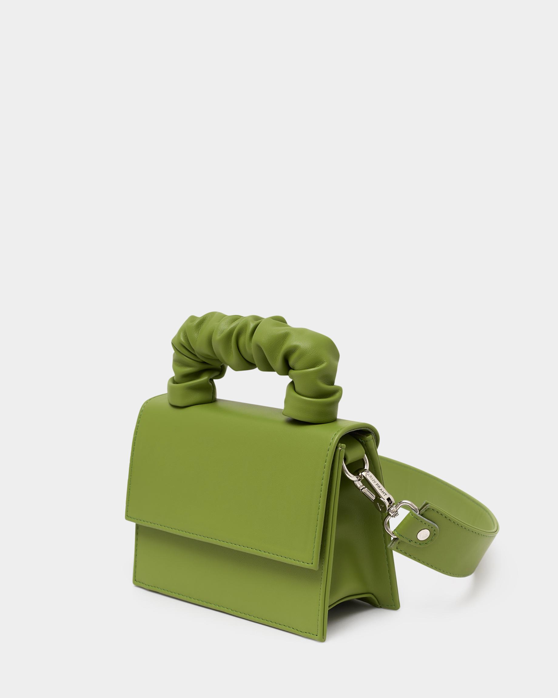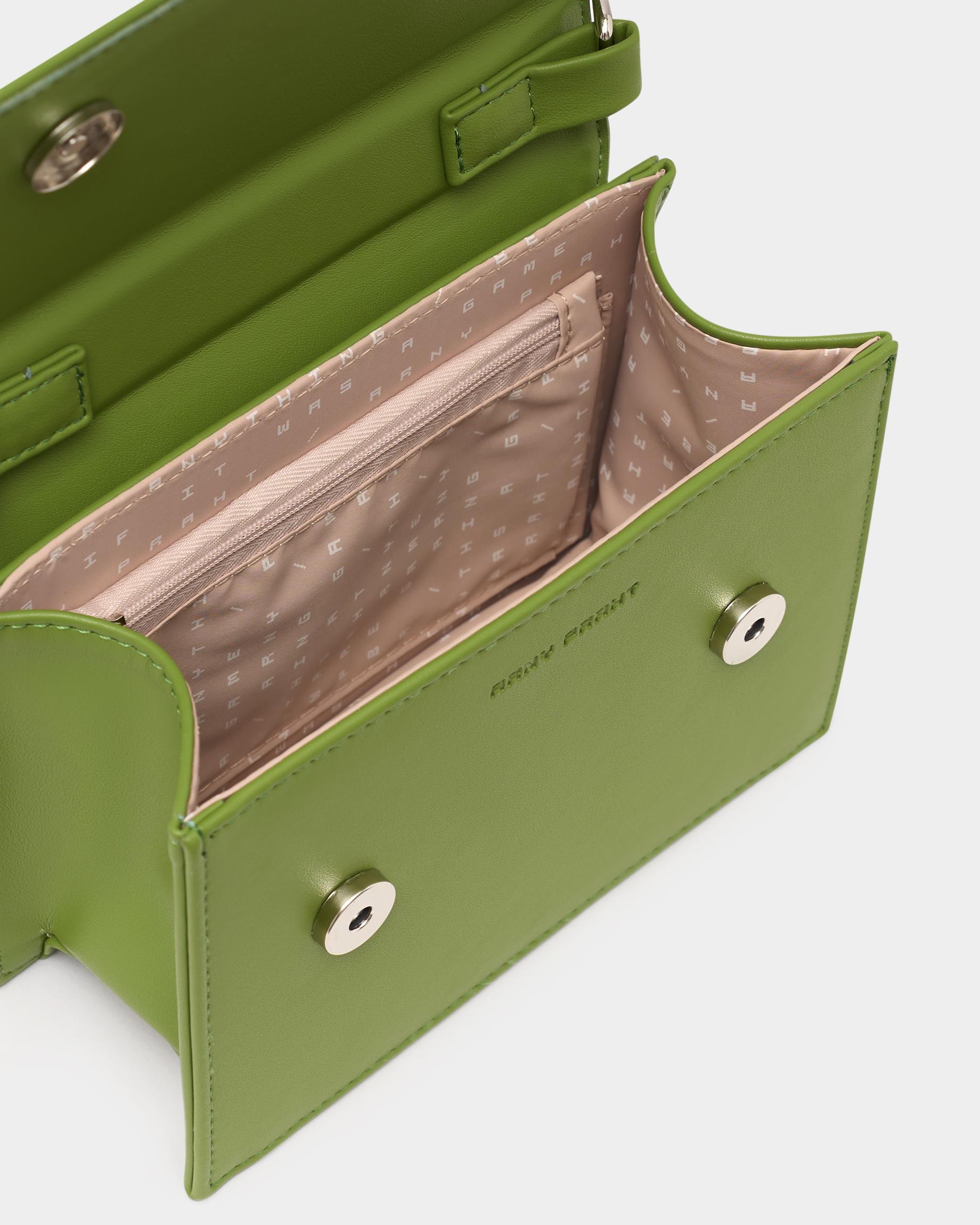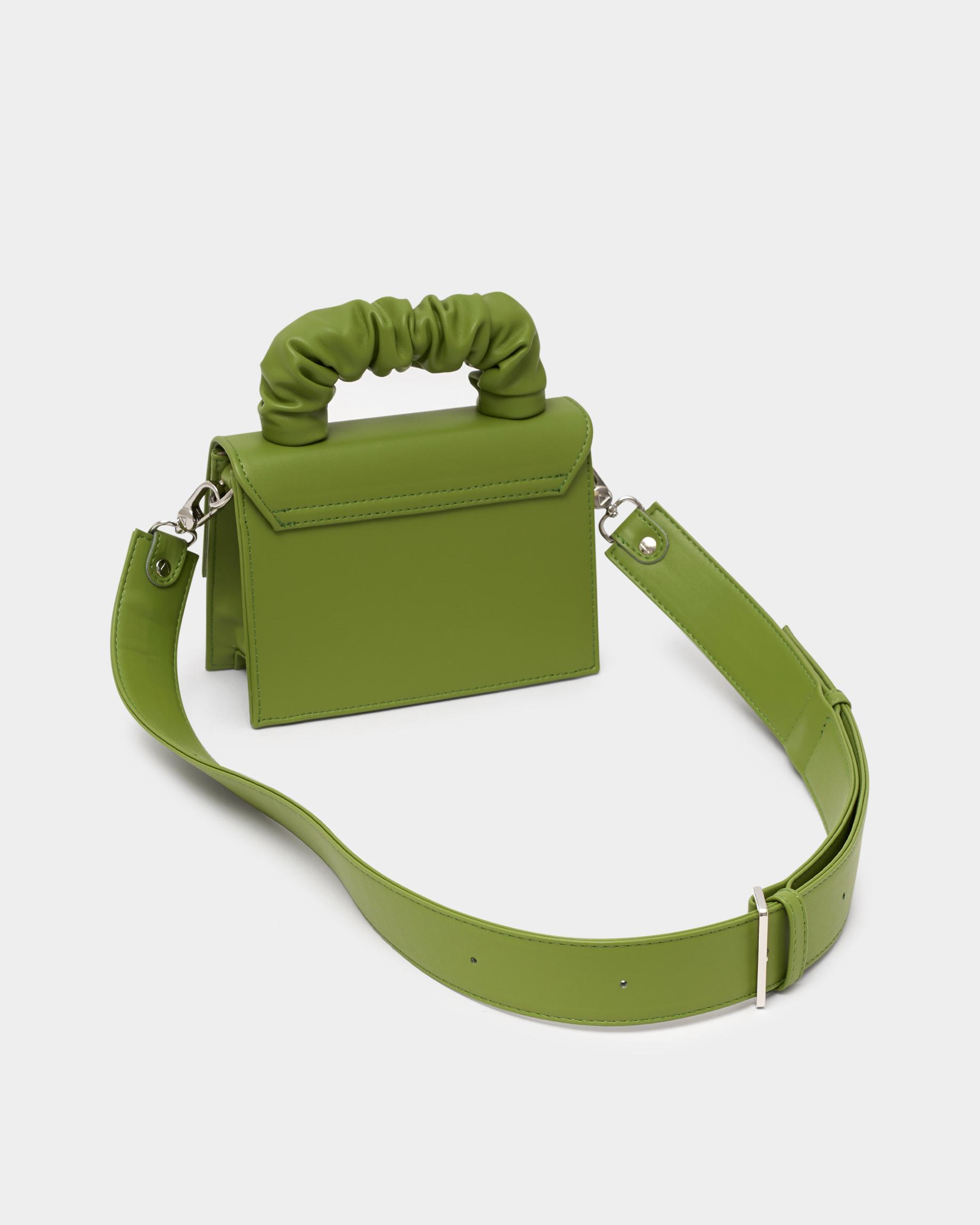 Маленькая каркасная сумка с широким ремнем в цвете киви