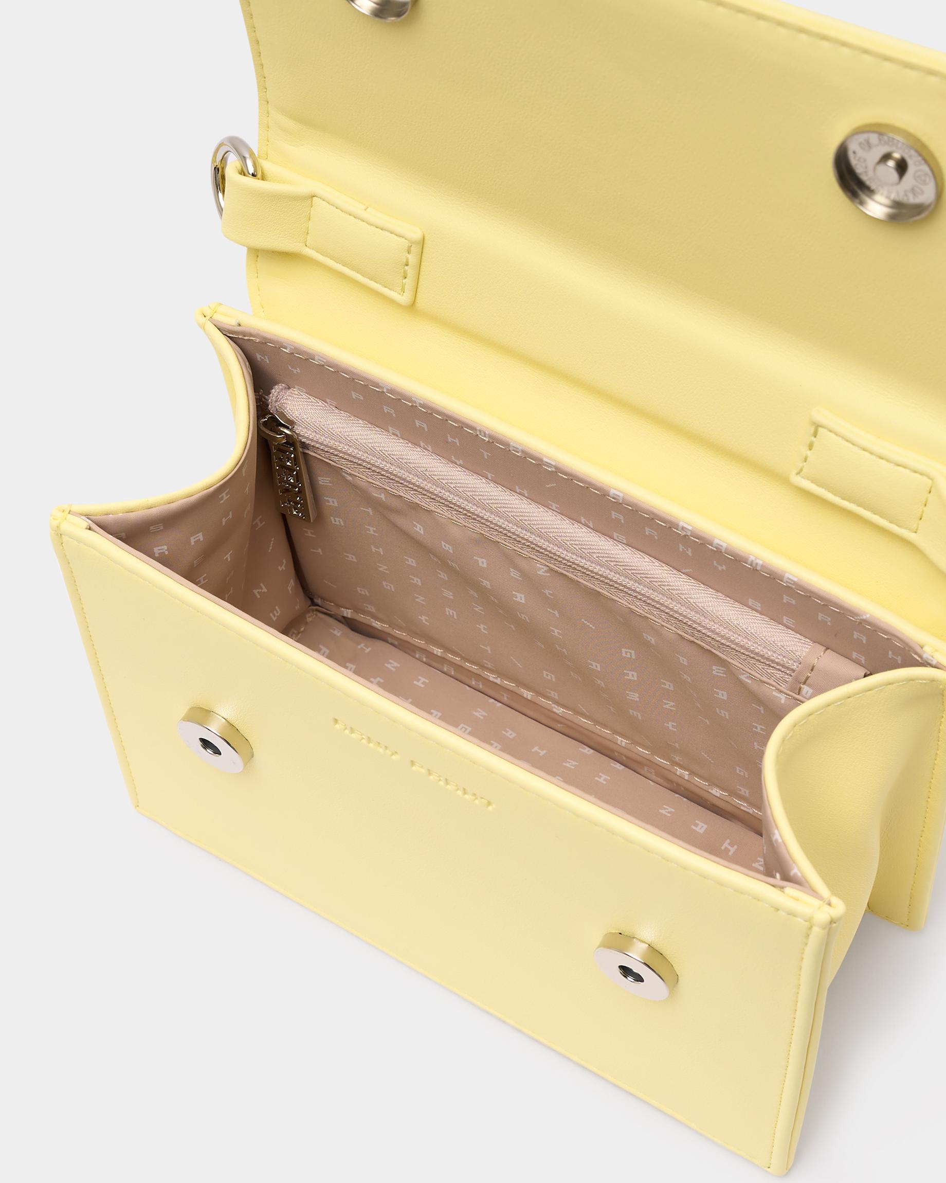 Маленькая каркасная сумка с широким ремнем в цвете лимонный сорбет