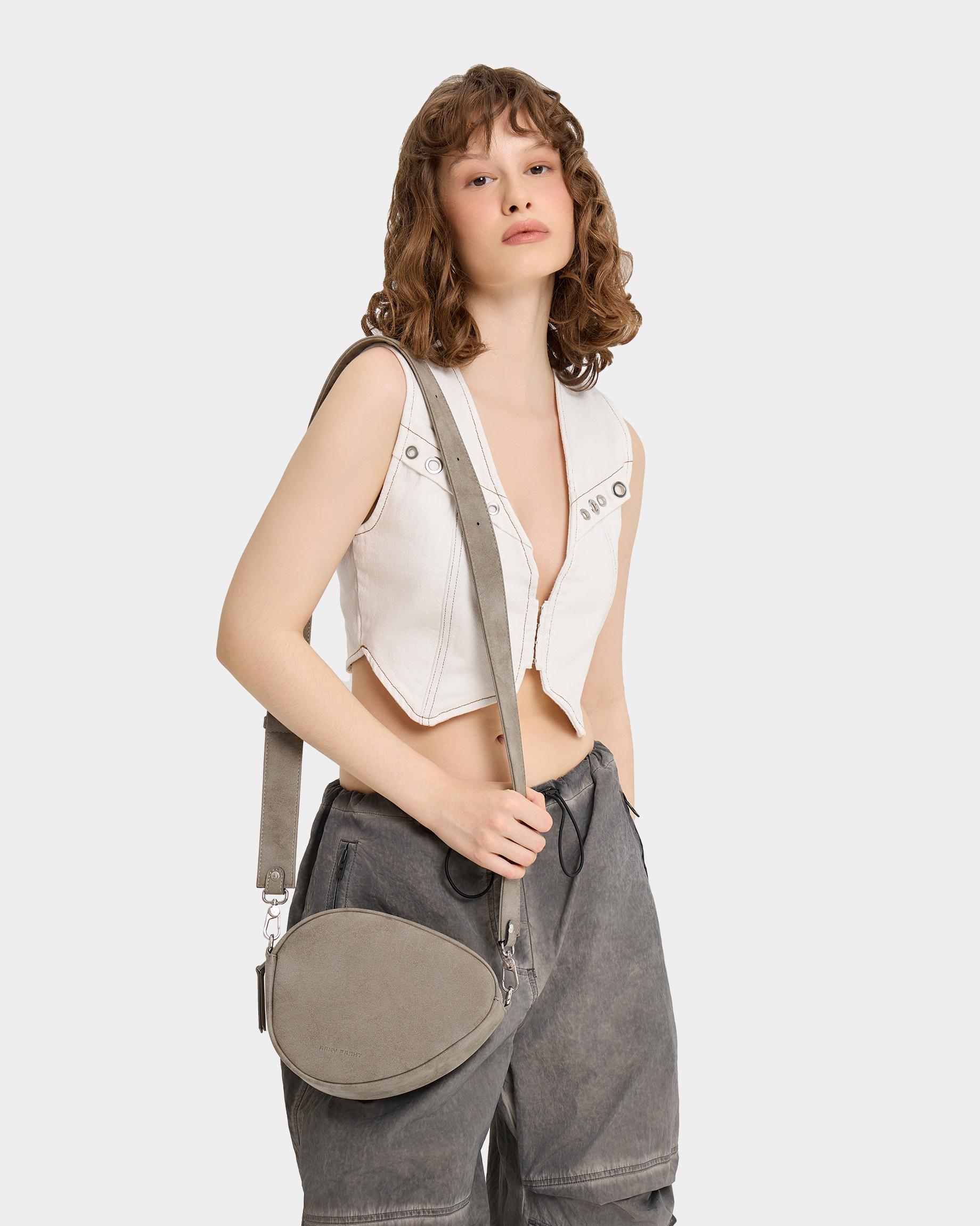 Асимметричная сумка из замшевой экокожи с широким регулируемым ремнем