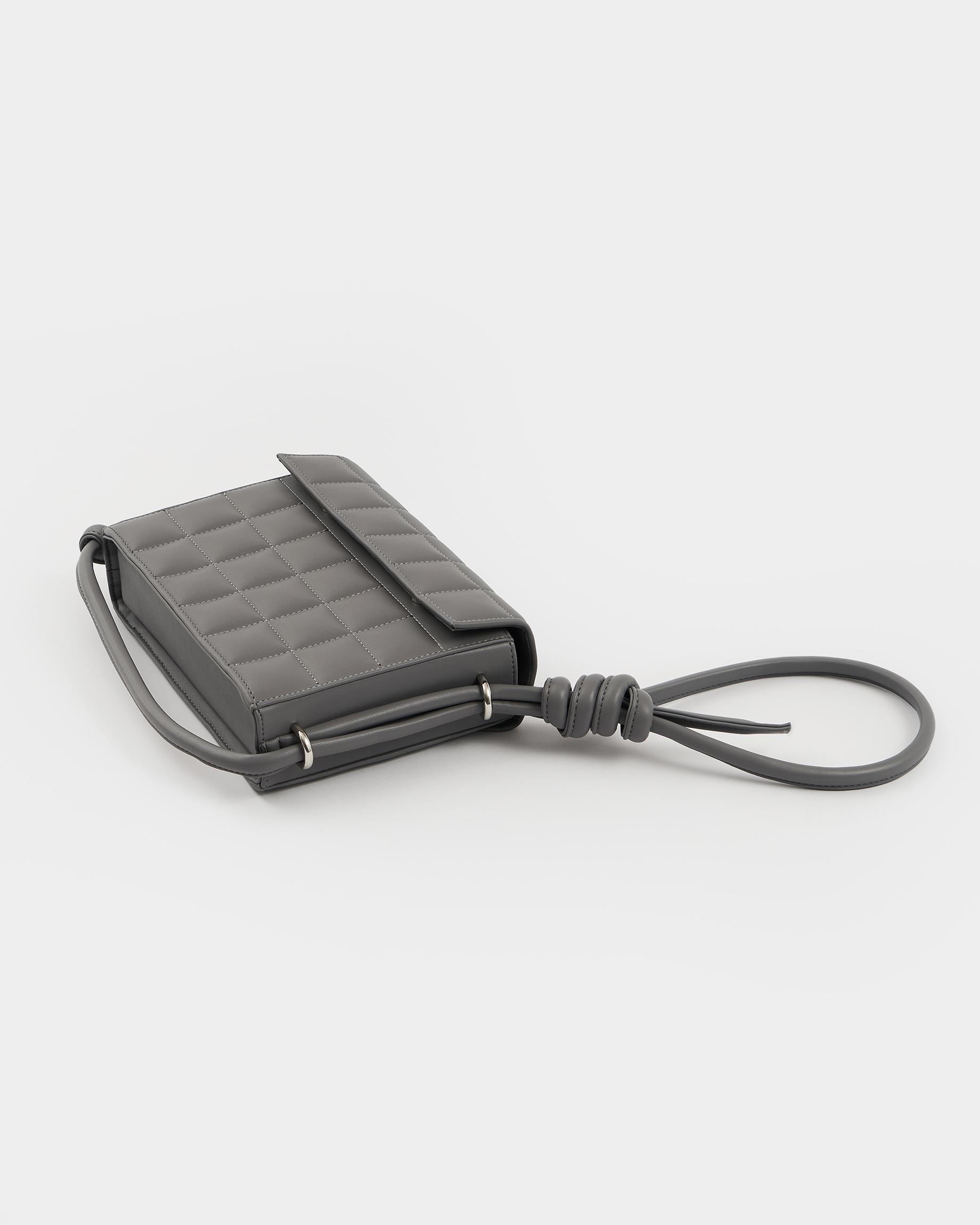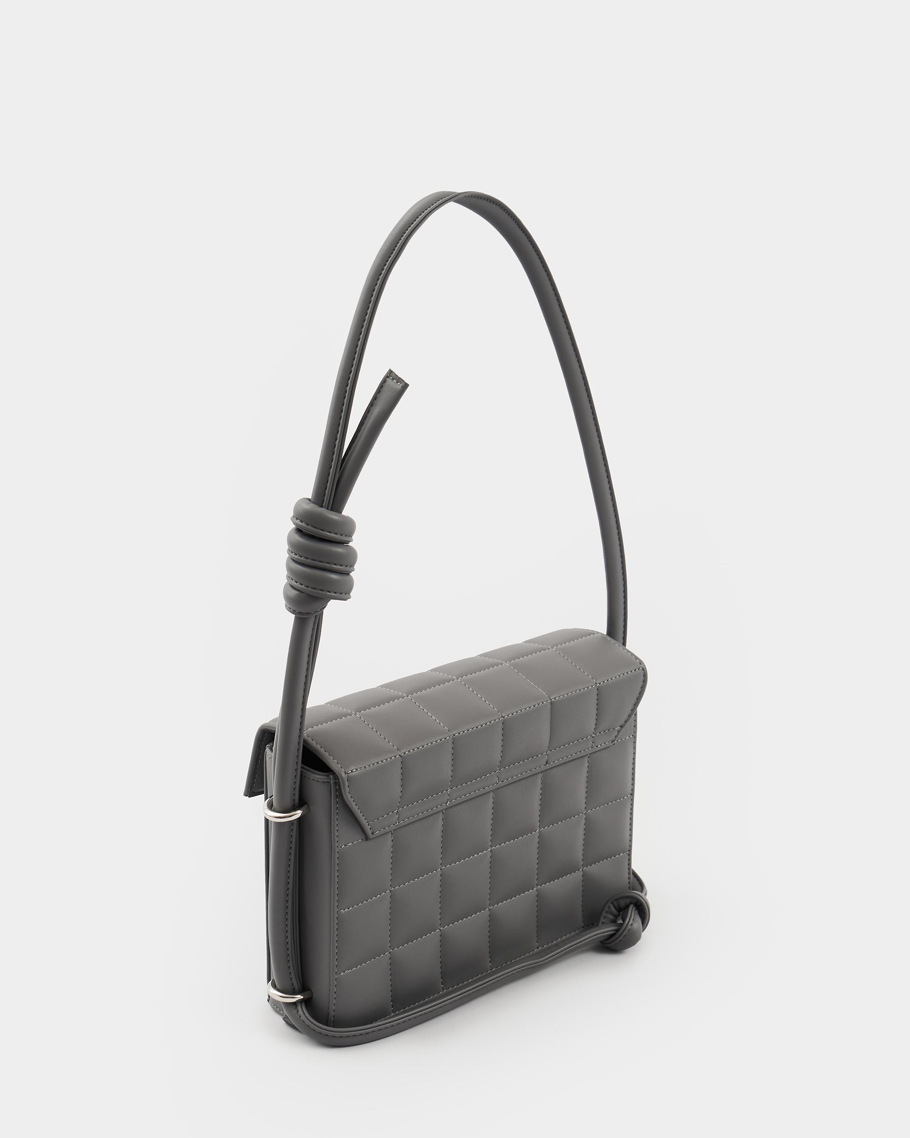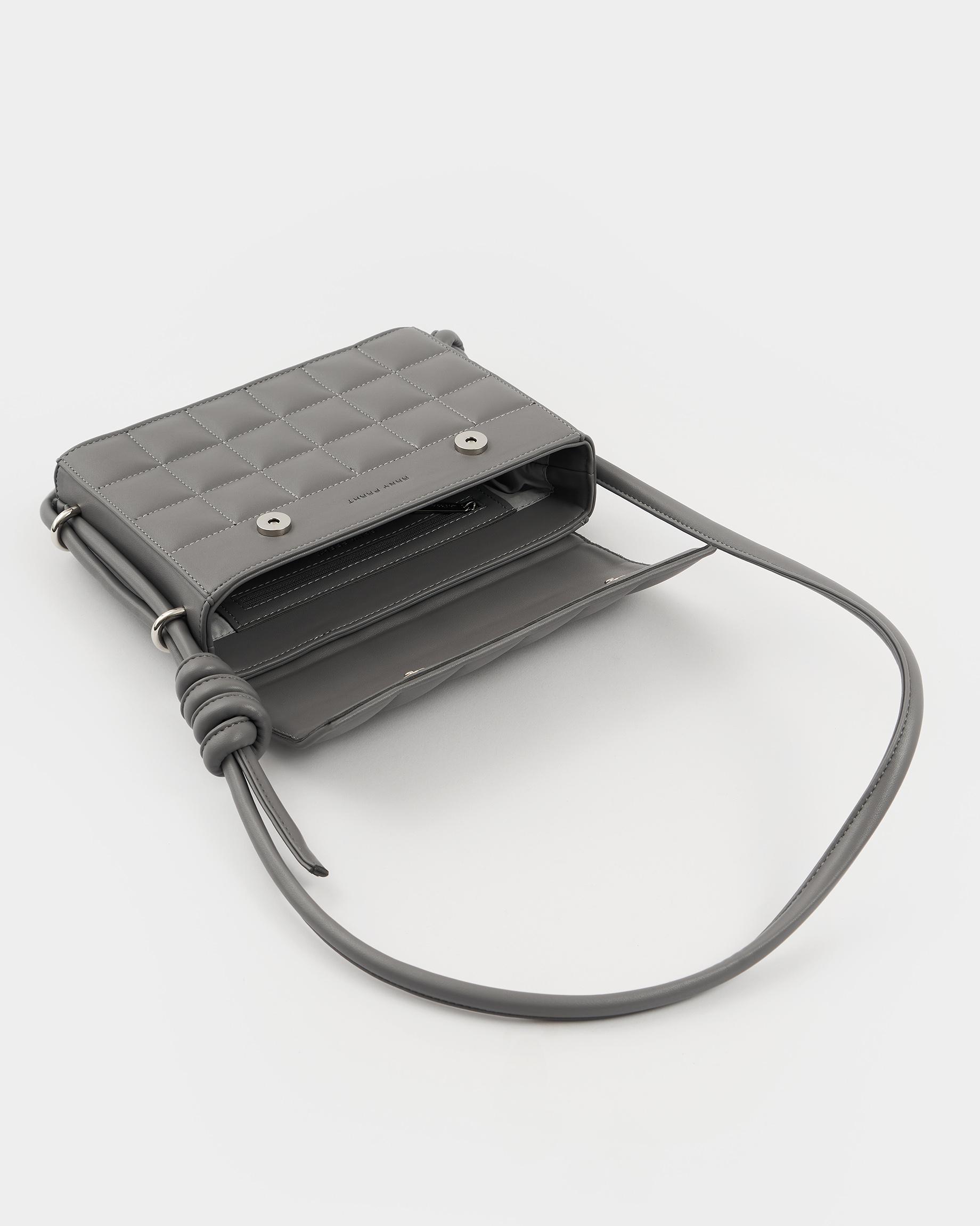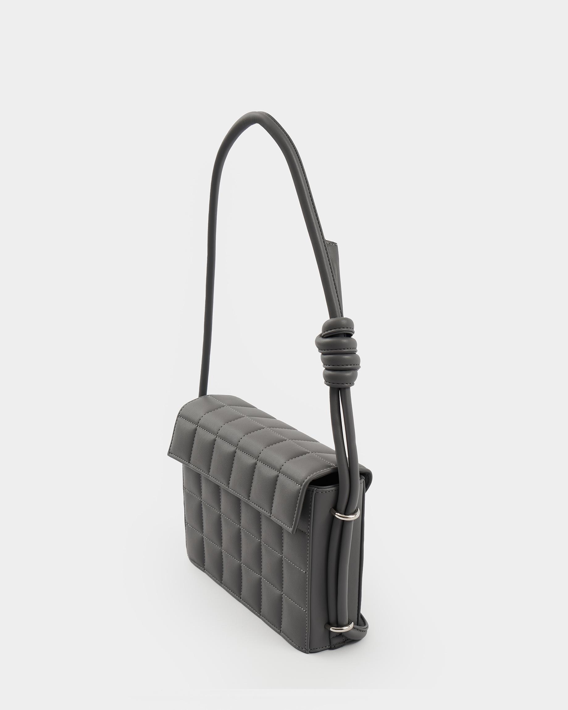 Стёганая прямоугольная каркасная сумка с тонким ремнем в виде жгута в цвете шэдоу