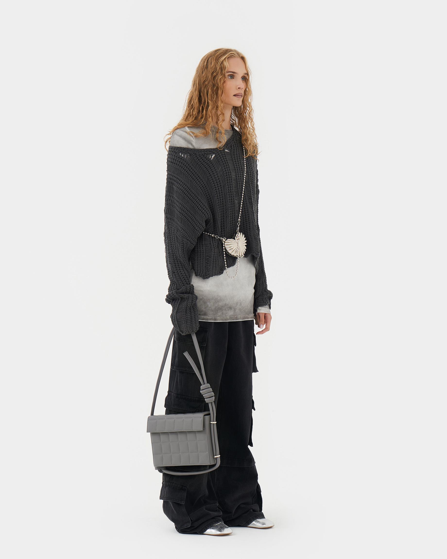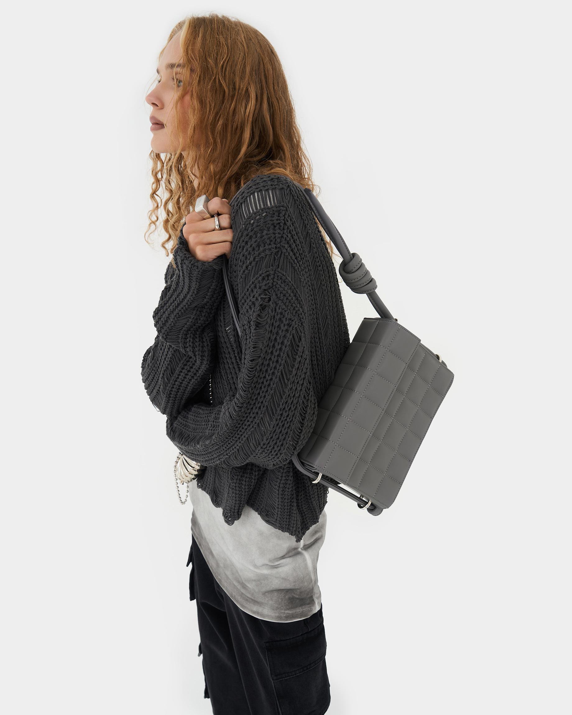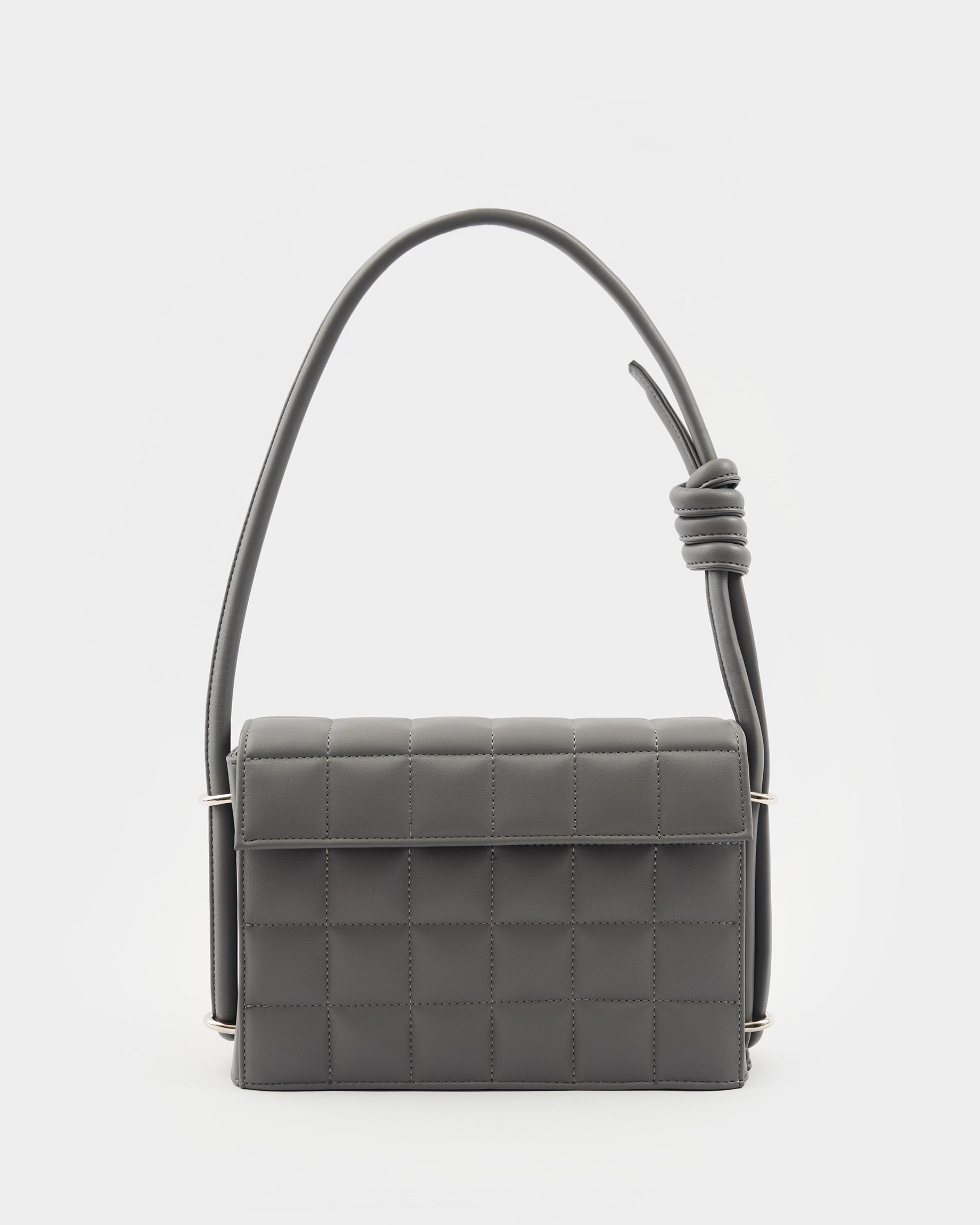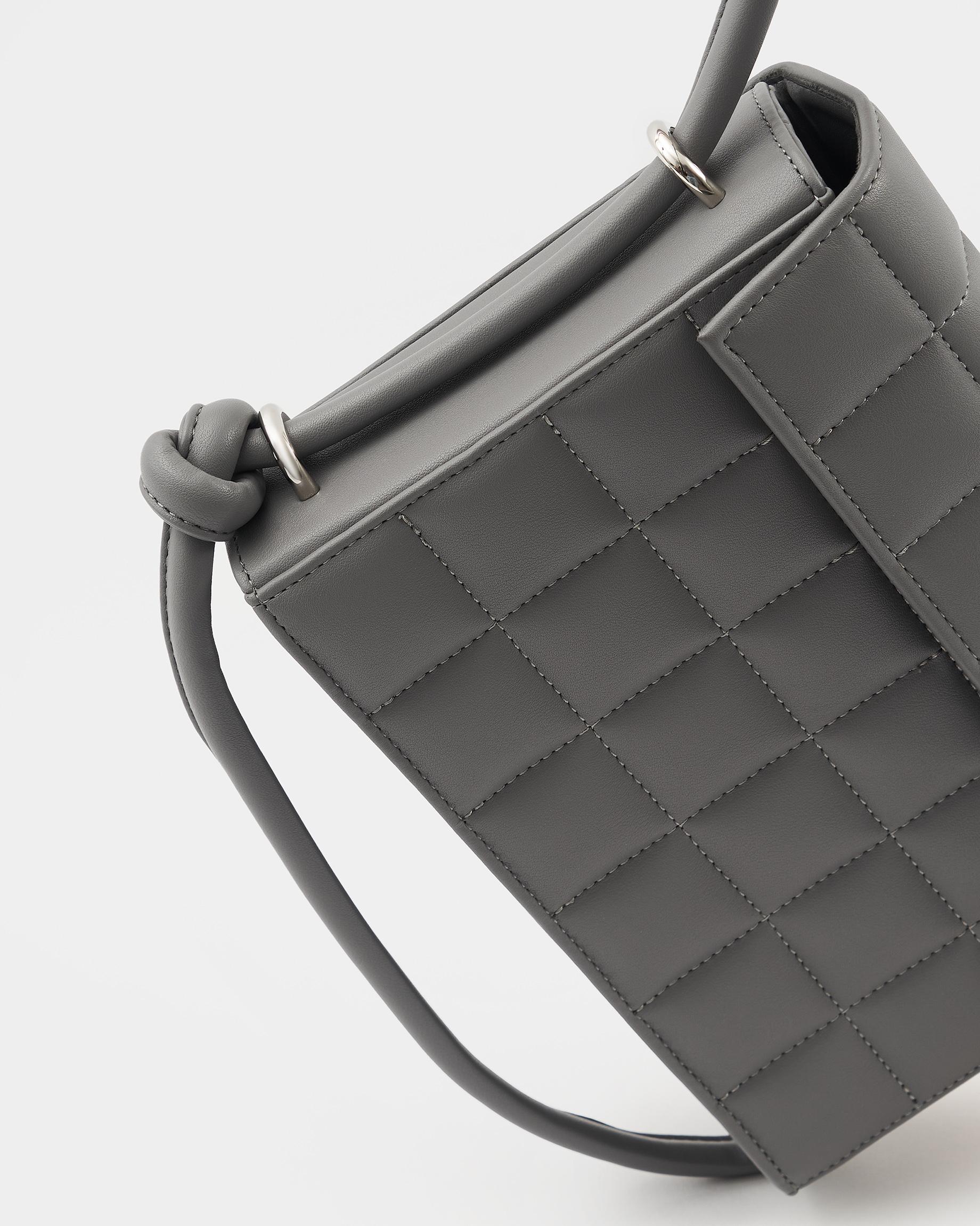 Стёганая прямоугольная каркасная сумка с тонким ремнем в виде жгута в цвете шэдоу