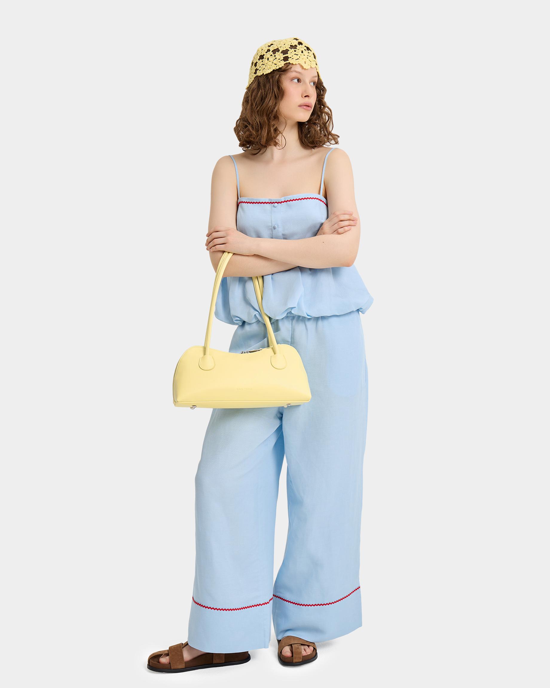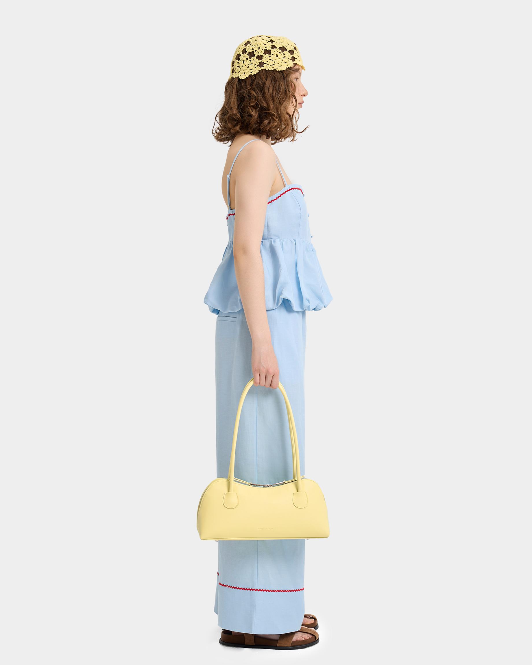 Каркасная сумка-такса с фиксированными ручками желтого цвета