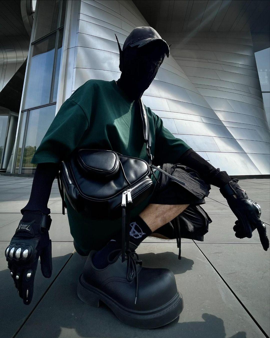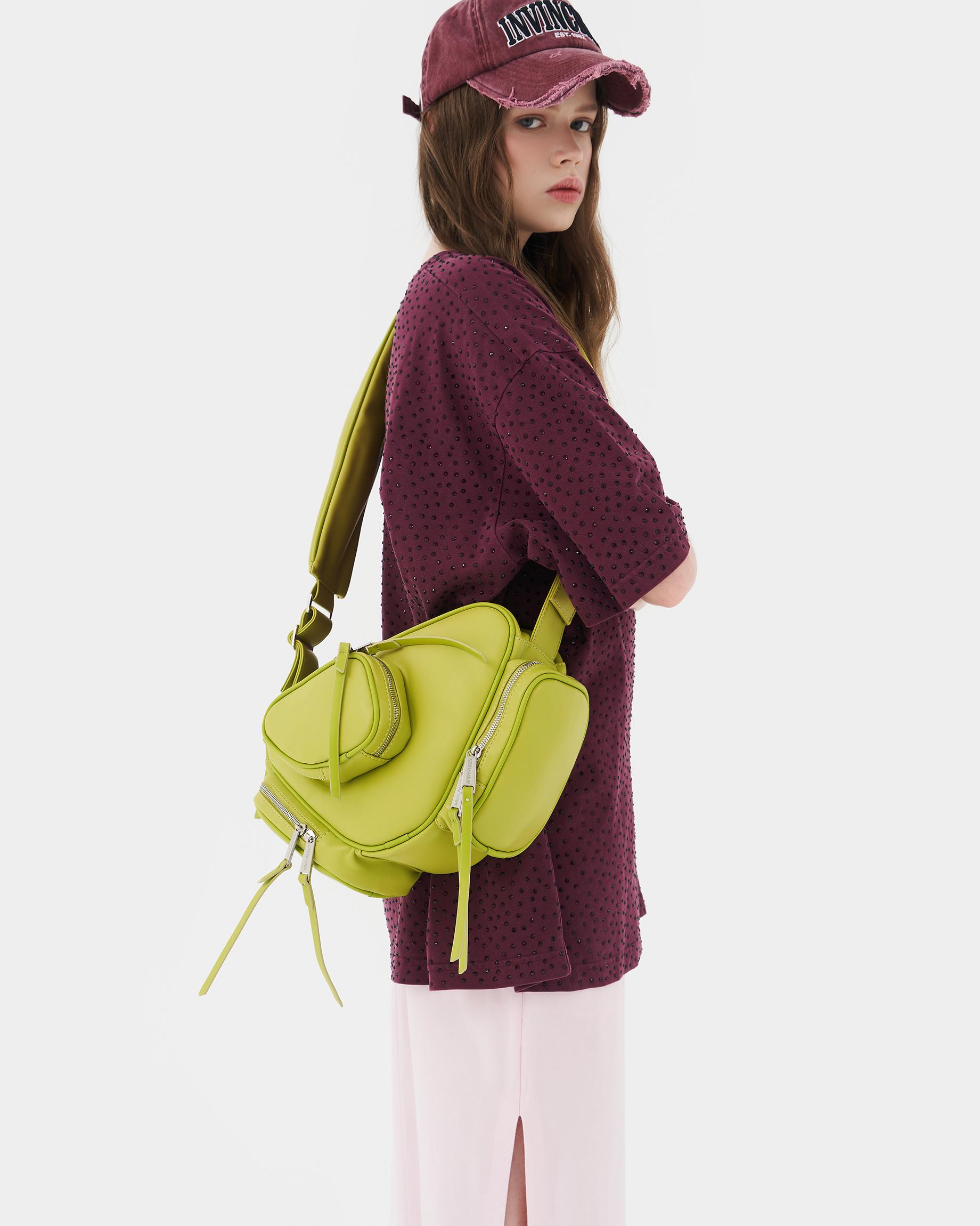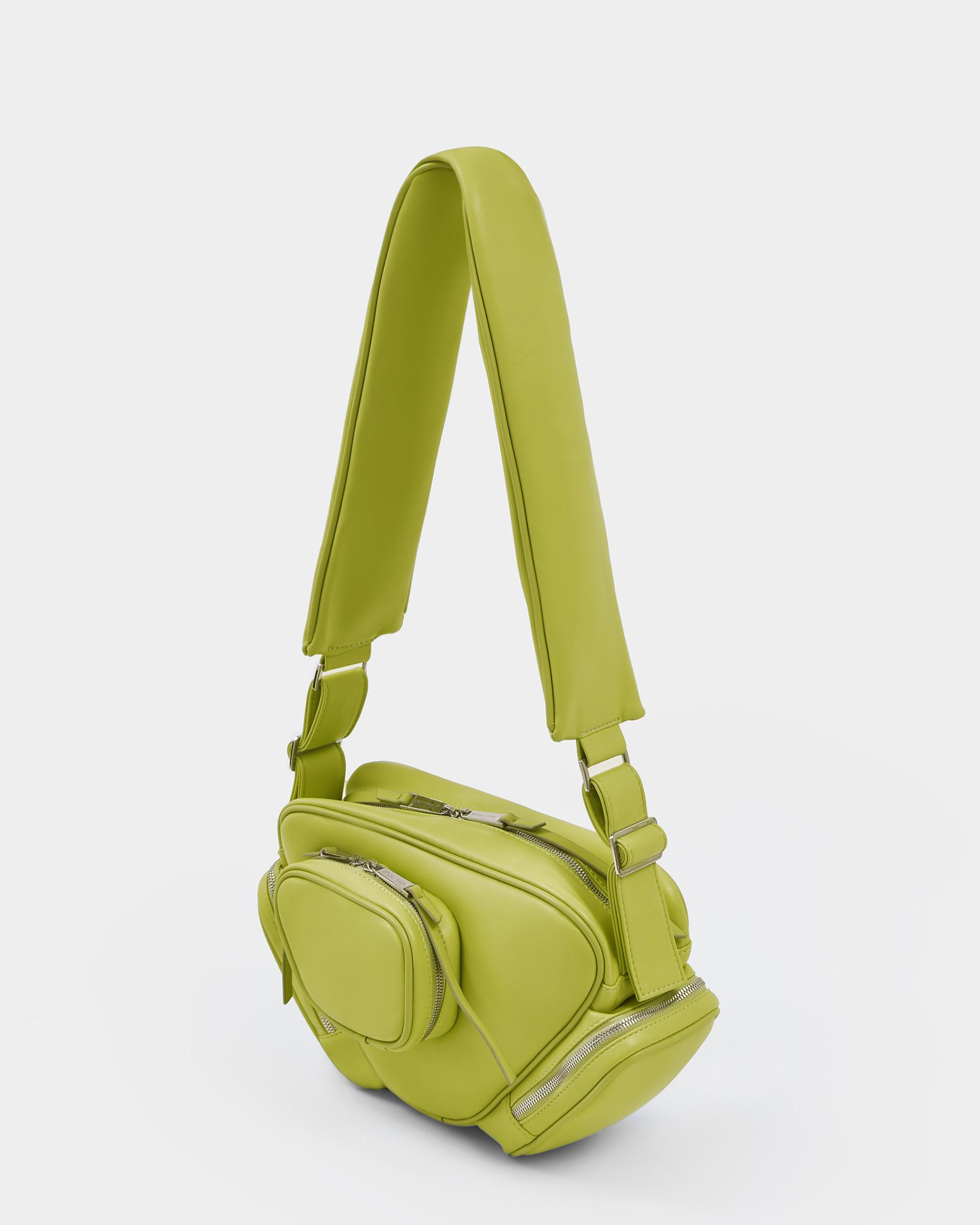 Сумка треугольной формы с объёмными накладными карманами в цвете пальма