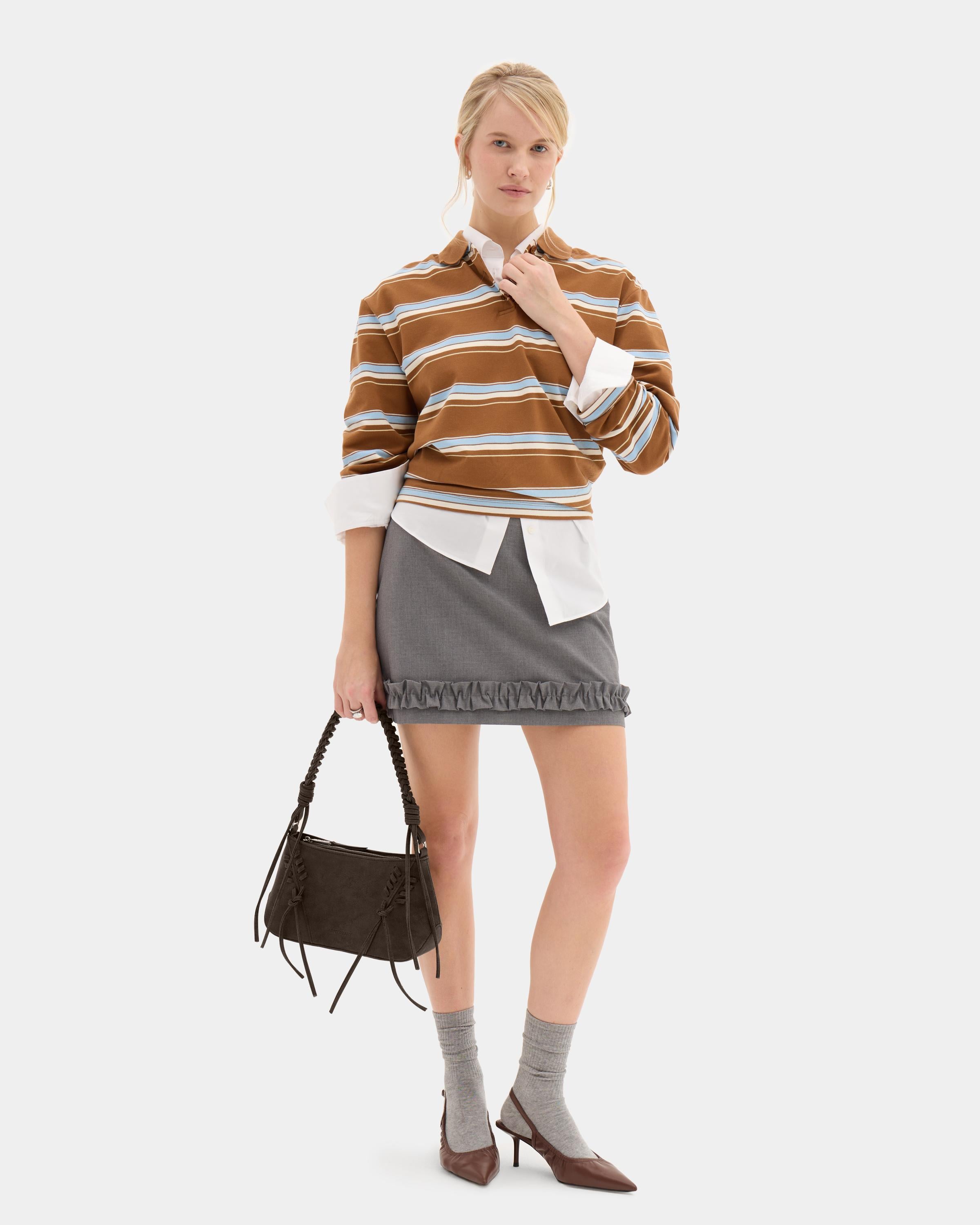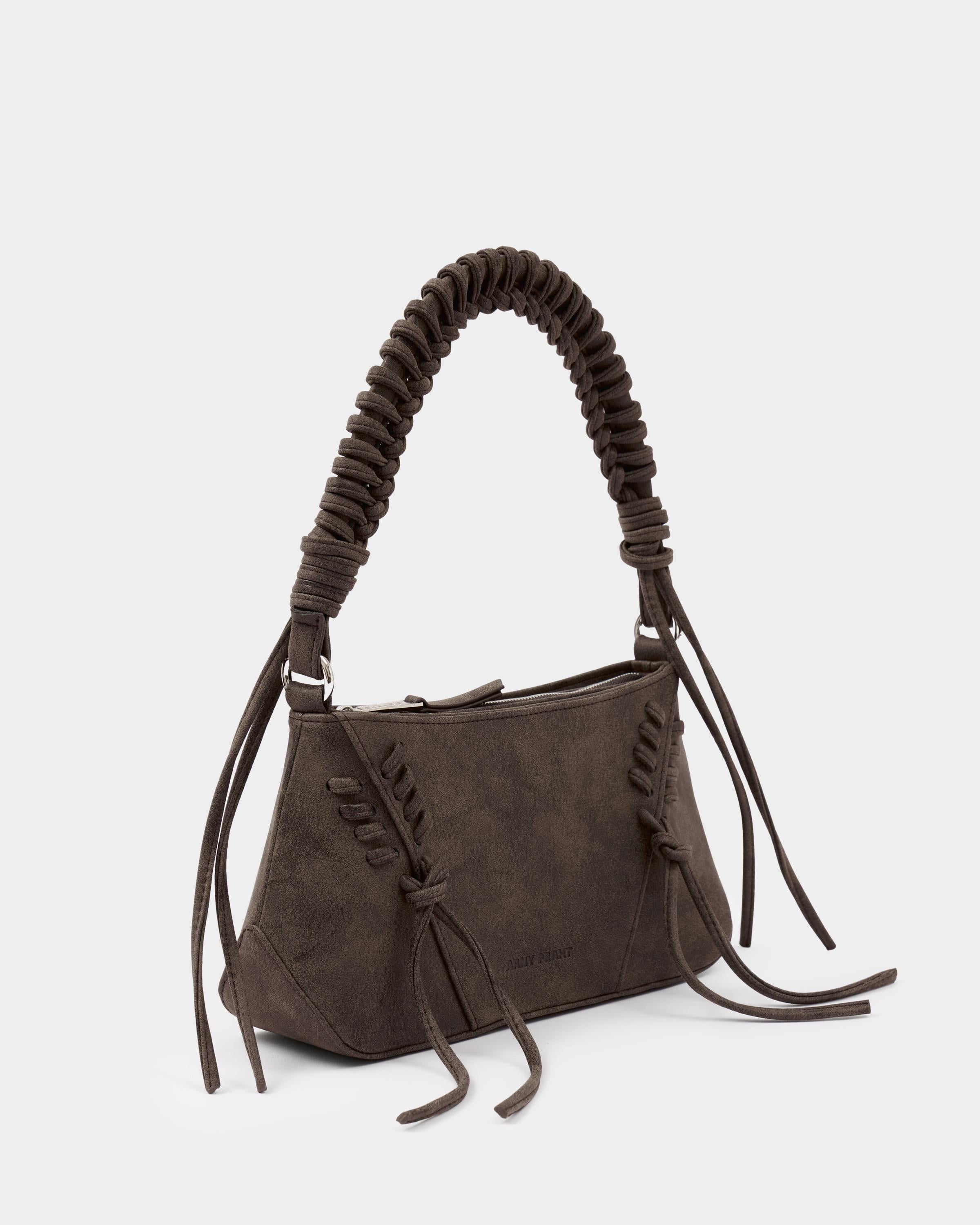 Небольшая сумка с декоративной шнуровкой и плетеной ручкой из замшевой экокожи