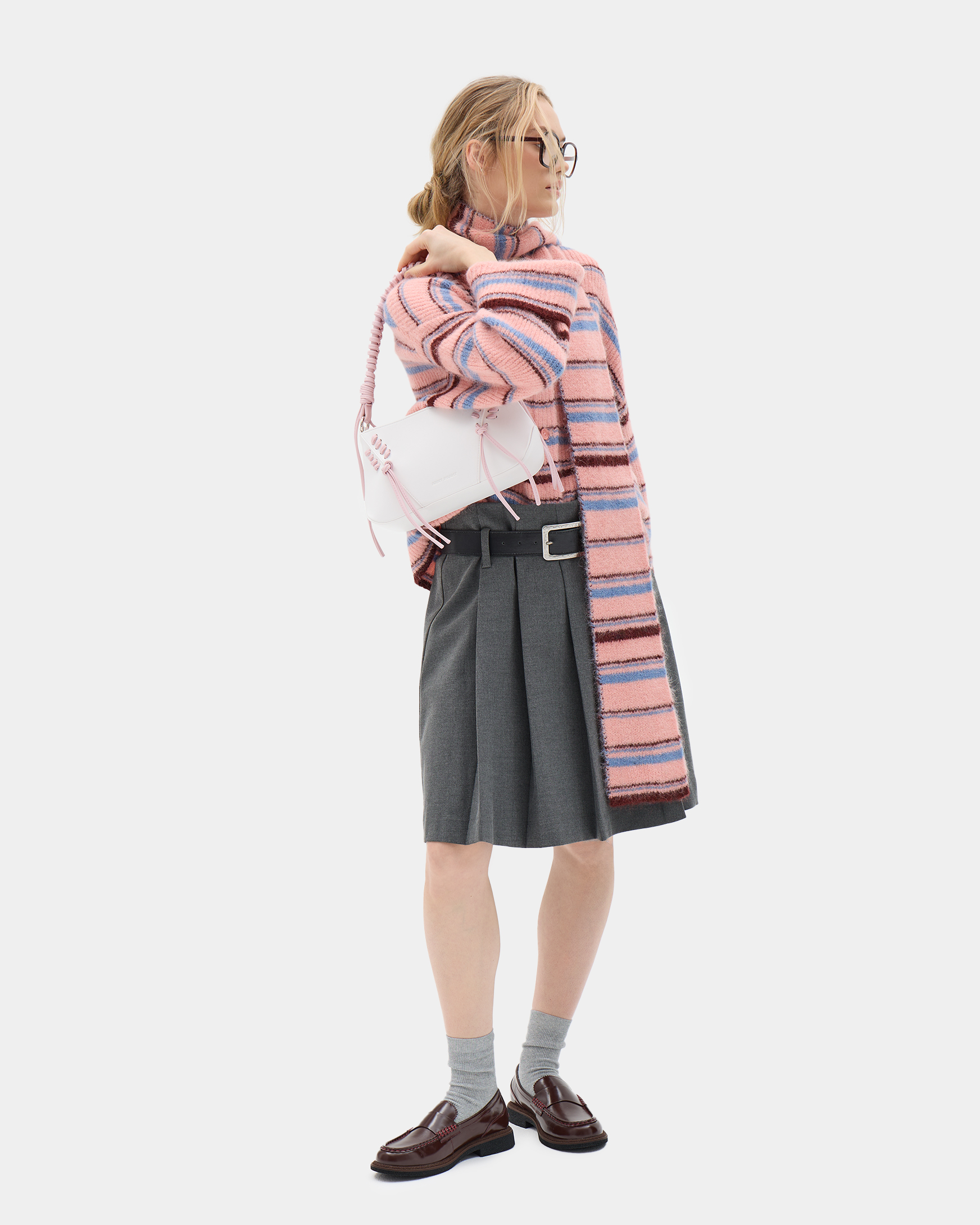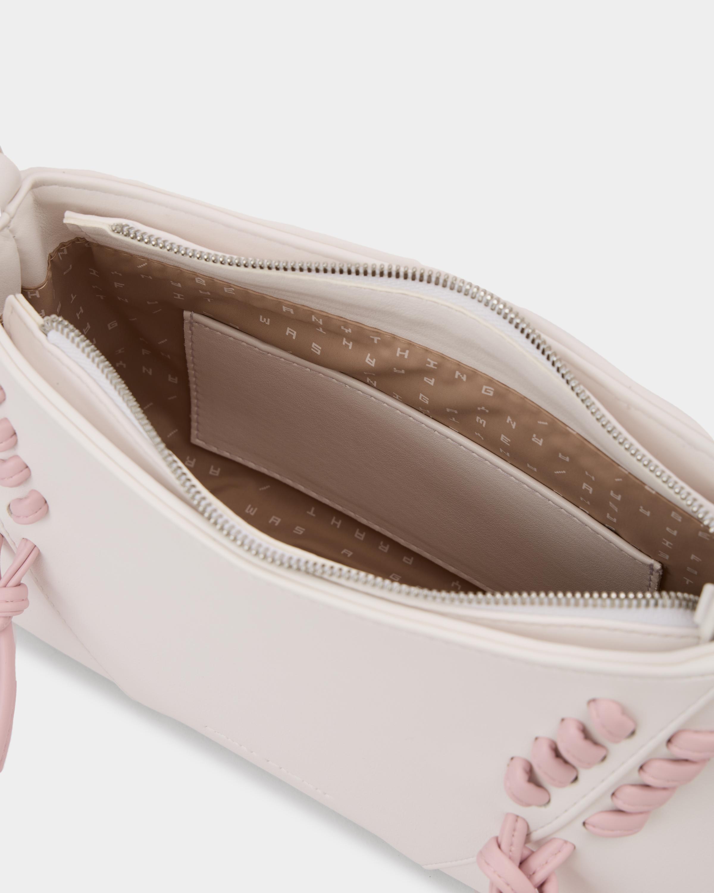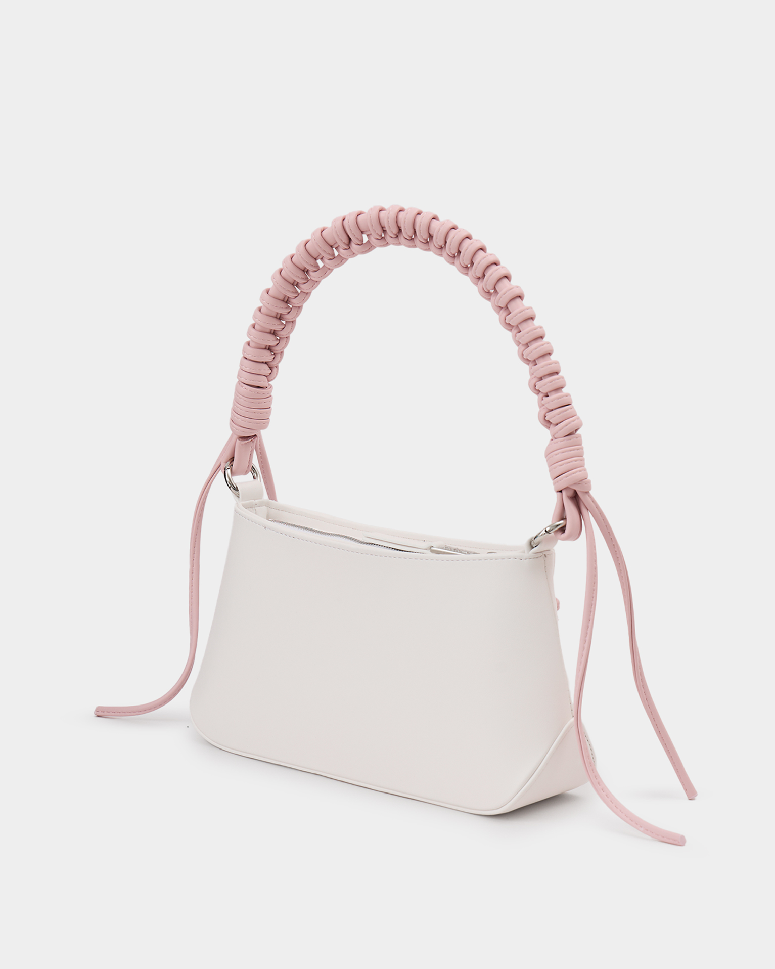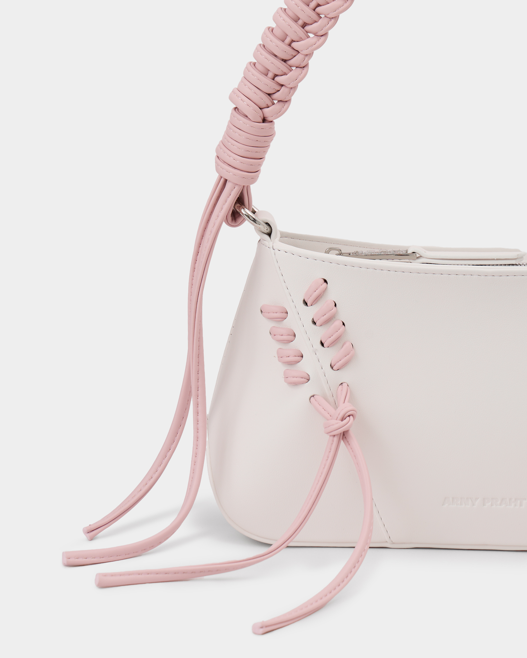 Небольшая каркасная сумка из экокожи с декоративной контрастной шнуровкой