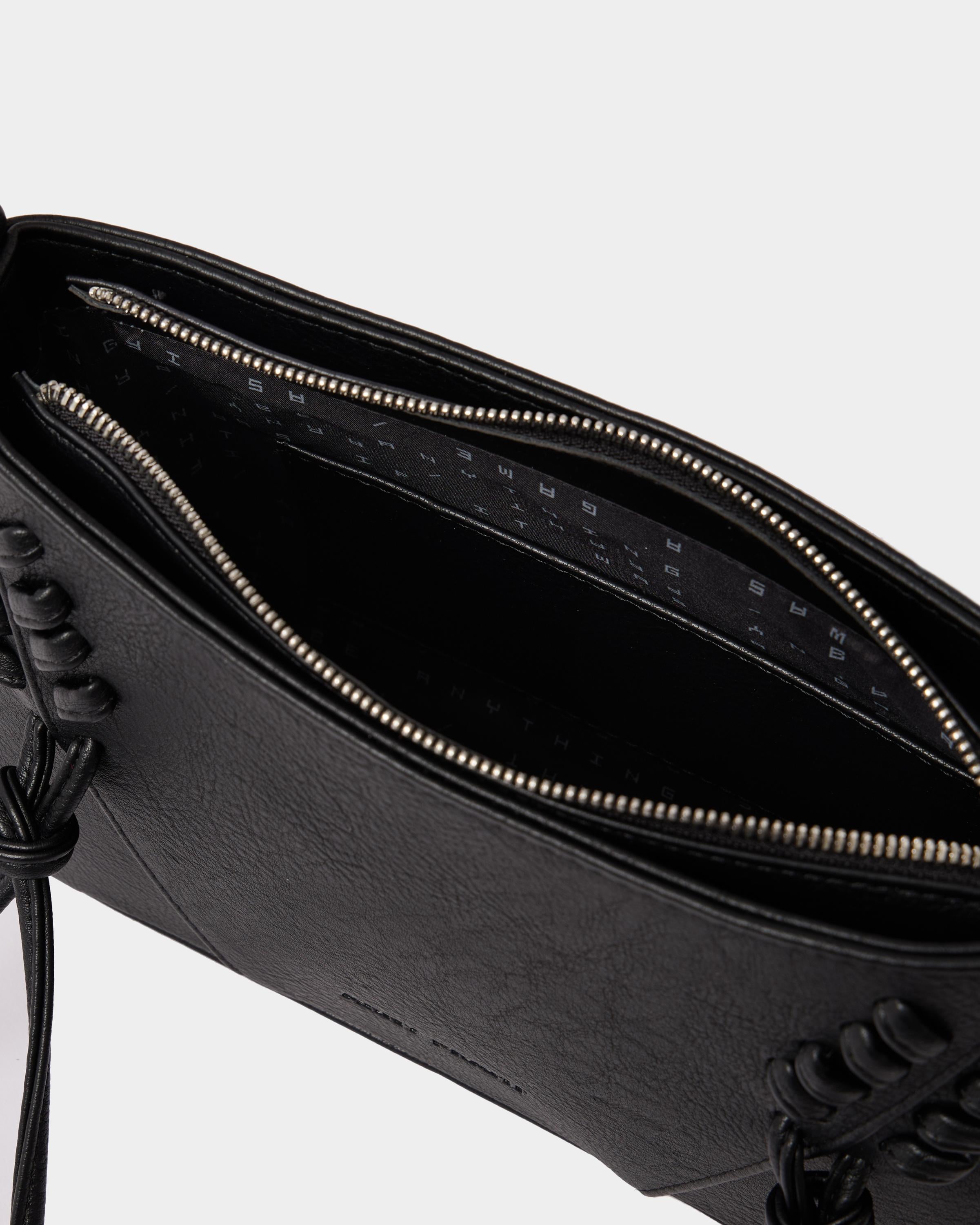 Небольшая сумка с декоративной шнуровкой и плетеной ручкой из фактурной мятной экокожи