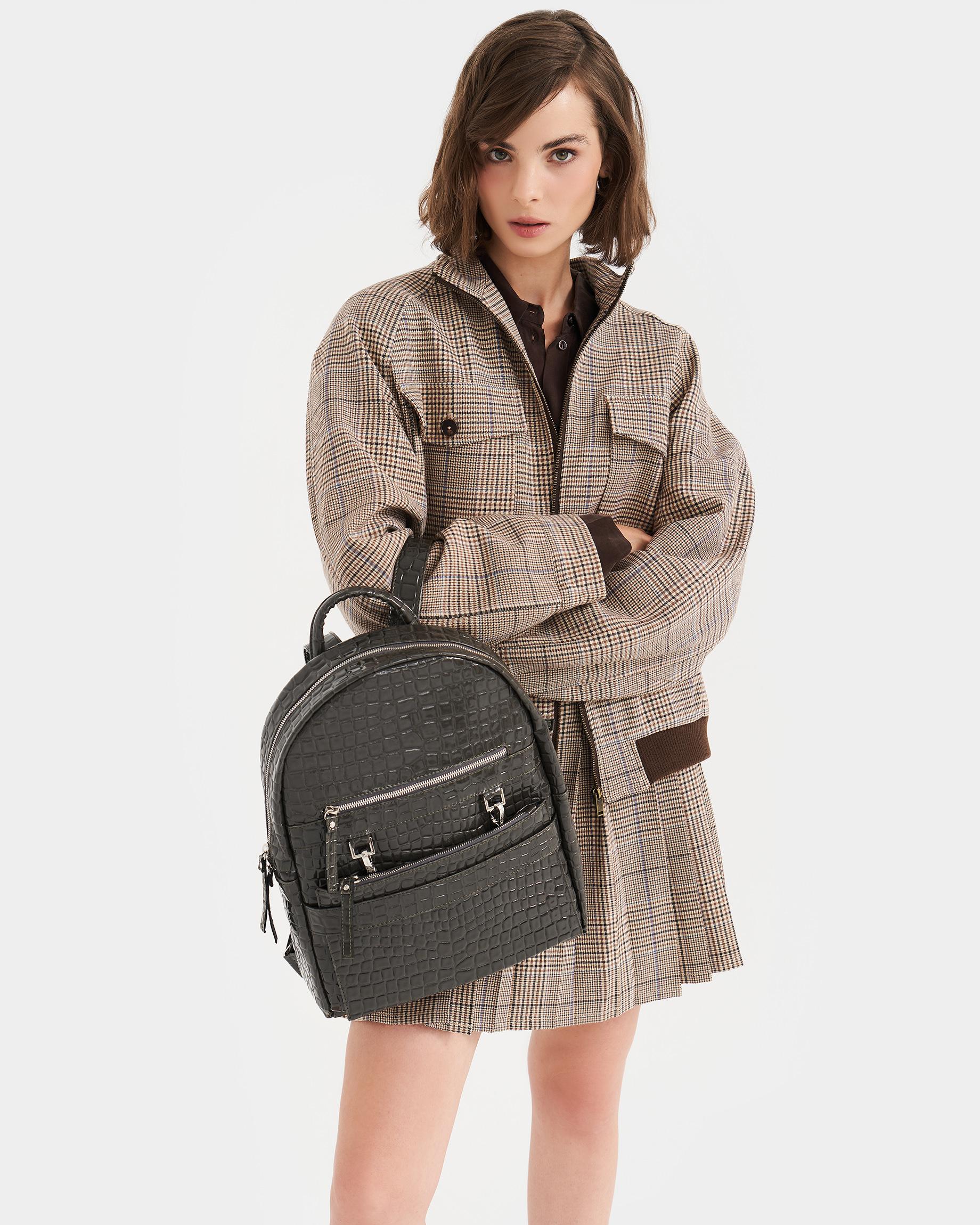 Городской рюкзак с отделением для ноутбука 13″ и отстегивающимся карманом-клатчем в цвете серый крокодил