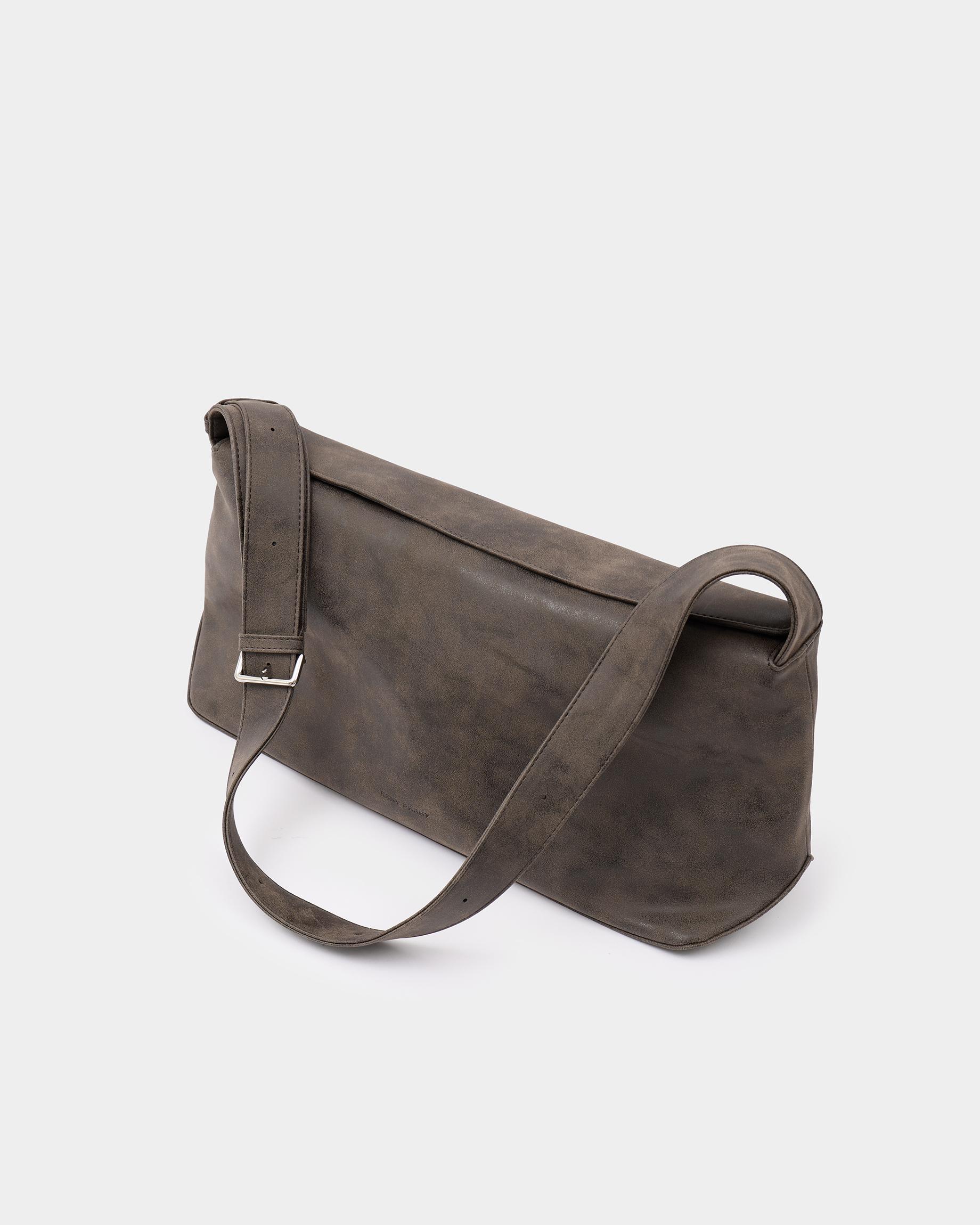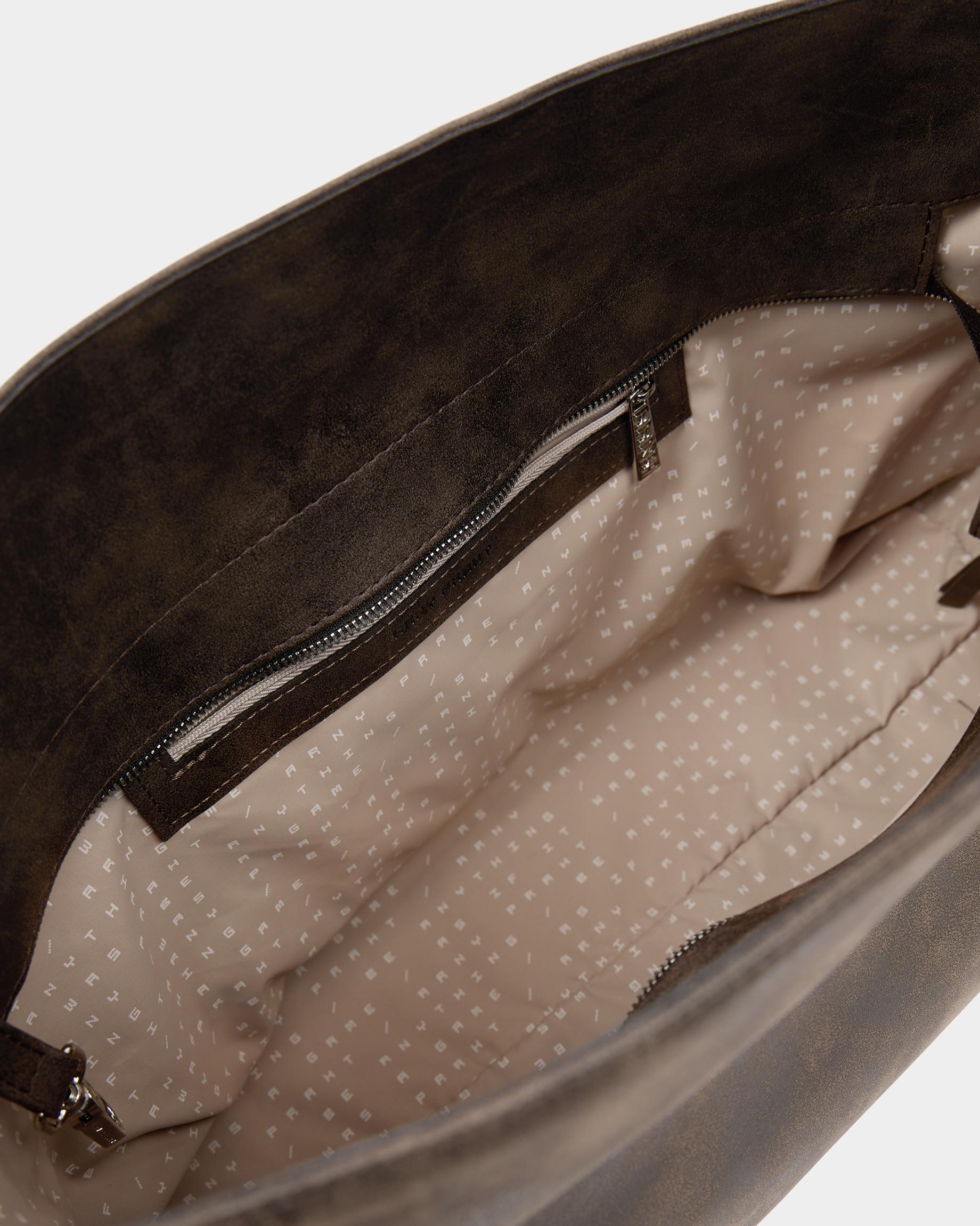 Прямоугольная сумка-шоппер среднего размера из замшевой экокожи с регулируемым ремнем в цвете брауни