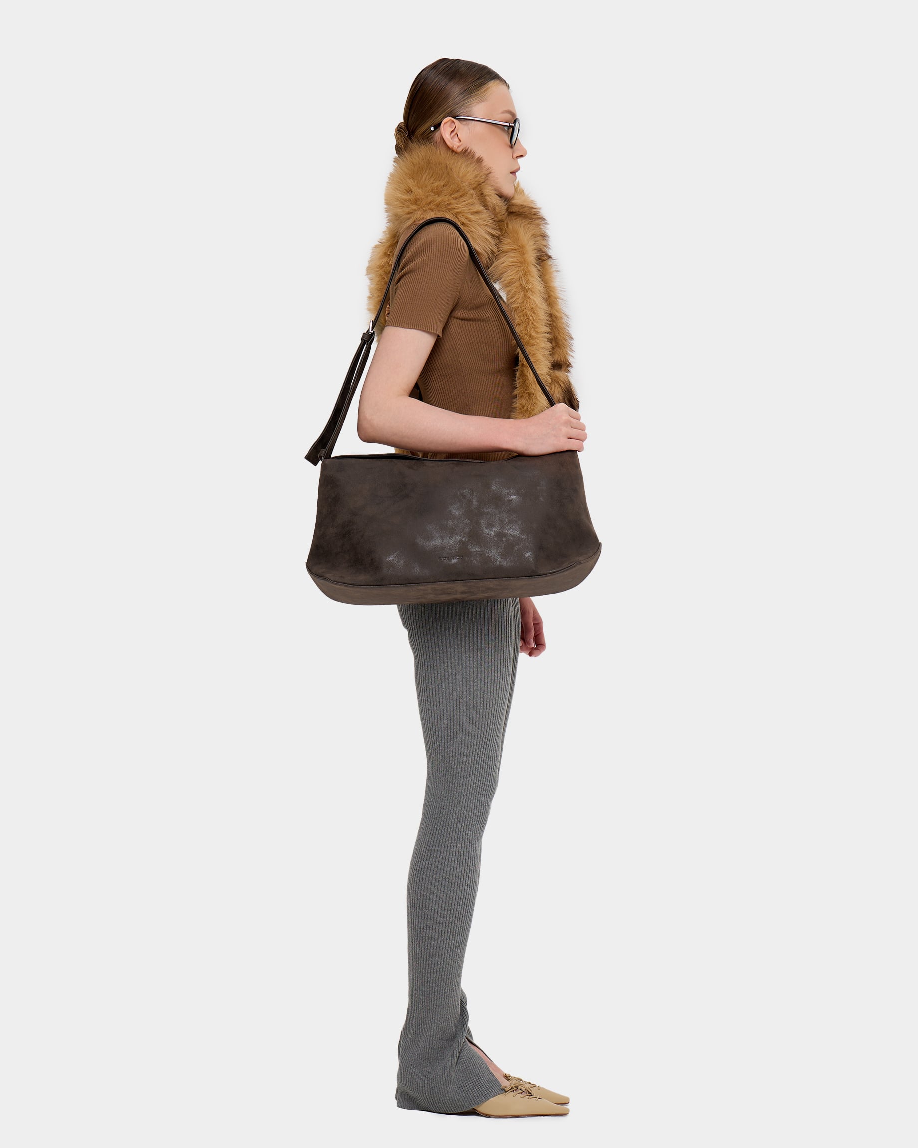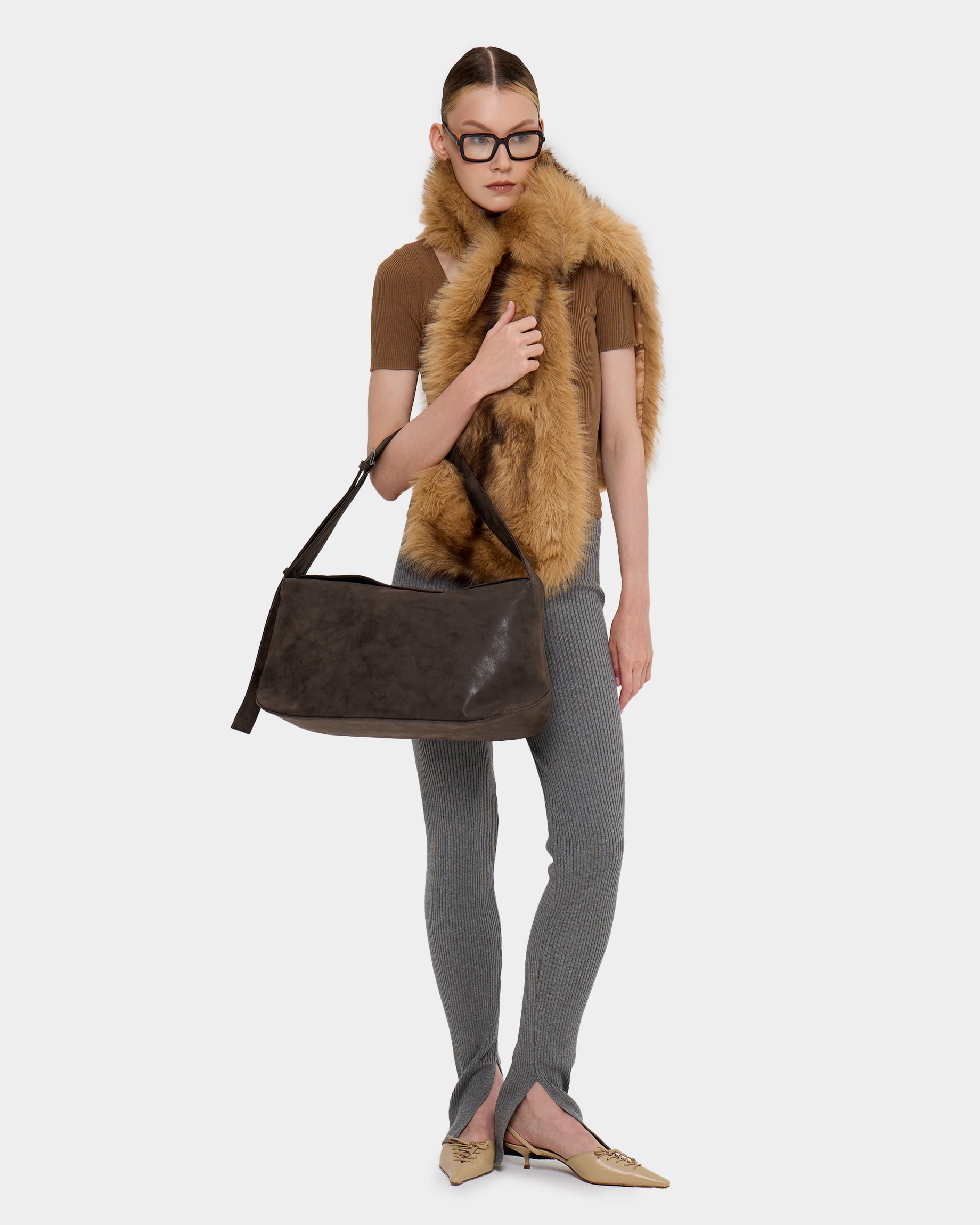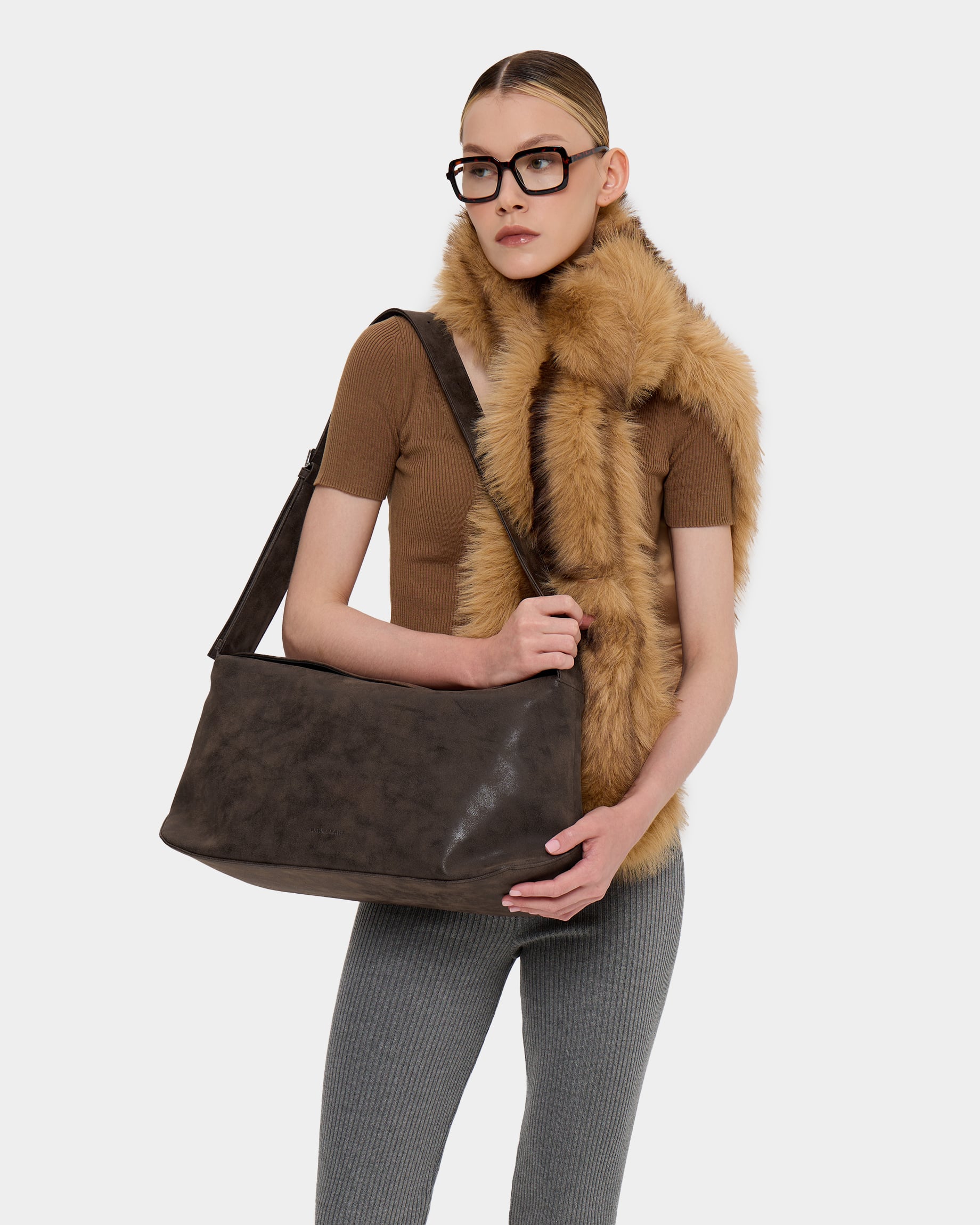 Прямоугольная сумка-шоппер среднего размера из замшевой экокожи с регулируемым ремнем в цвете брауни