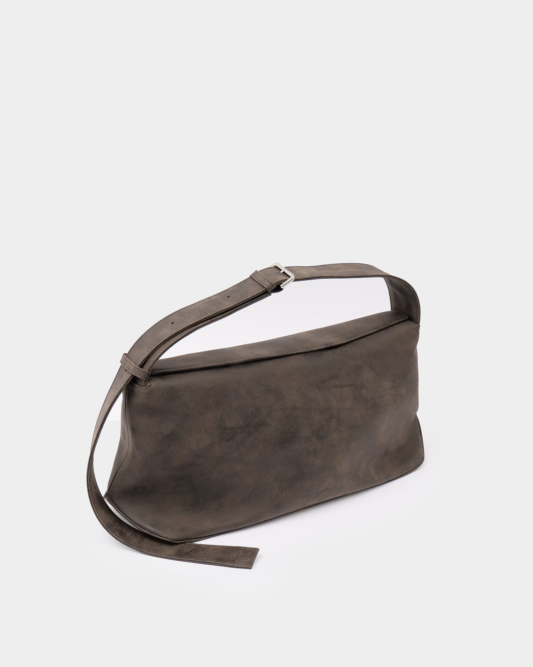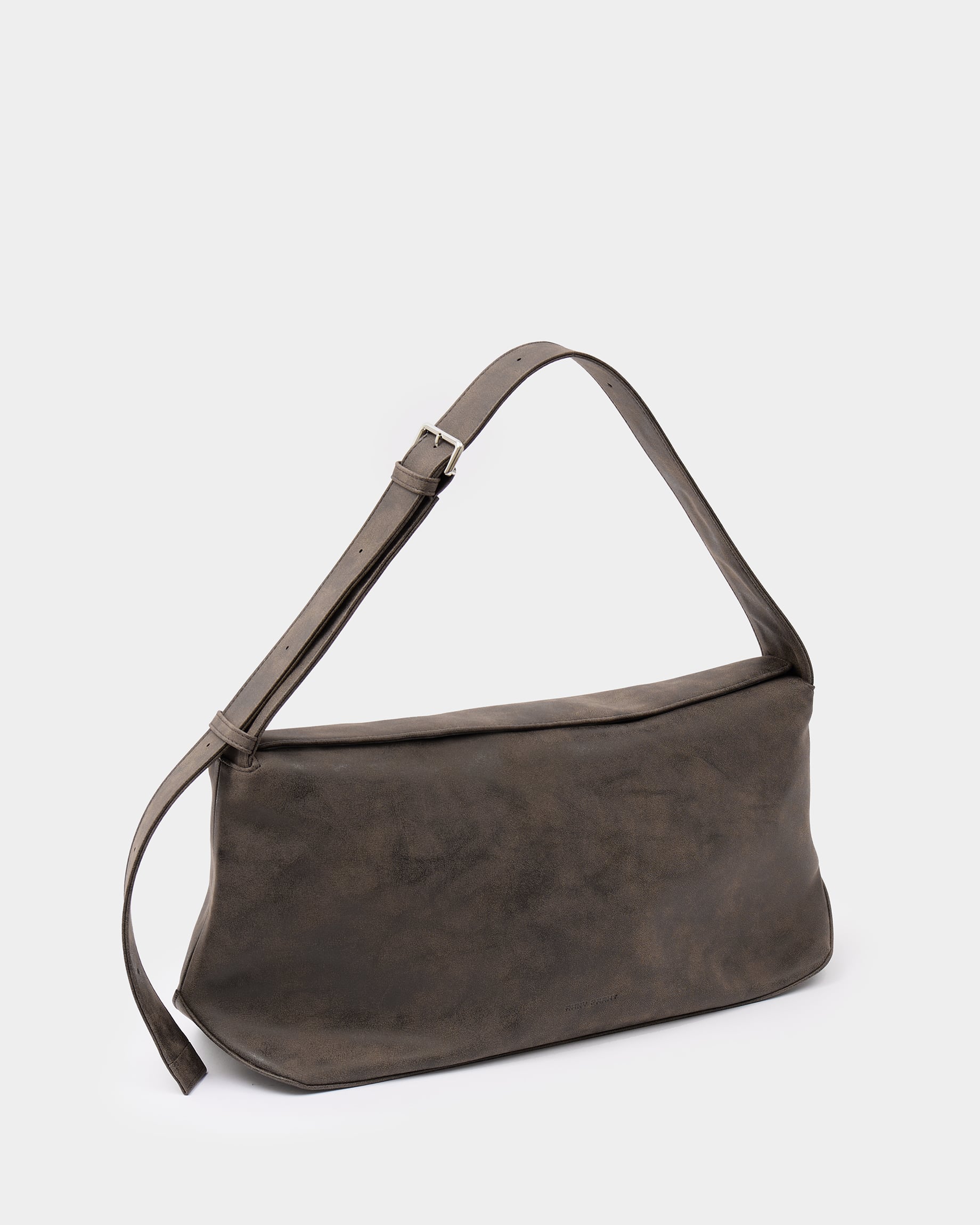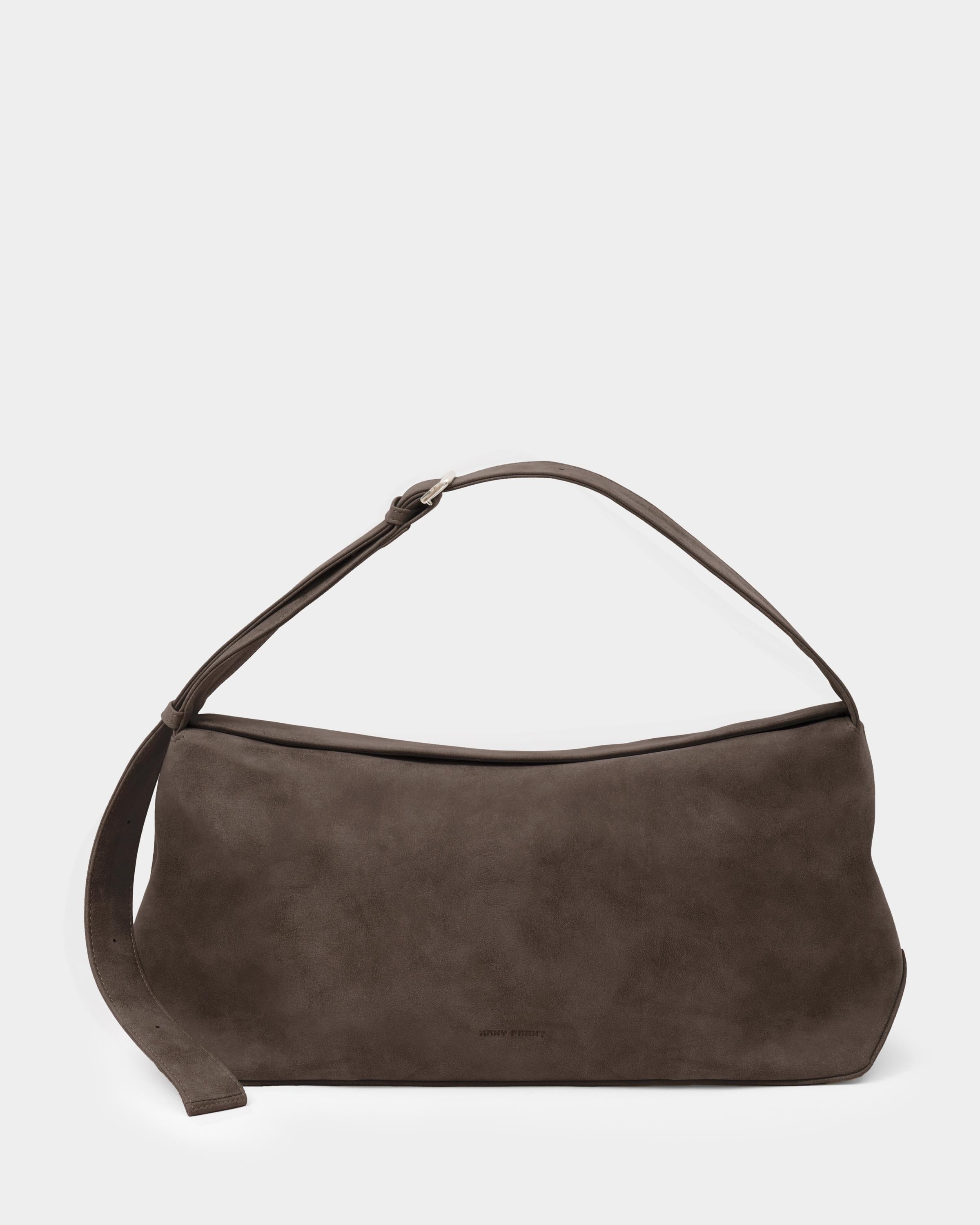 Прямоугольная сумка-шоппер среднего размера из замшевой экокожи с регулируемым ремнем в цвете брауни