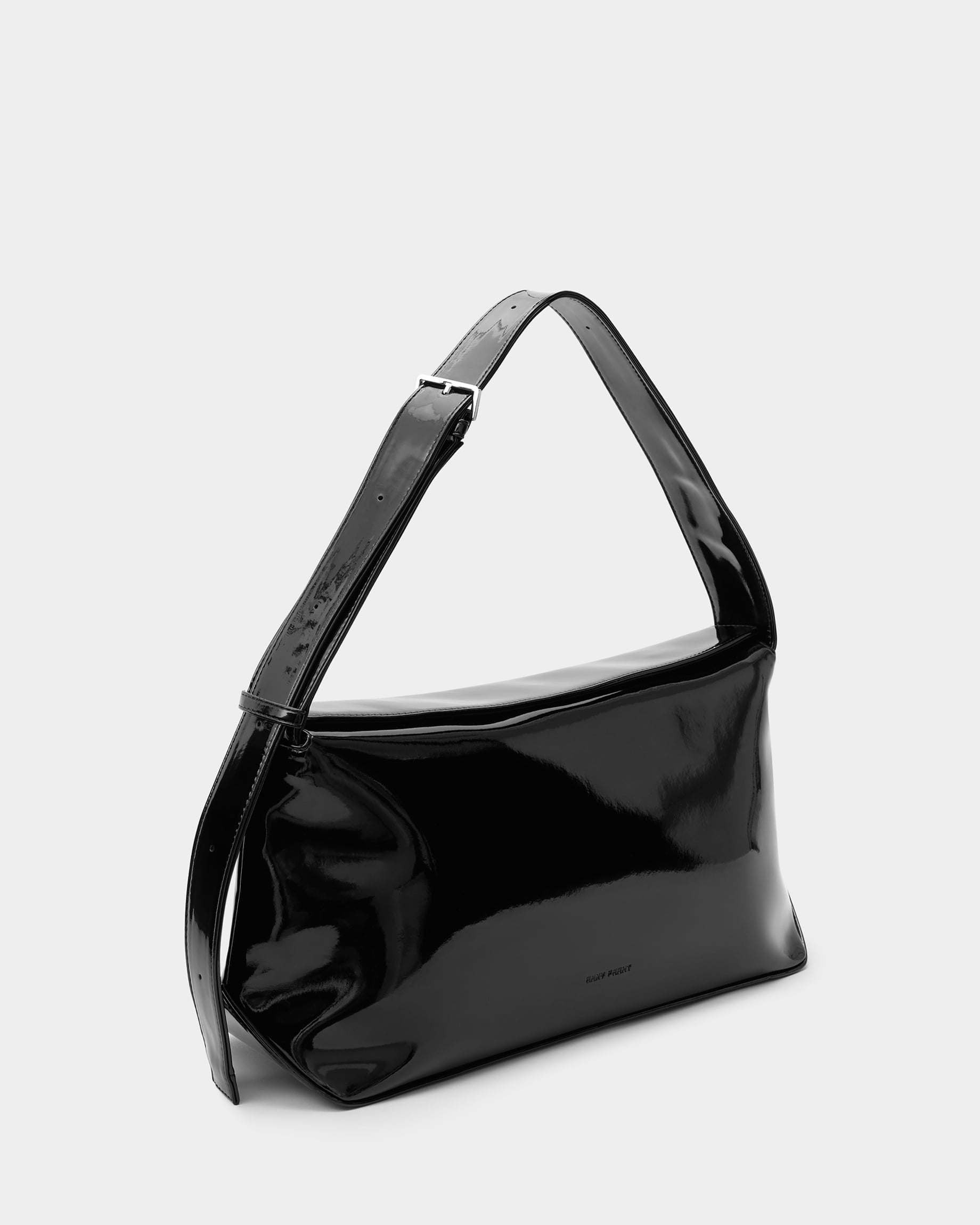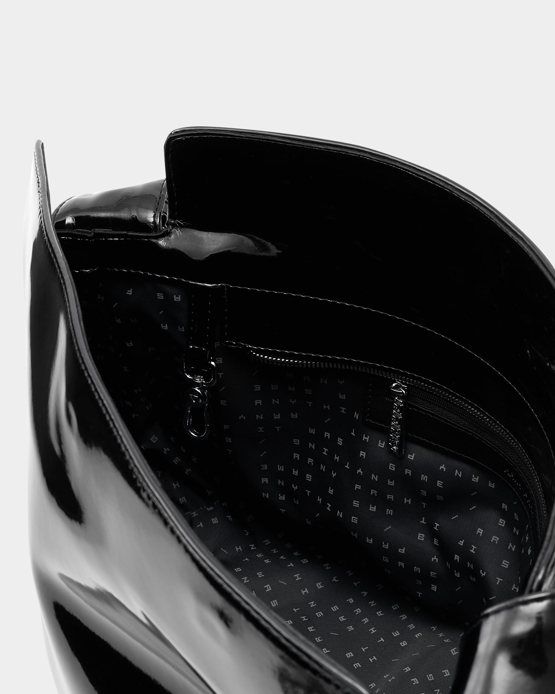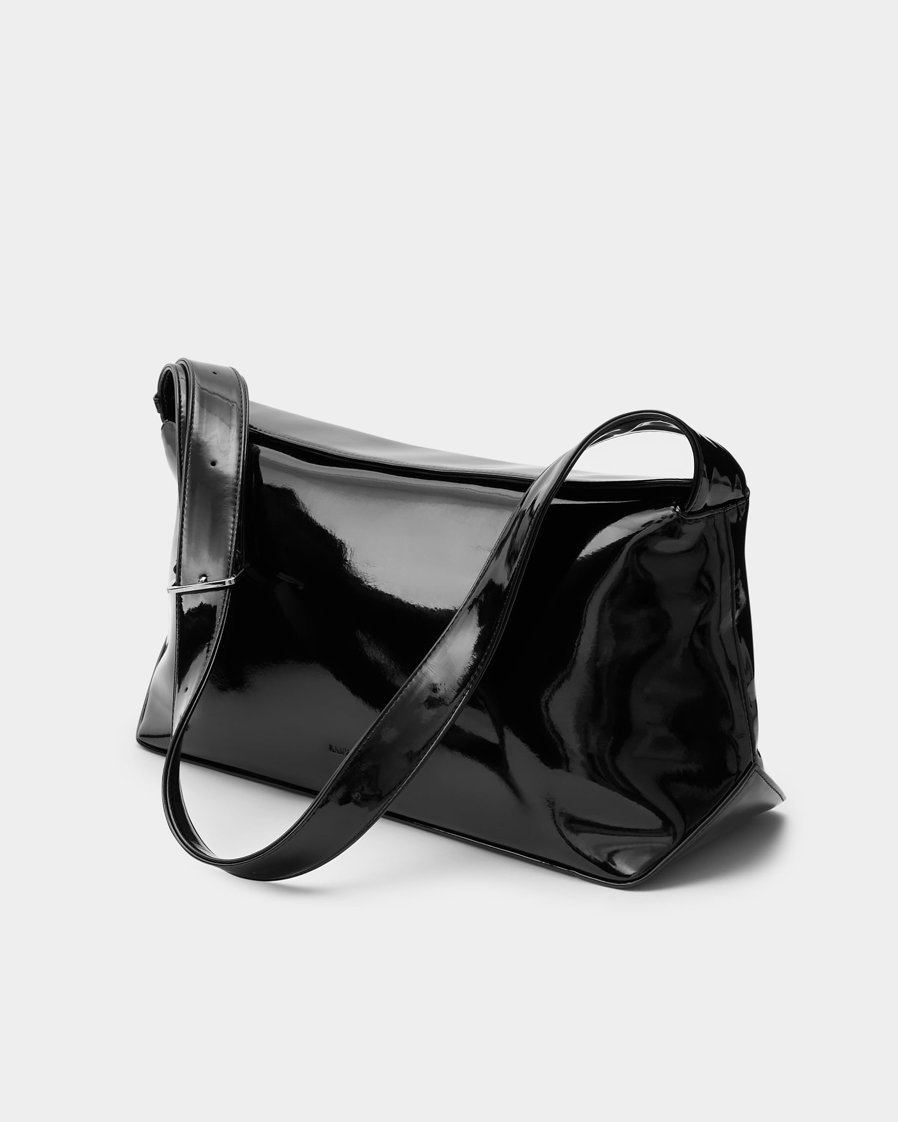 Прямоугольная сумка-шоппер среднего размера с регулируемым ремнем из лаковой экокожи