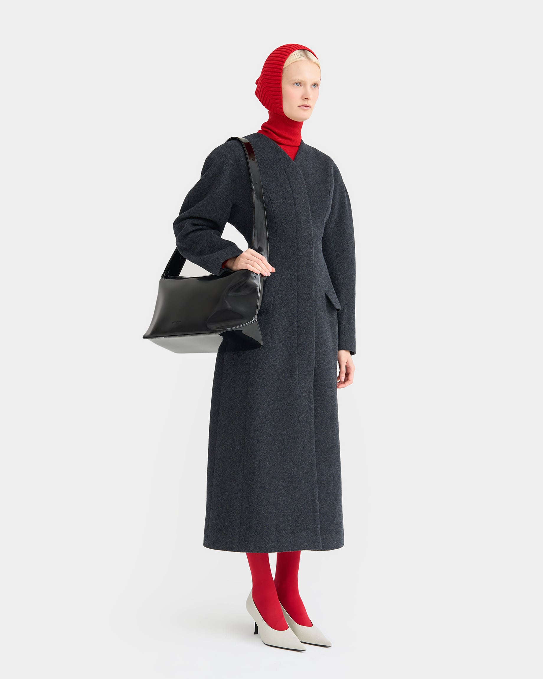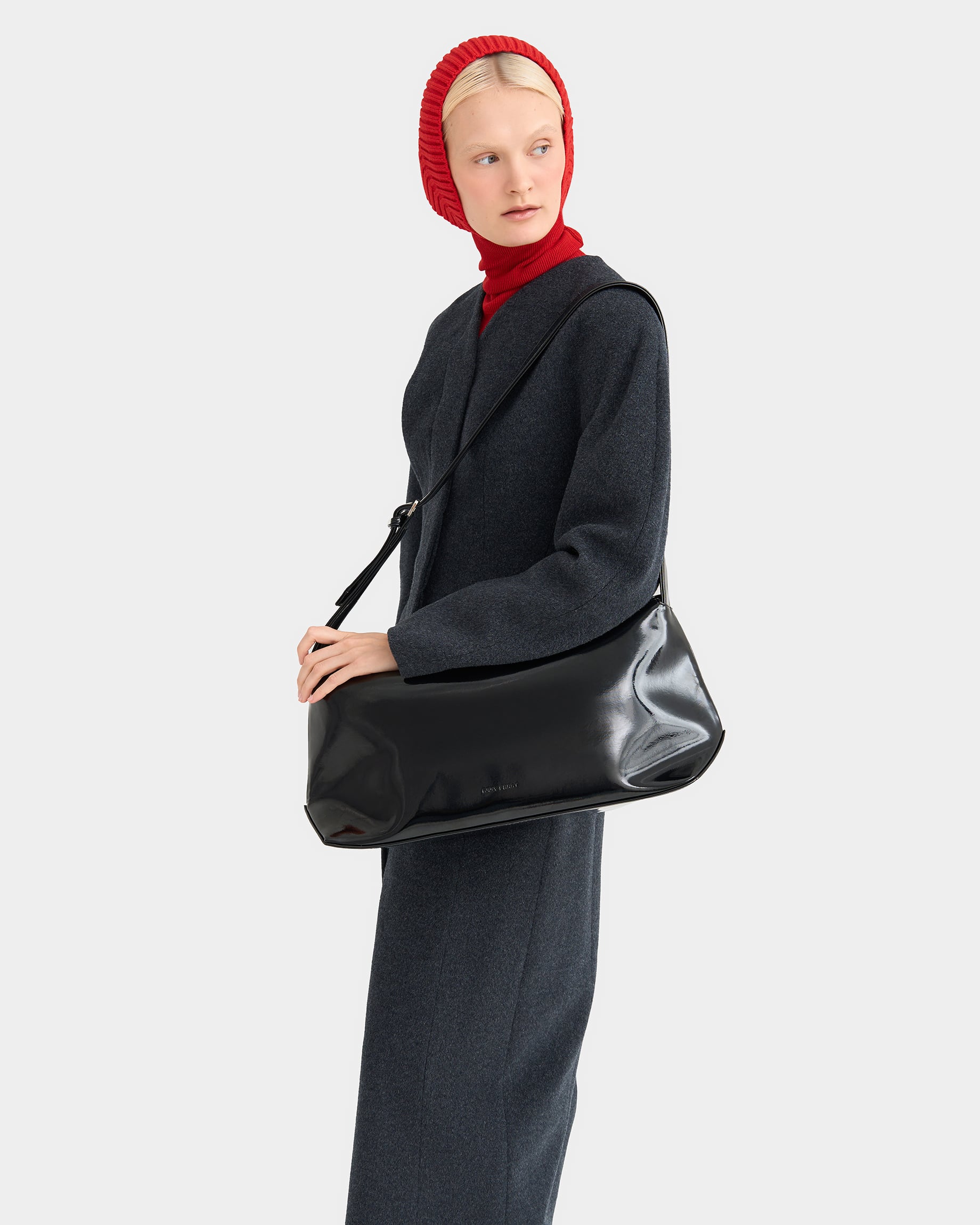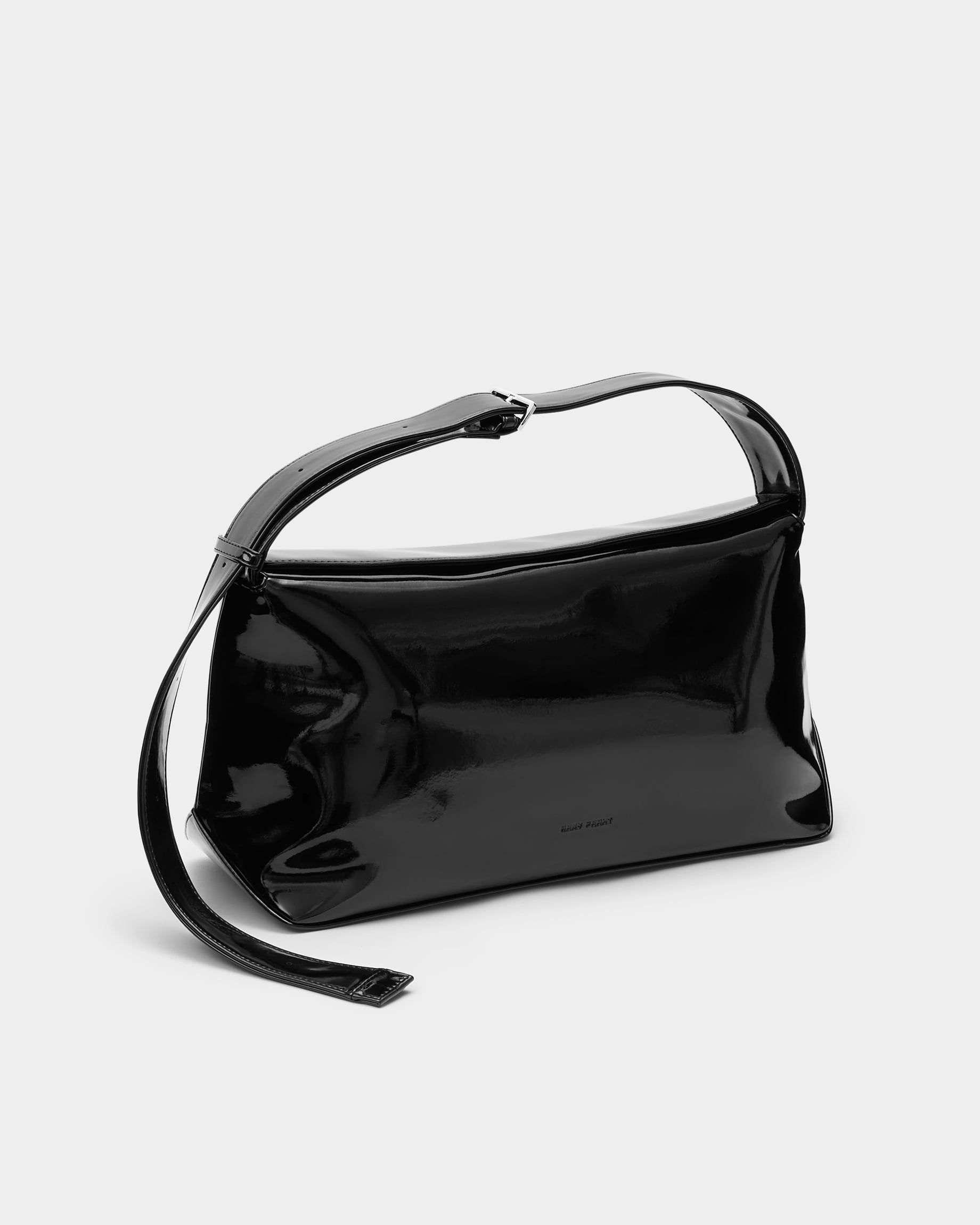 Прямоугольная сумка-шоппер среднего размера с регулируемым ремнем из лаковой экокожи