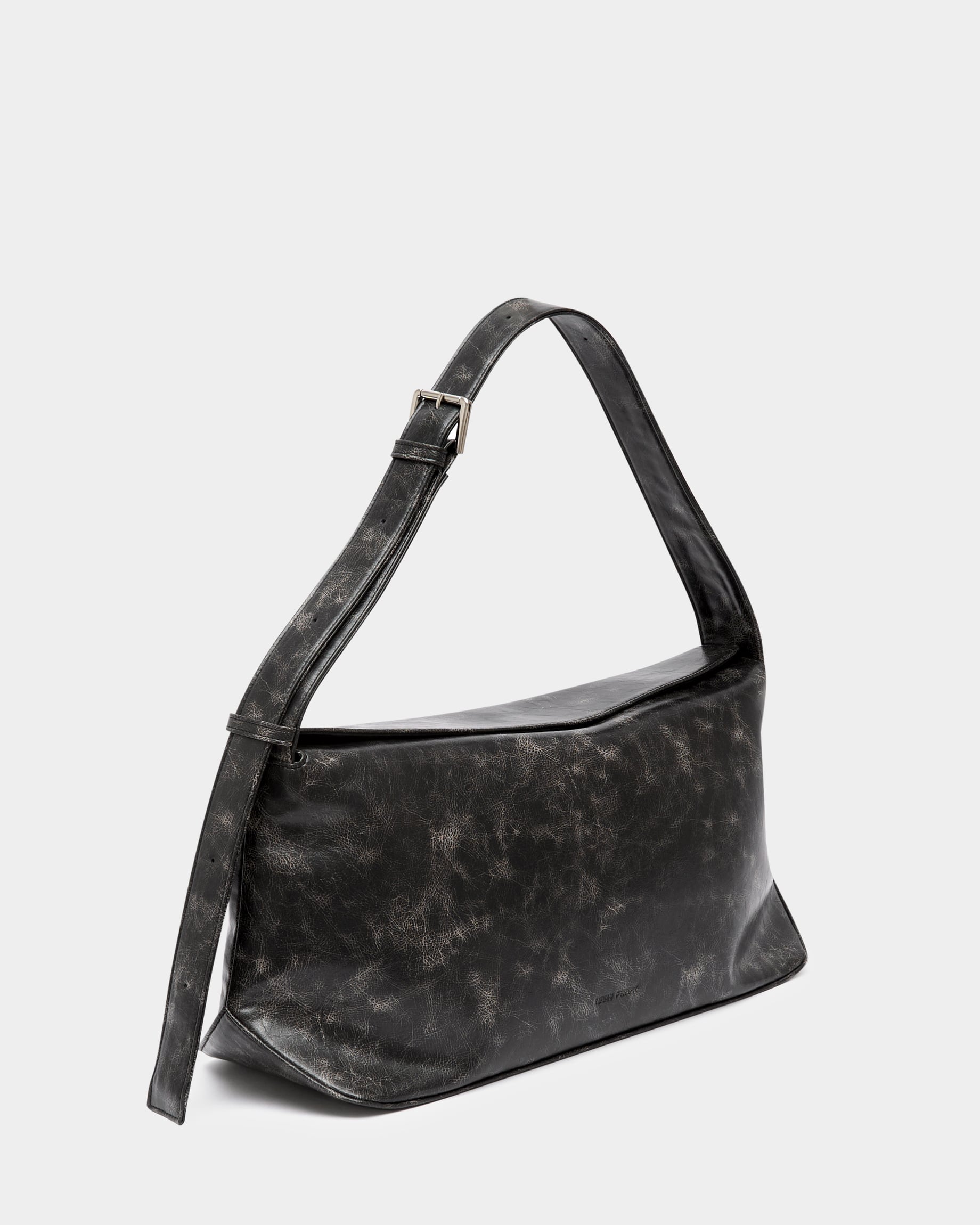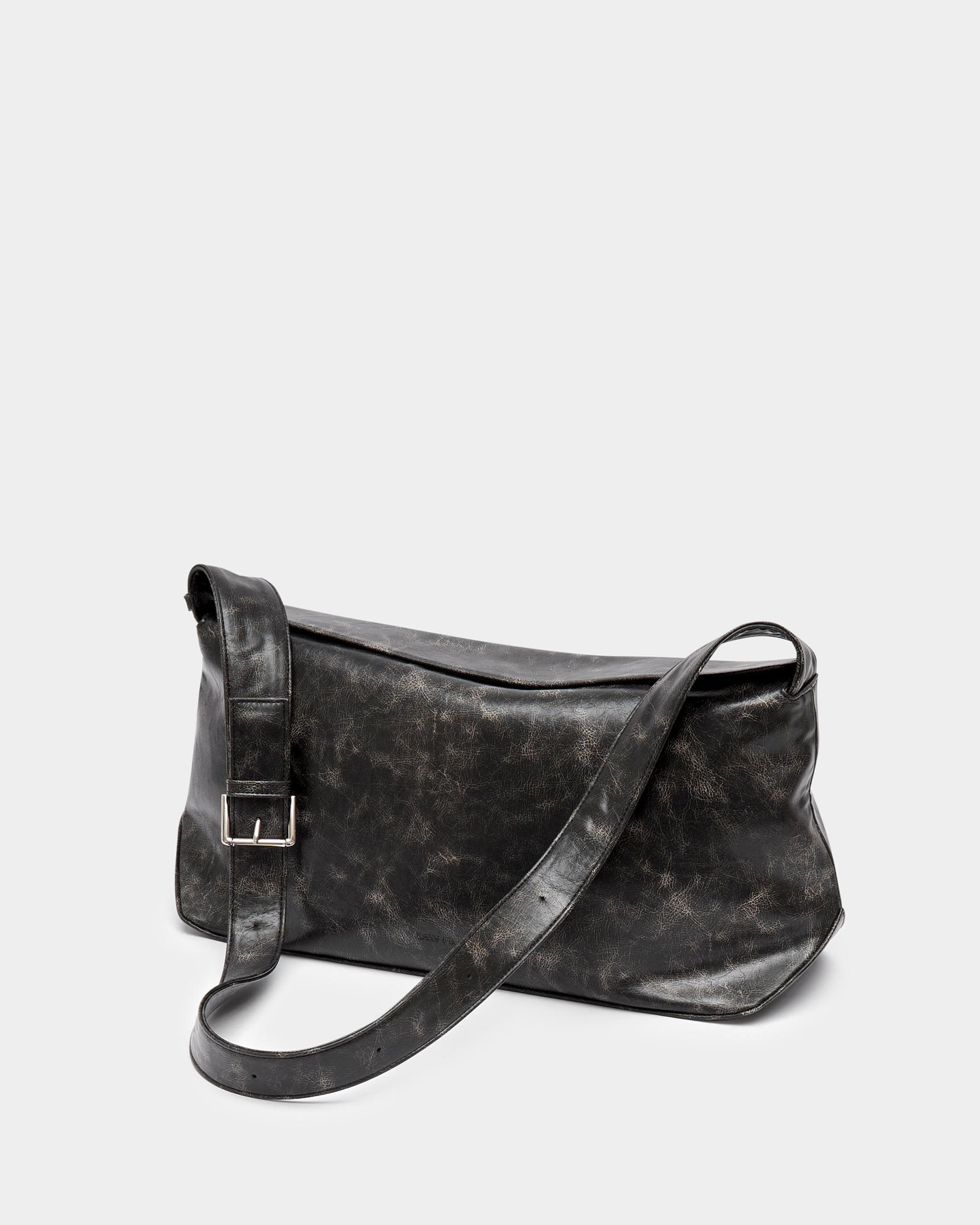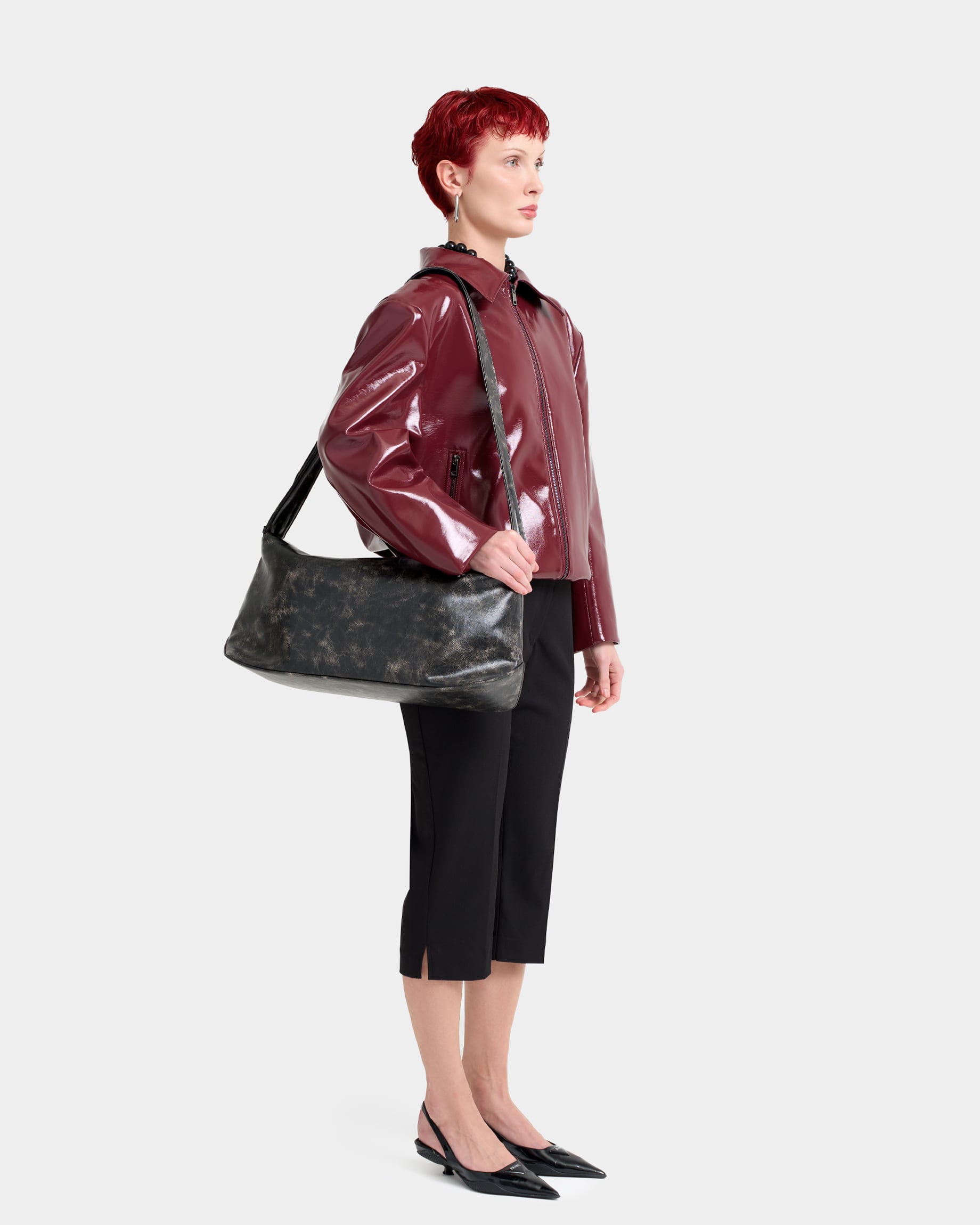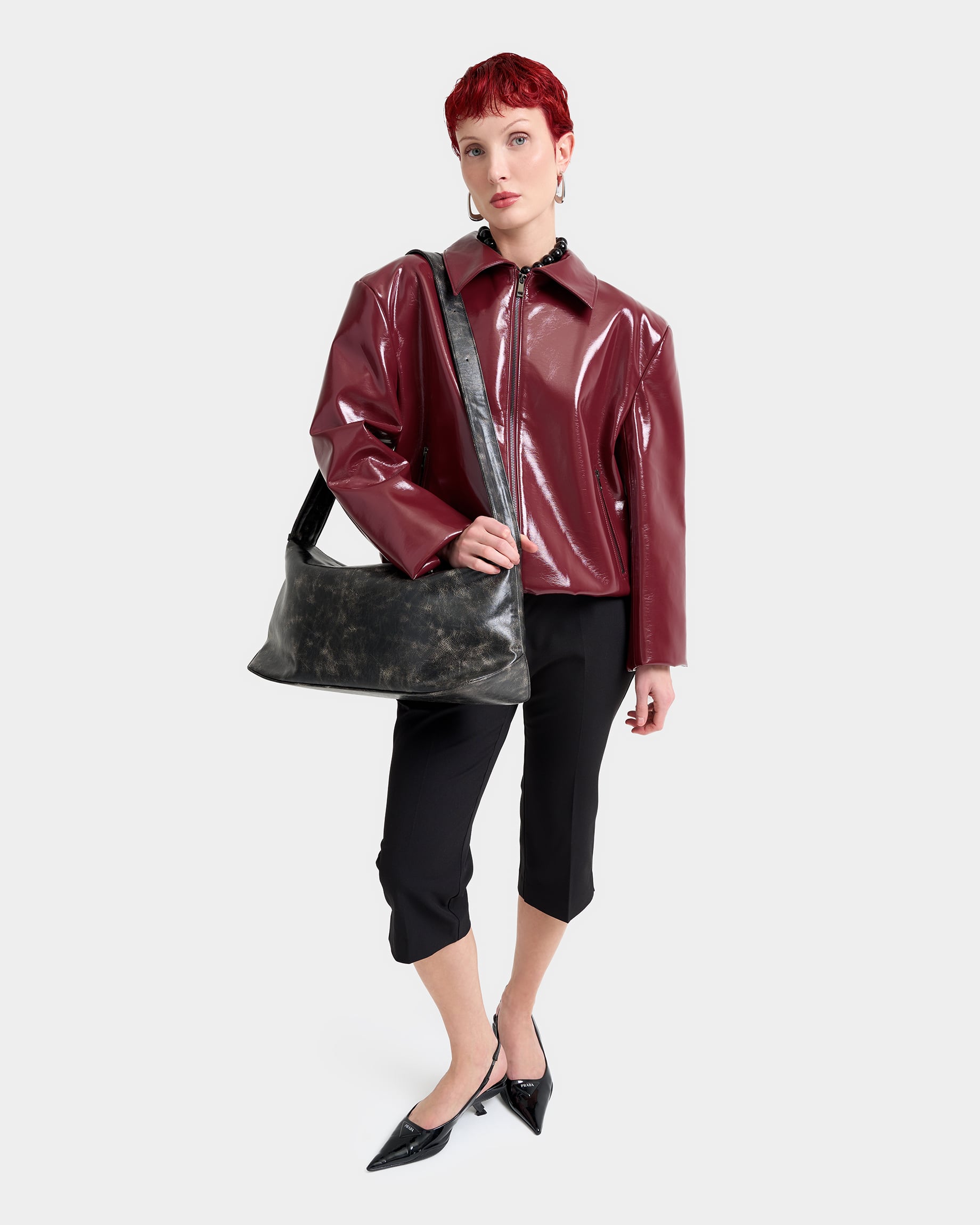 Прямоугольная сумка-шоппер среднего размера с регулируемым ремнем в цвете каштан кракле