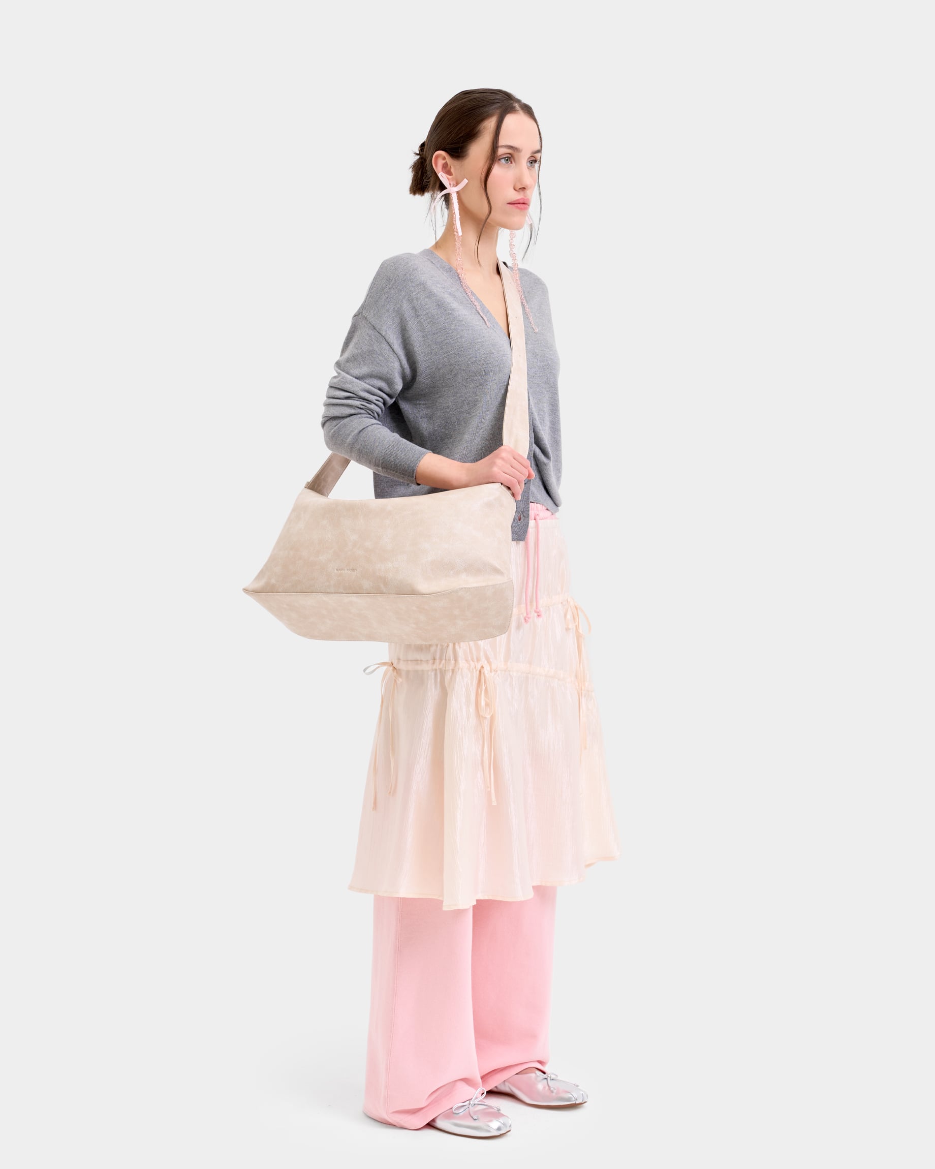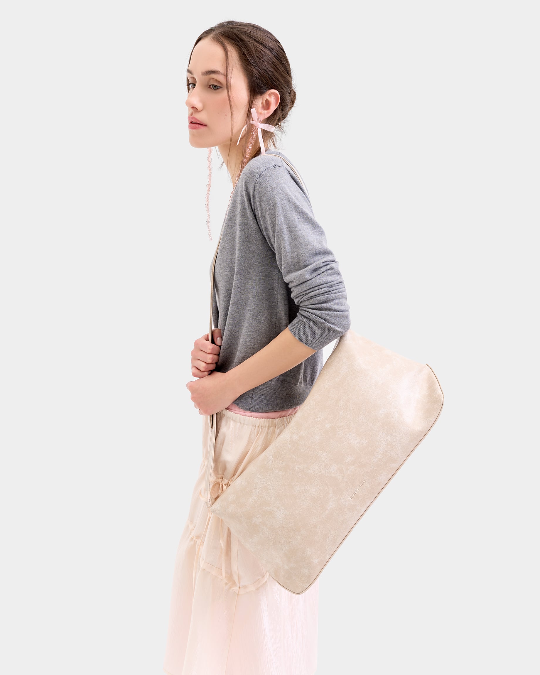 Прямоугольная сумка-шоппер среднего размера с регулируемым ремнем в цвете кремовый кракле