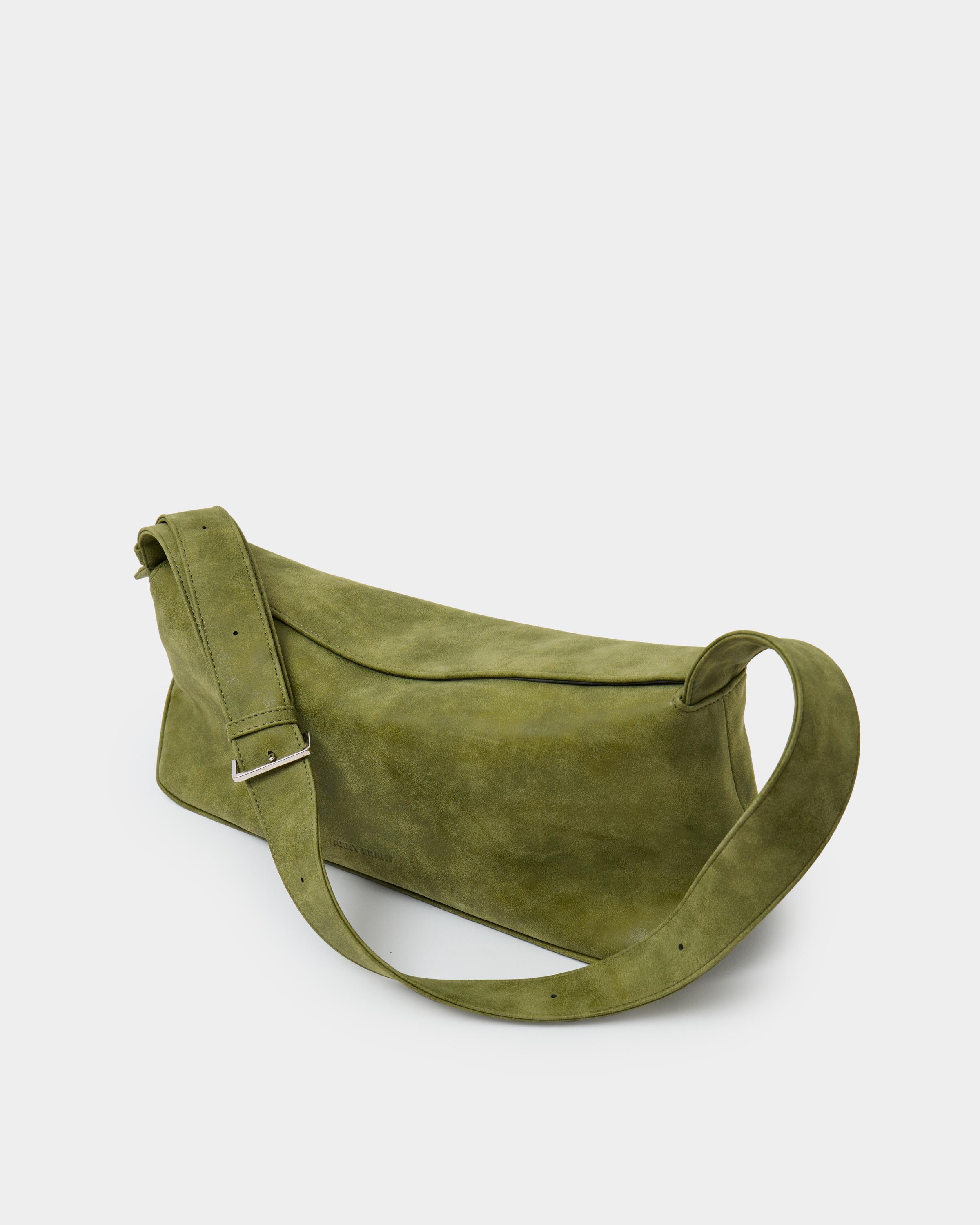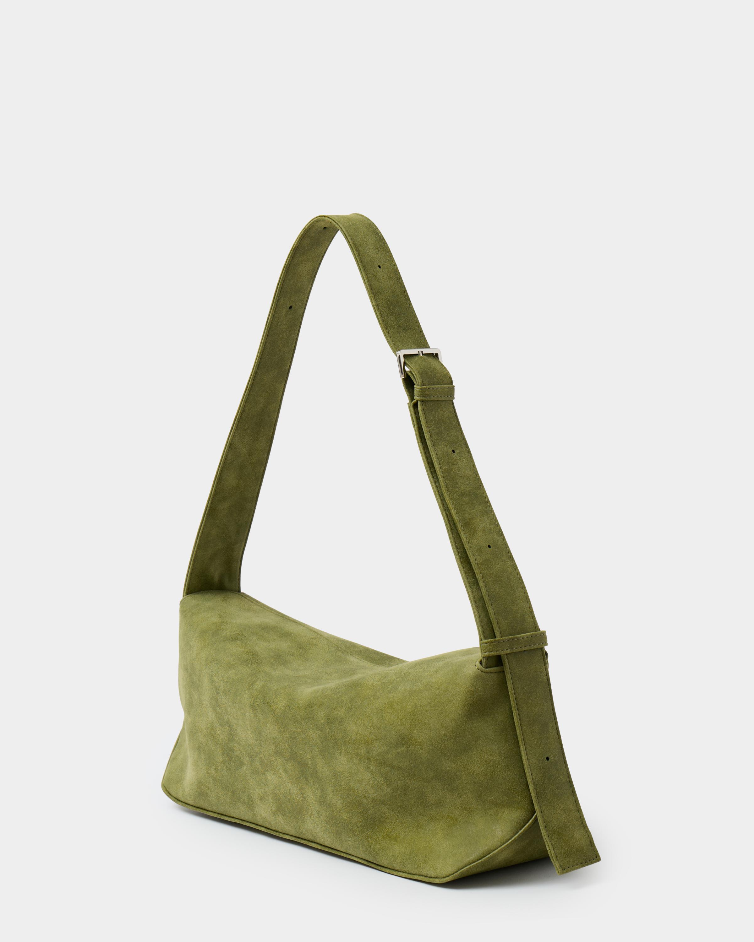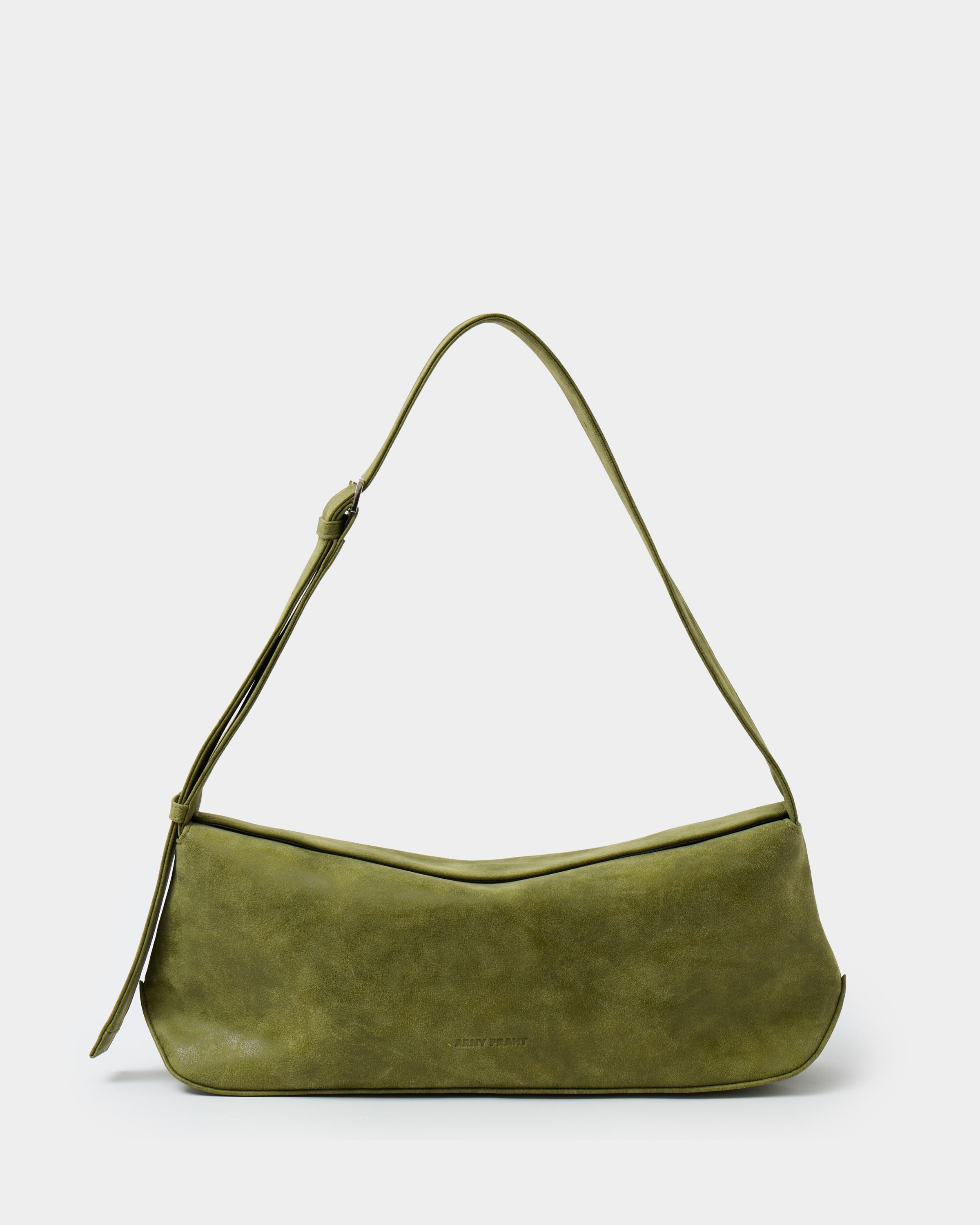 Небольшая прямоугольная мягкая сумка из экокожи с регулируемым ремнем в цвете форест