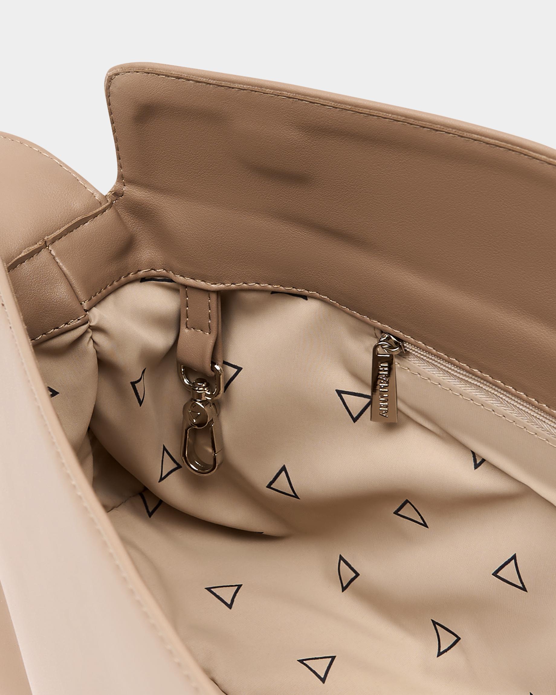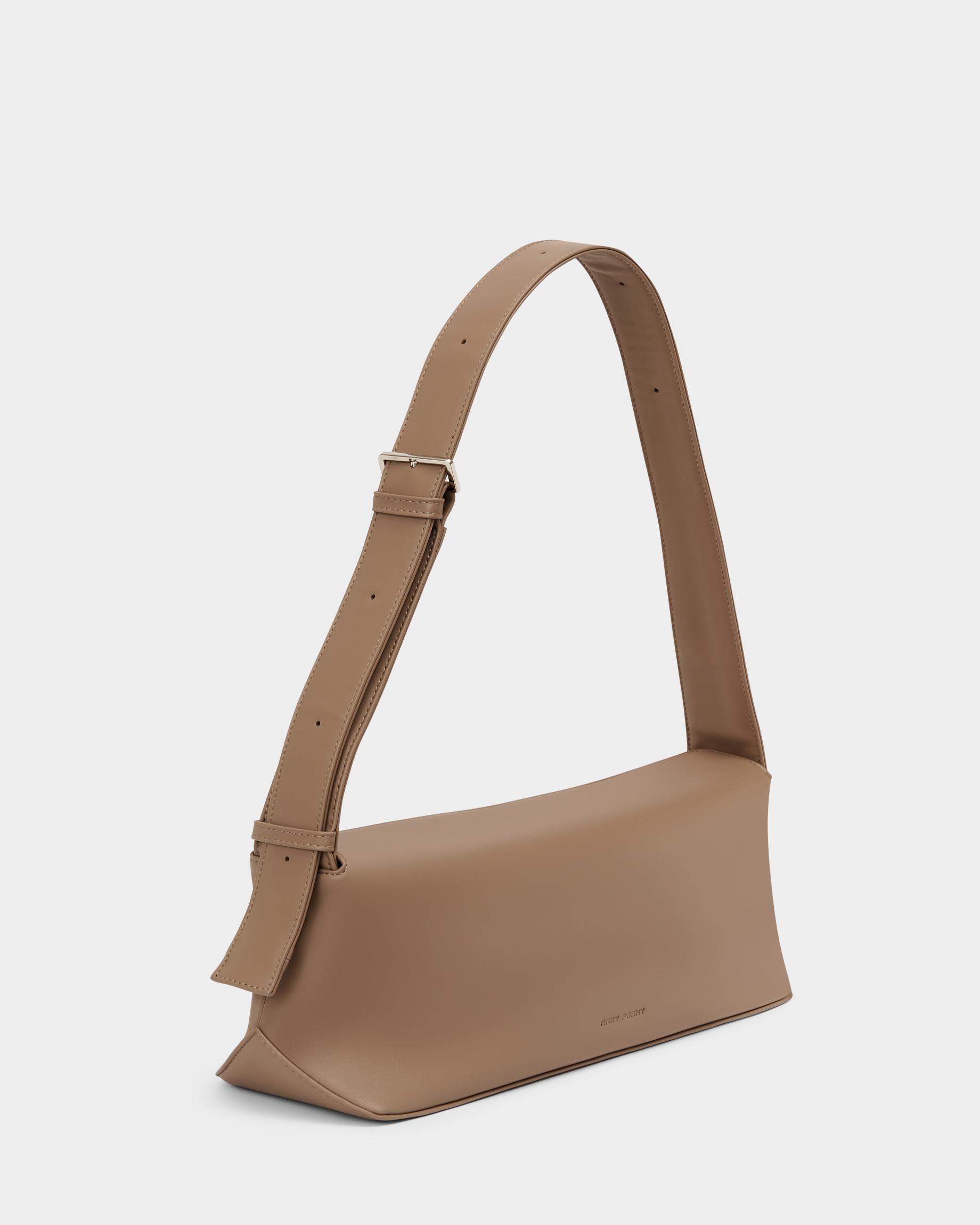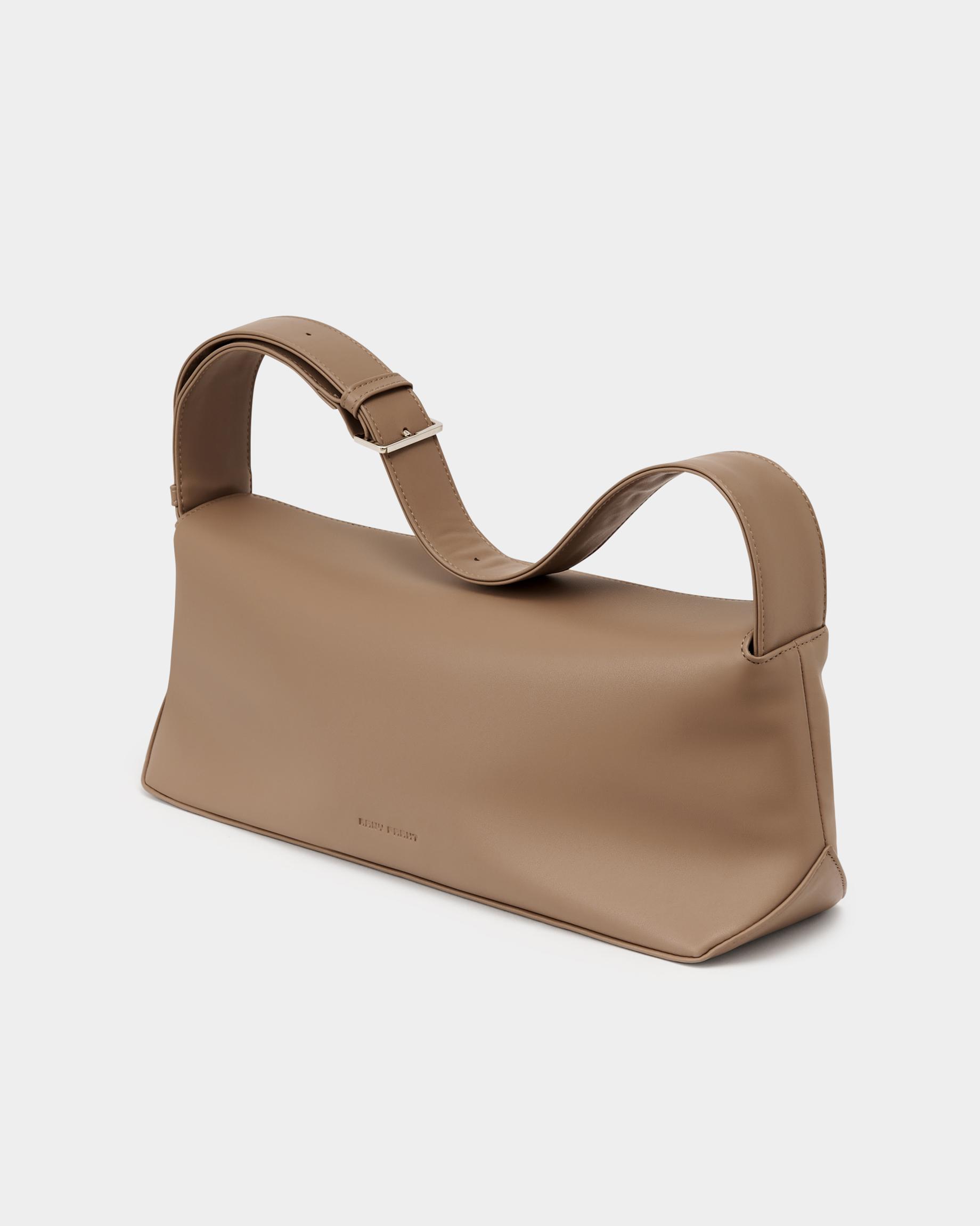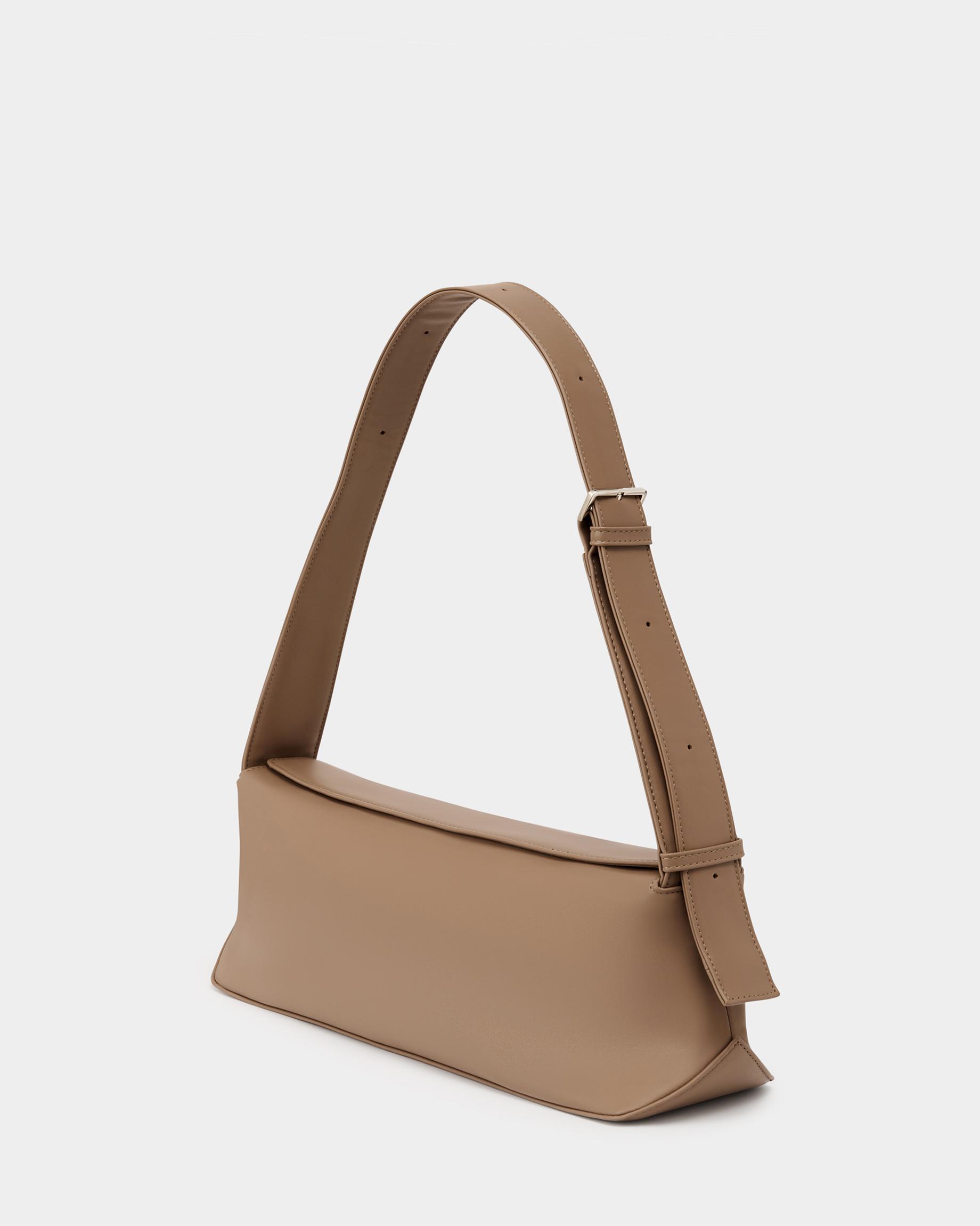 Небольшая прямоугольная мягкая сумка из экокожи с регулируемым ремнем в цвете сандрифт