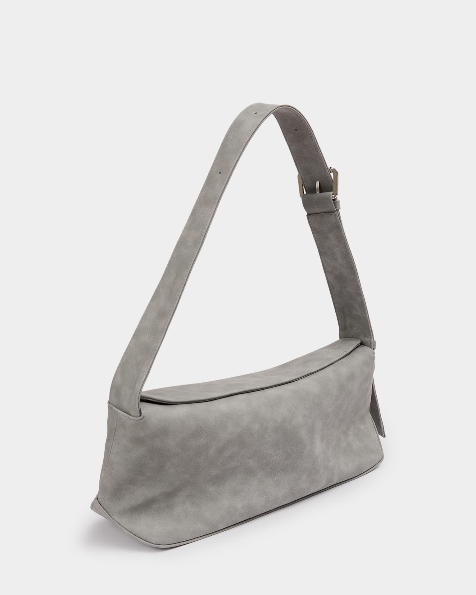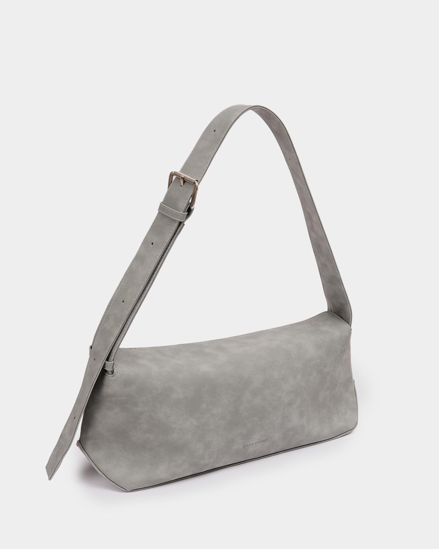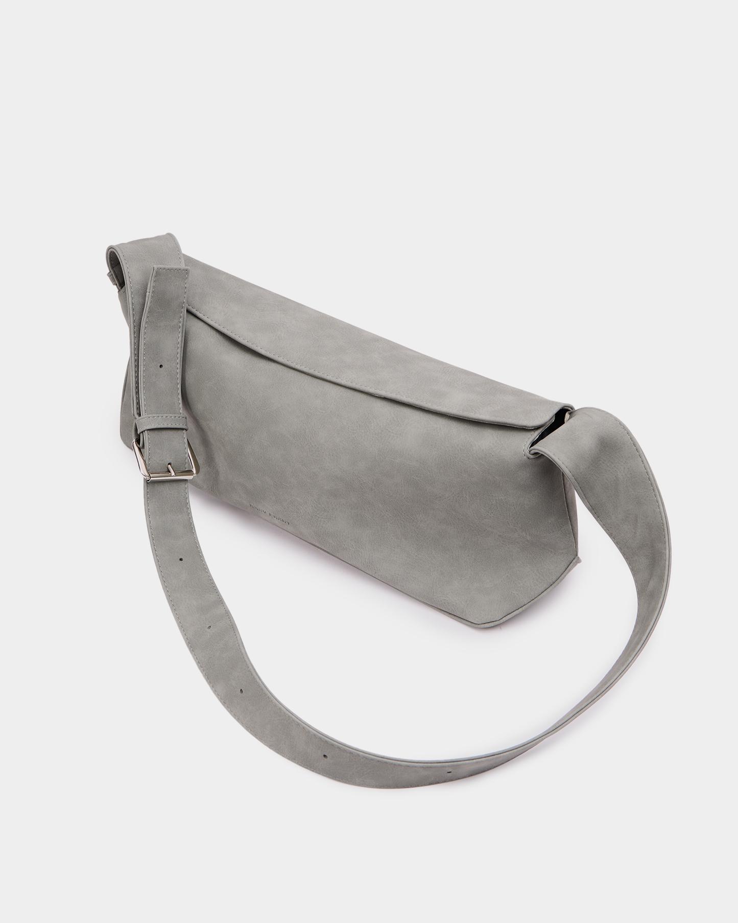 Небольшая прямоугольная мягкая сумка из экокожи с регулируемым ремнем в цвете серый нубук