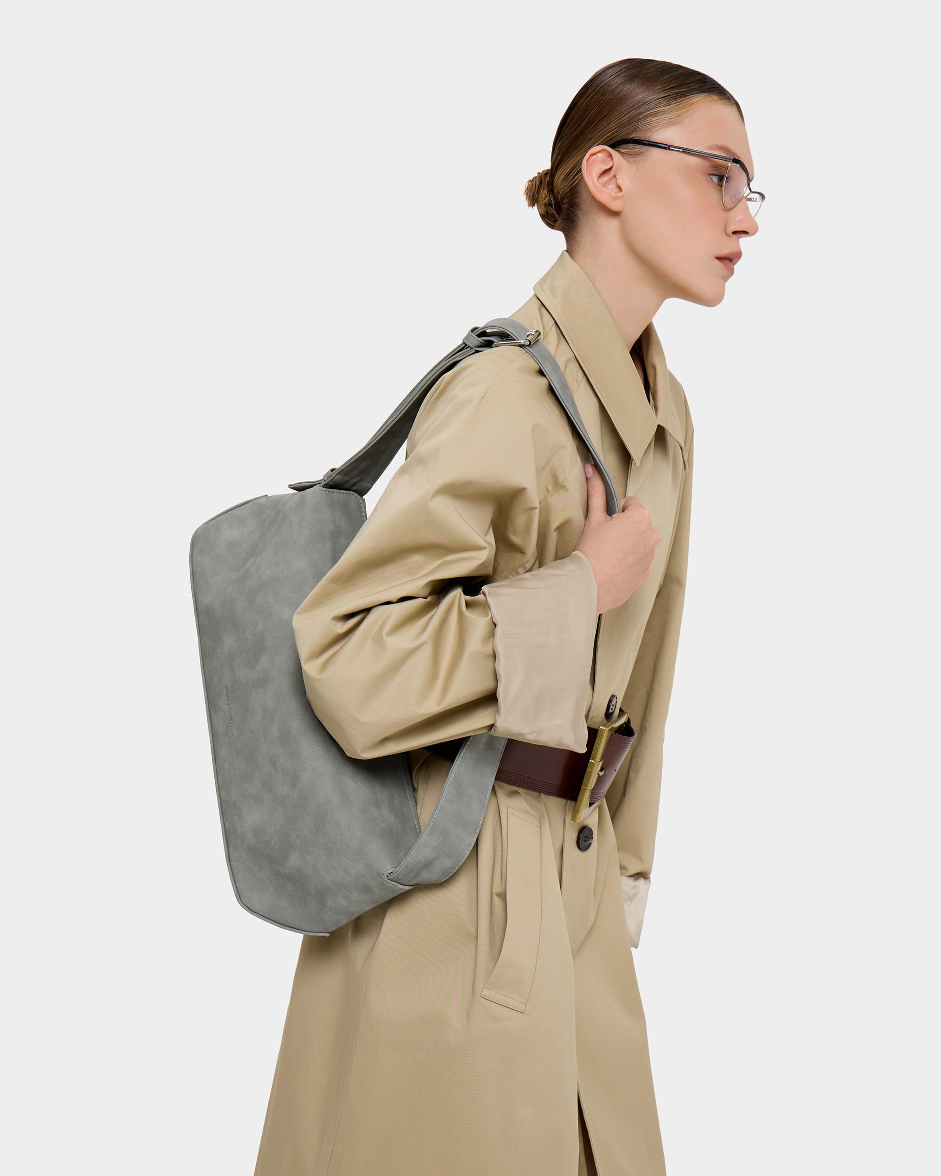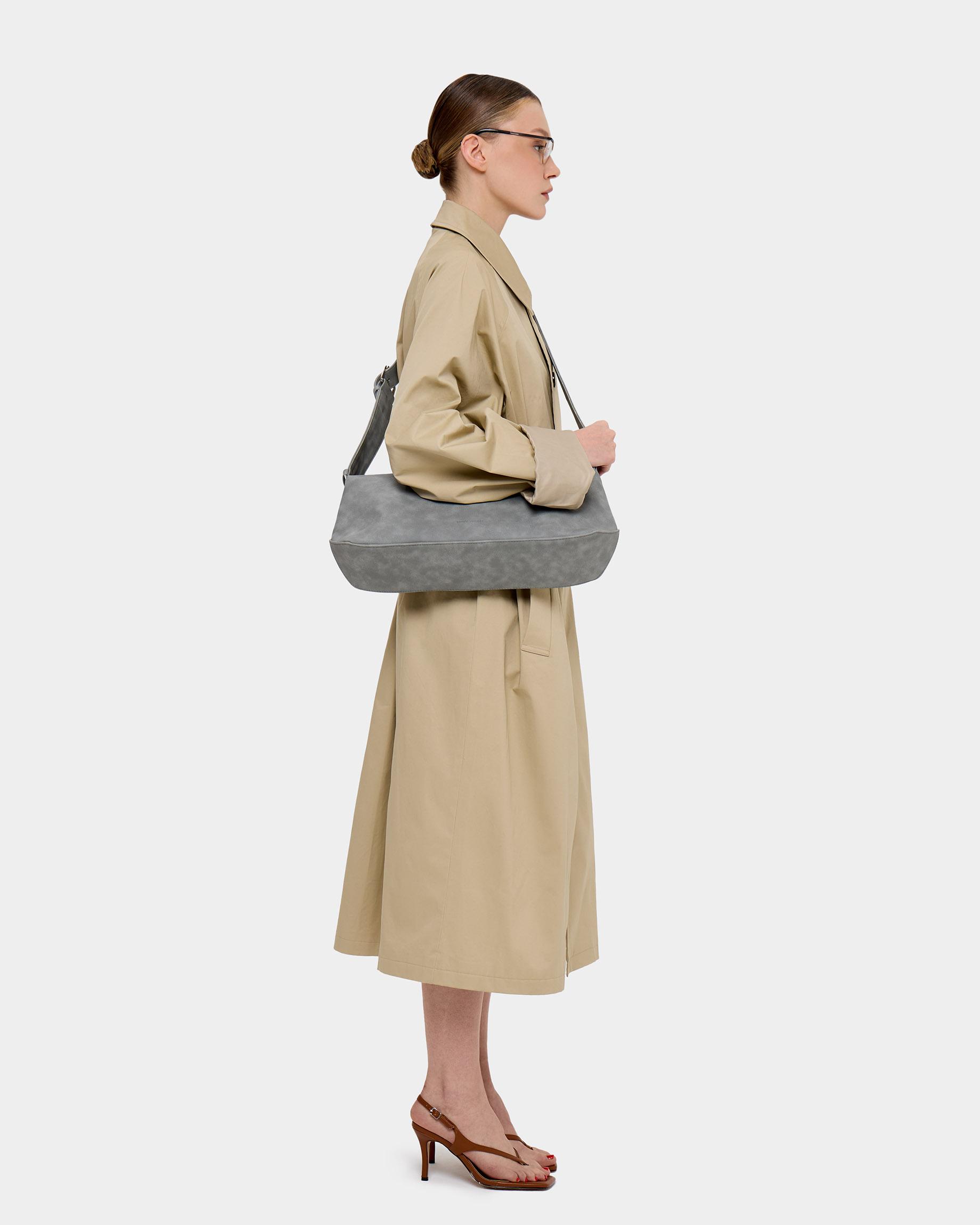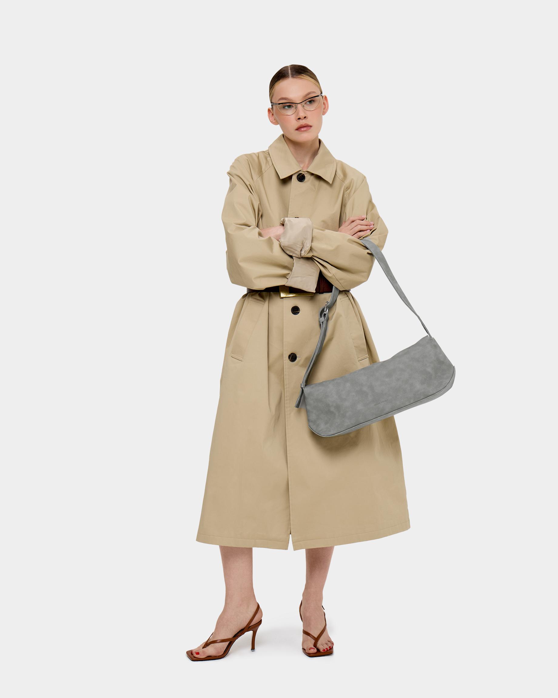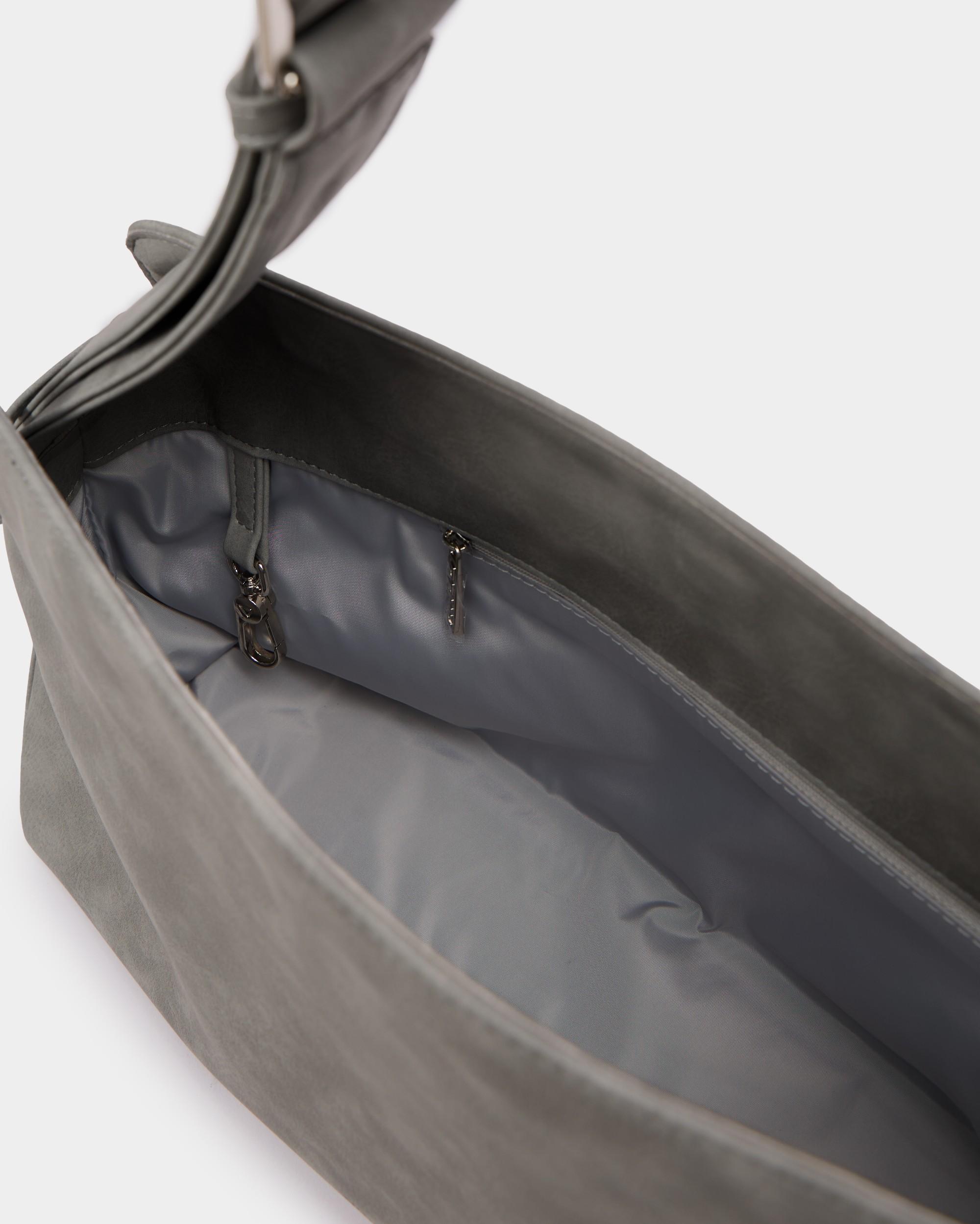 Небольшая прямоугольная мягкая сумка из экокожи с регулируемым ремнем в цвете серый нубук