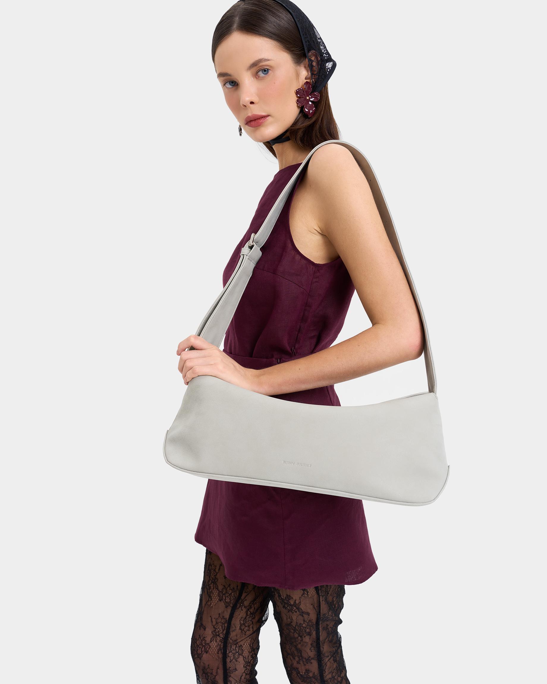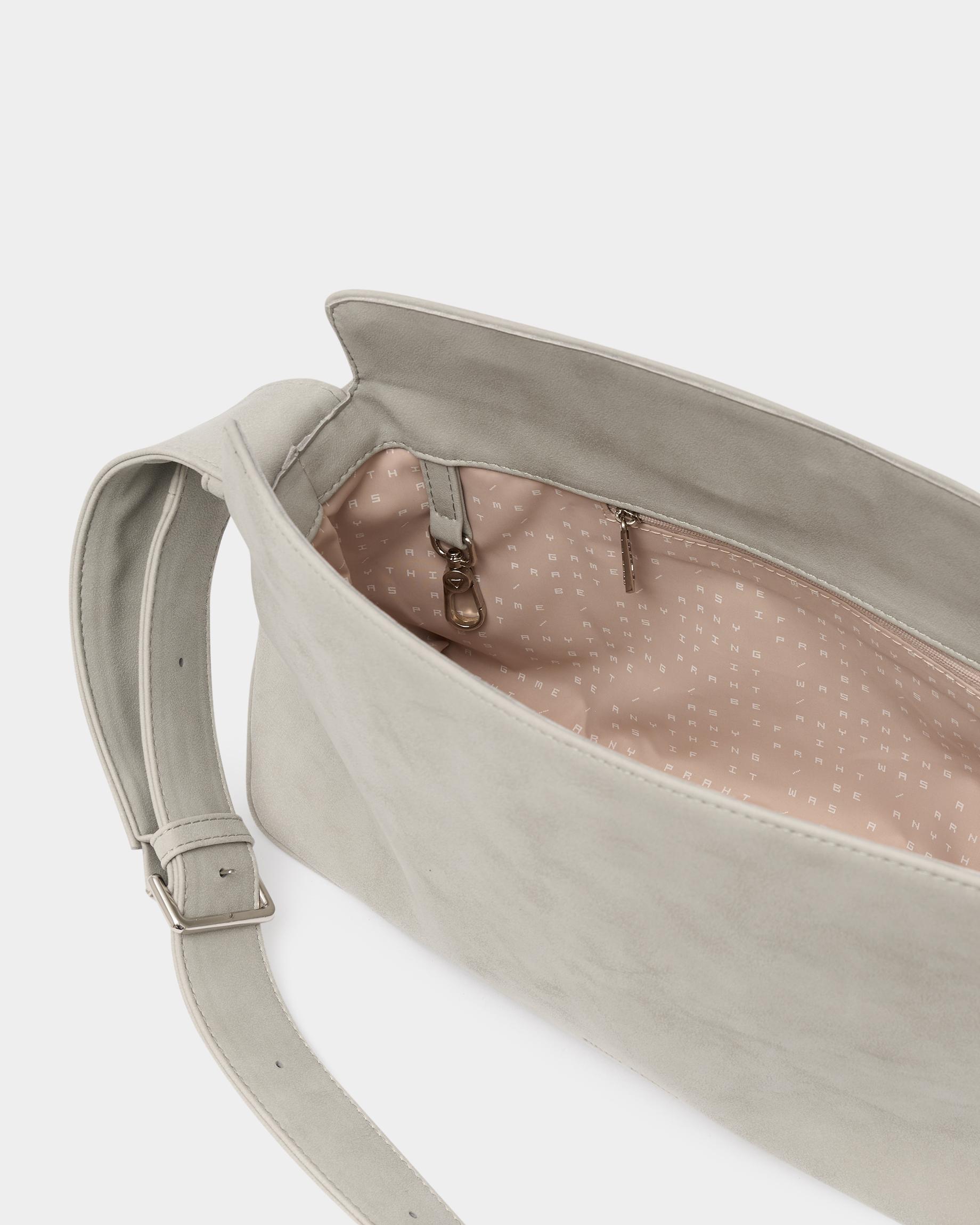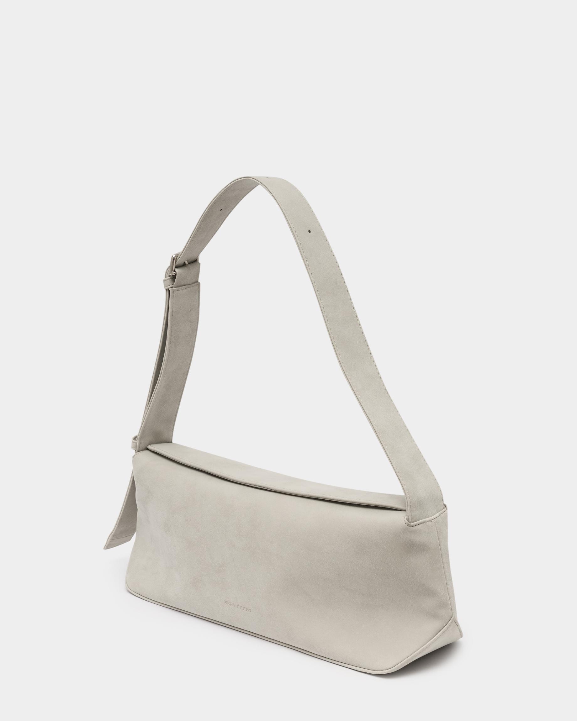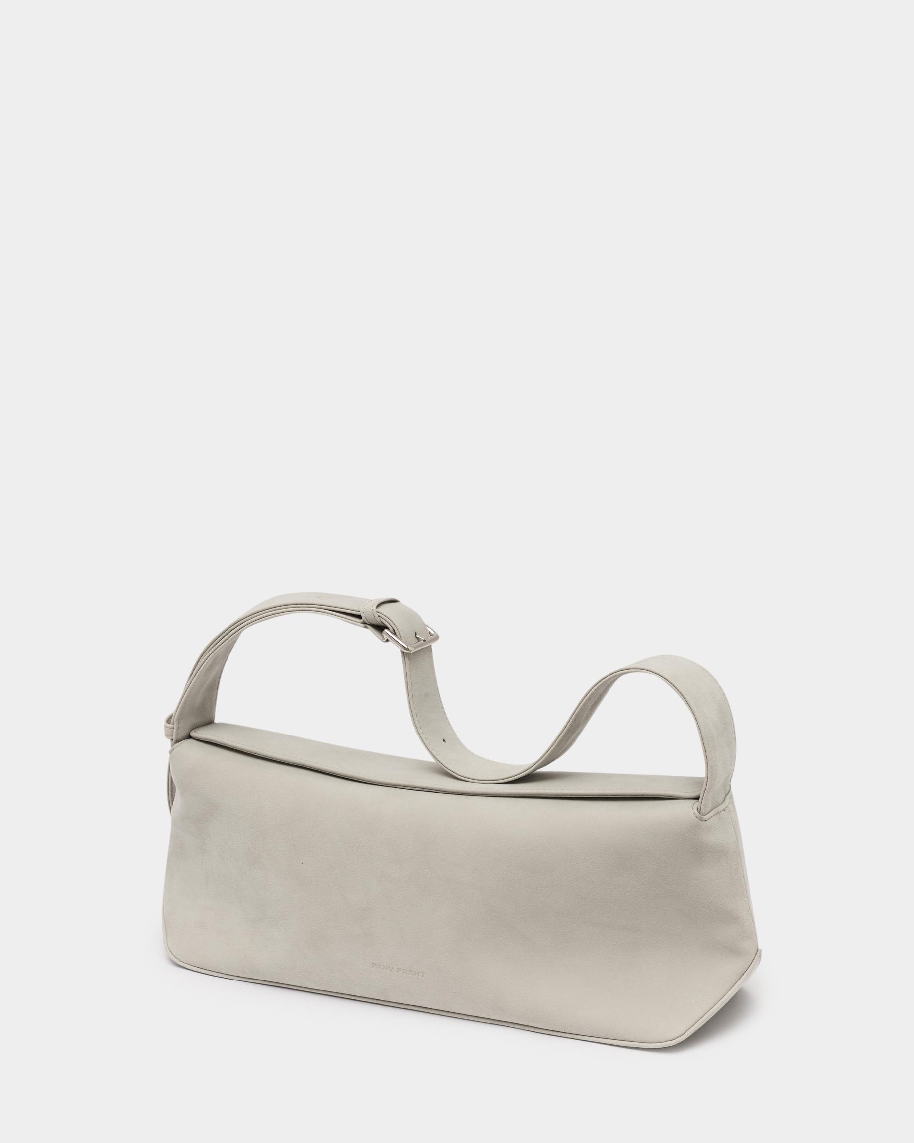 Небольшая прямоугольная мягкая сумка из экокожи с регулируемым ремнем в цвете жемчужный серый