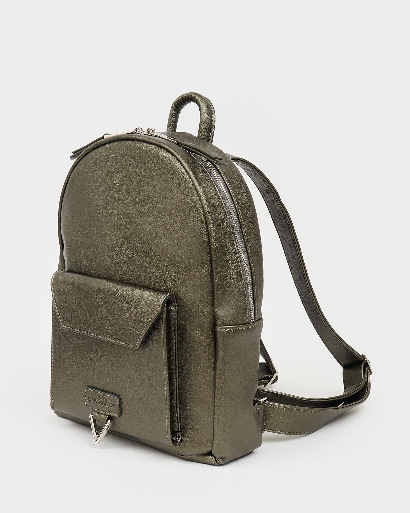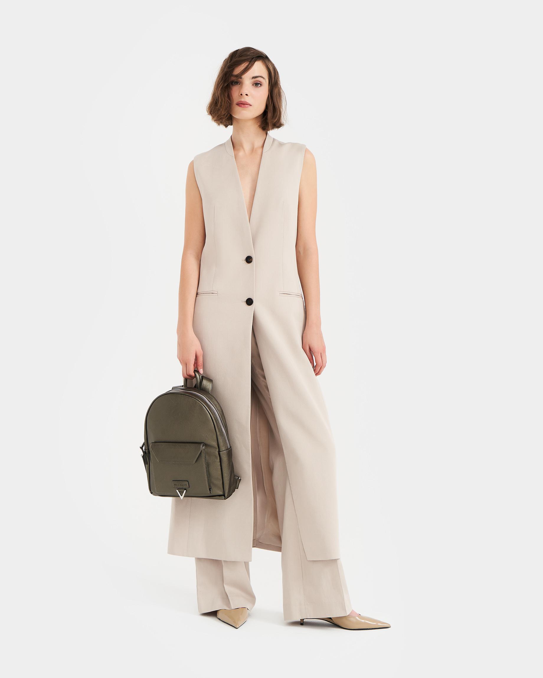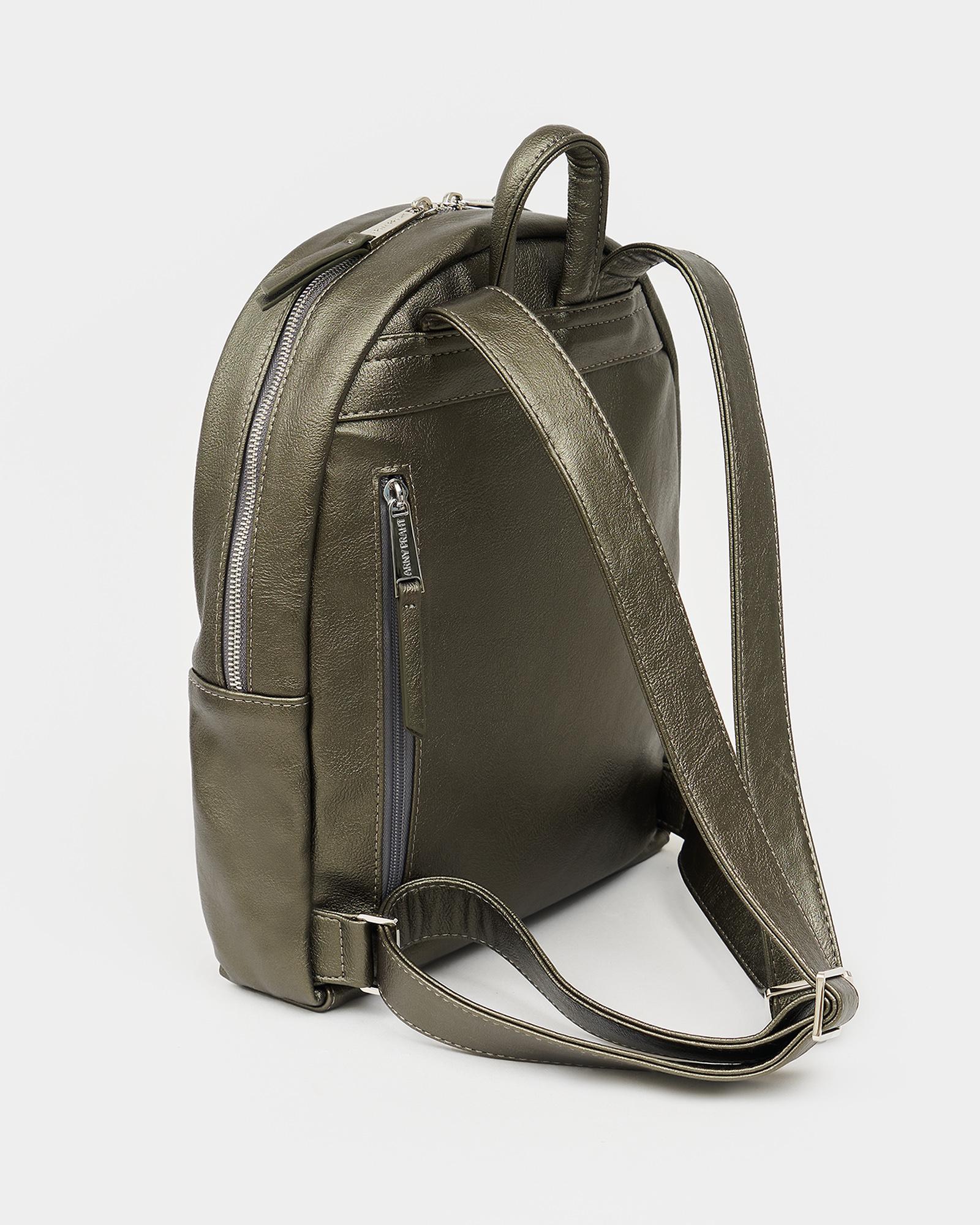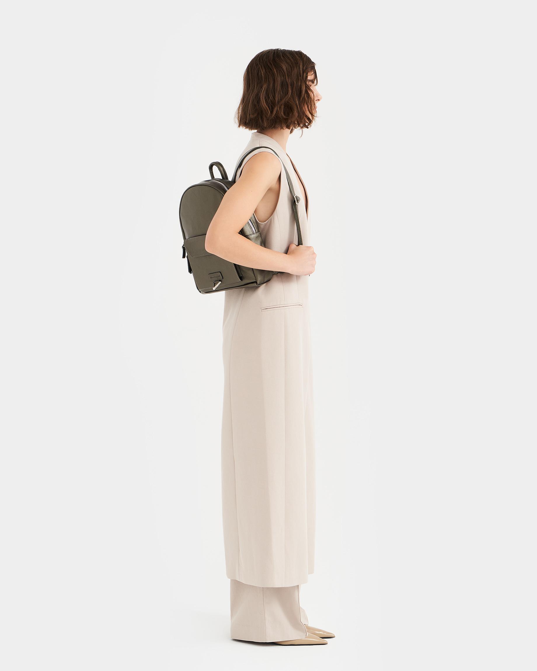 Городской женский рюкзак в цвете серо-зеленый металлик