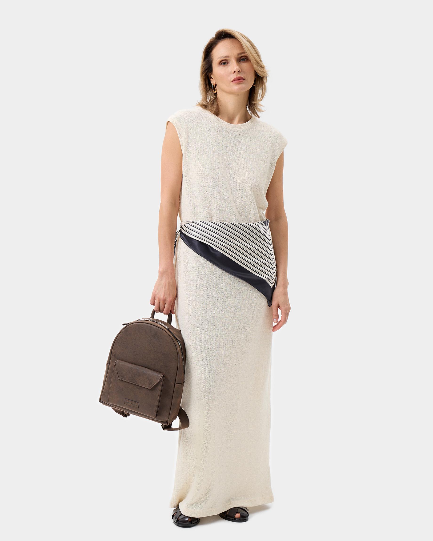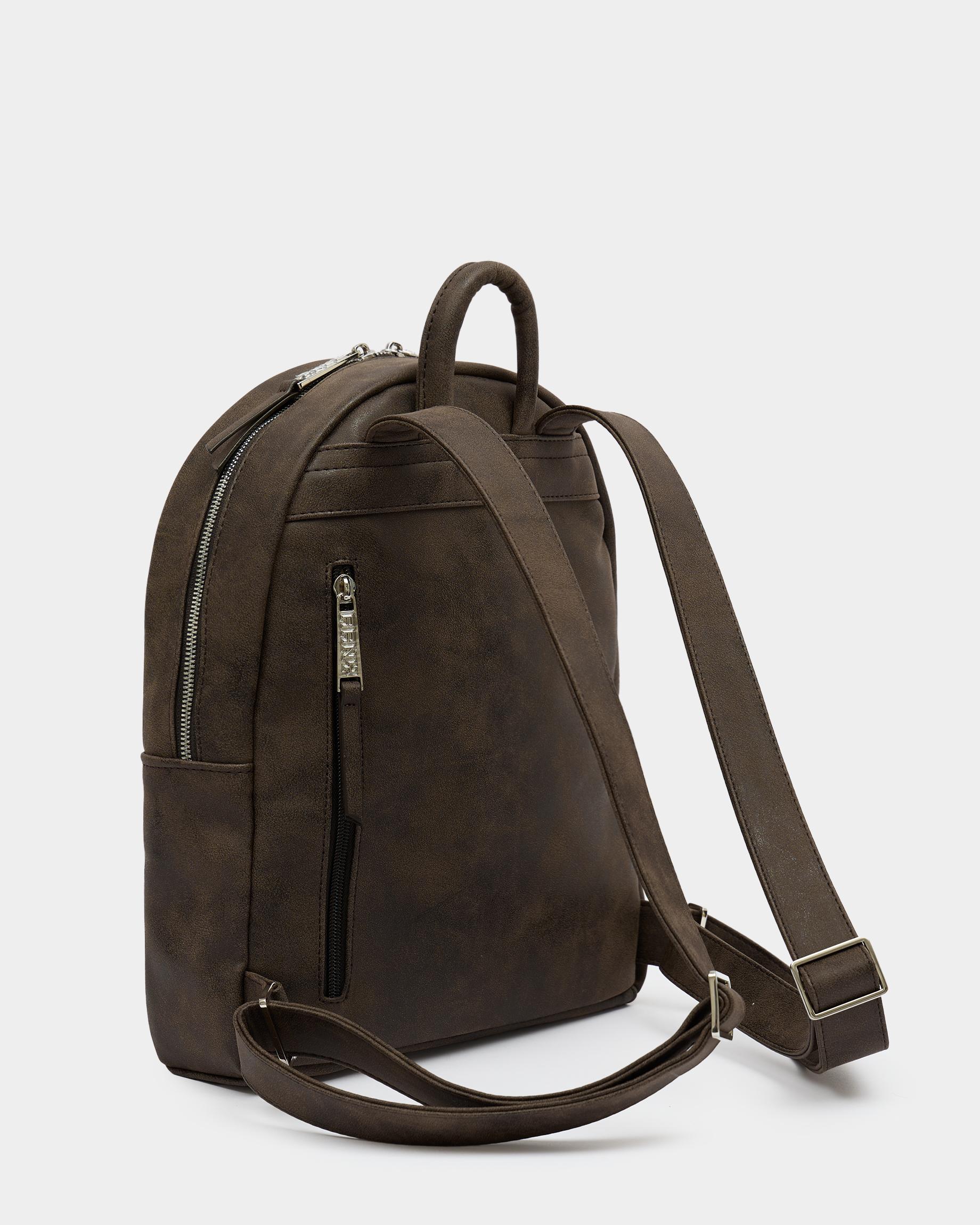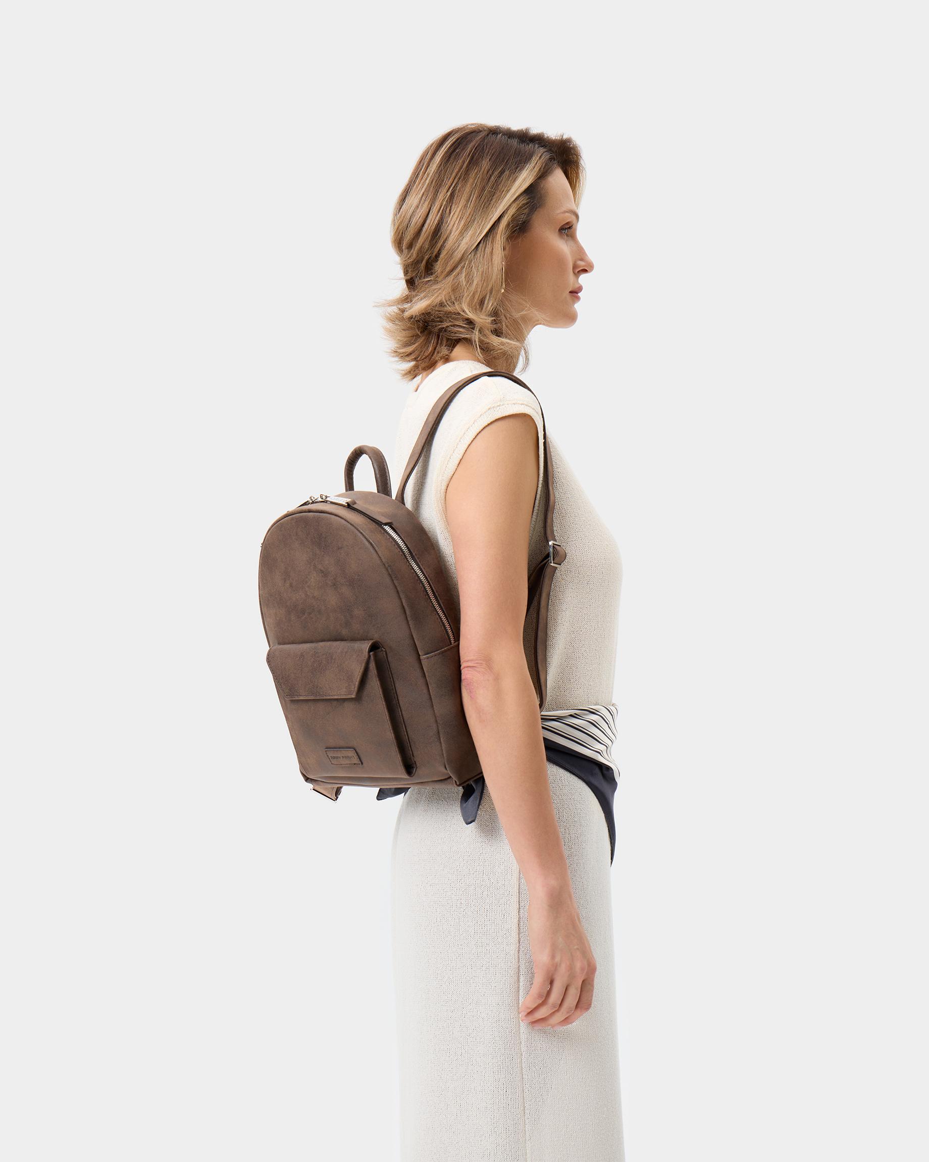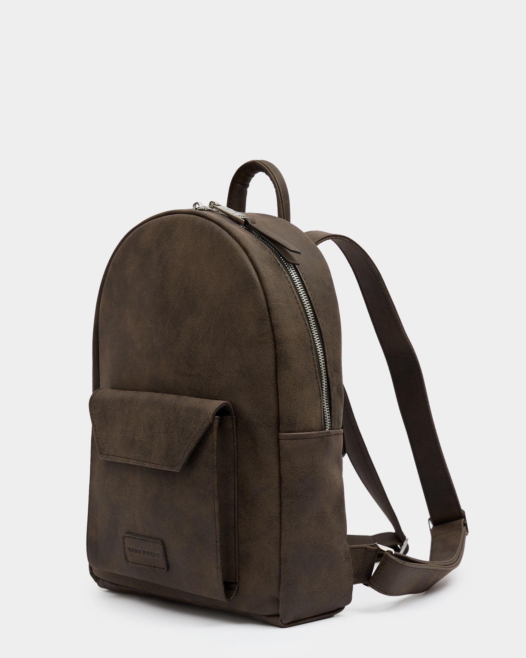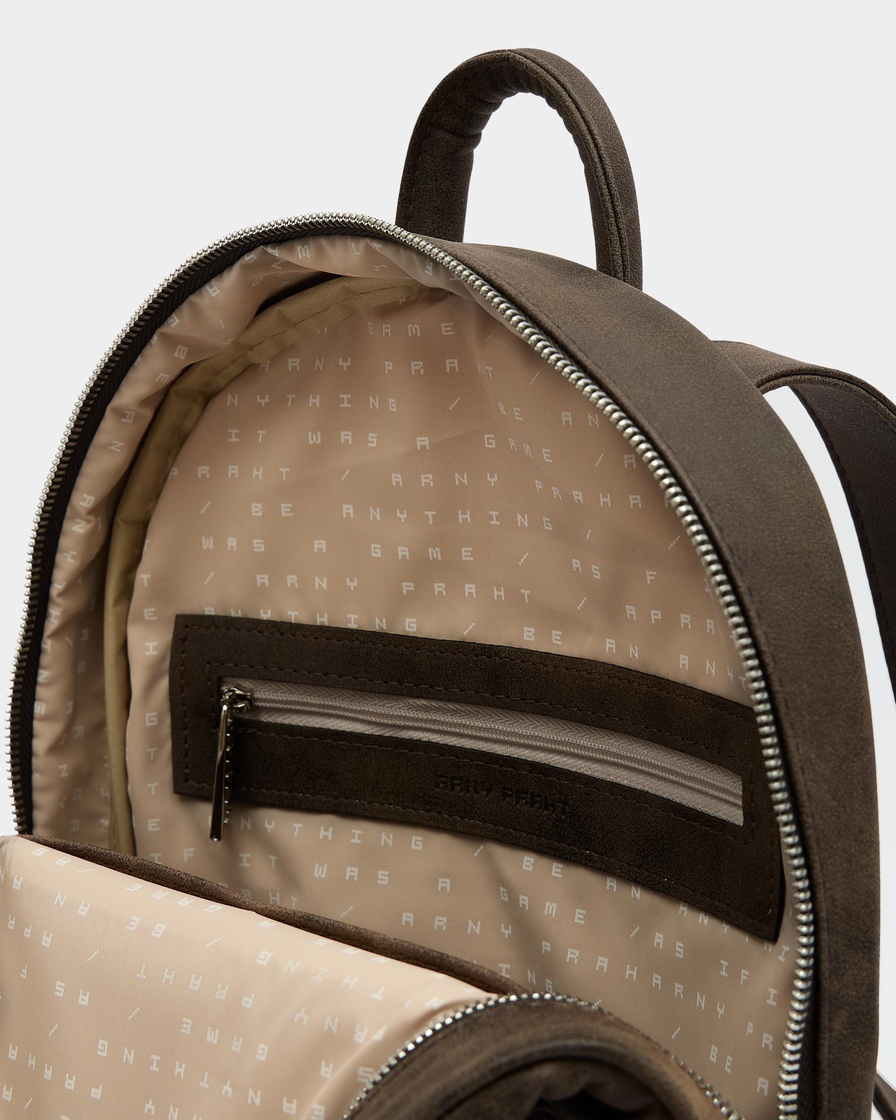 Вместительный рюкзак из замшевой экокожи, с накладным карманом в цвете брауни