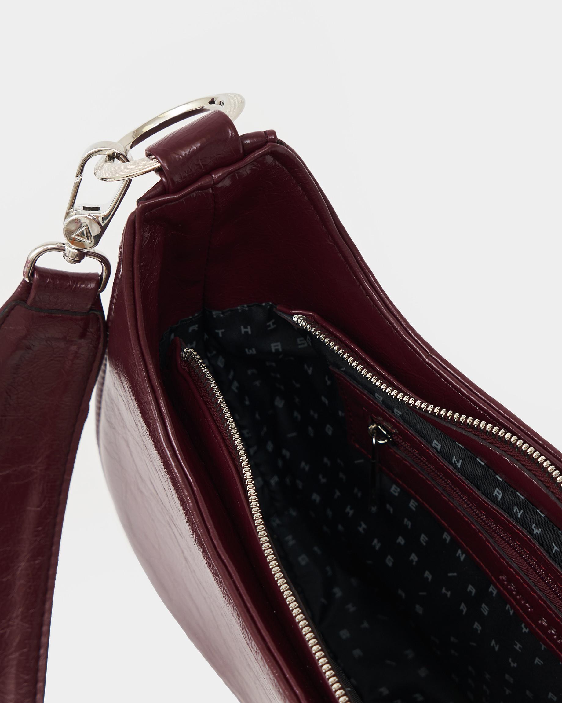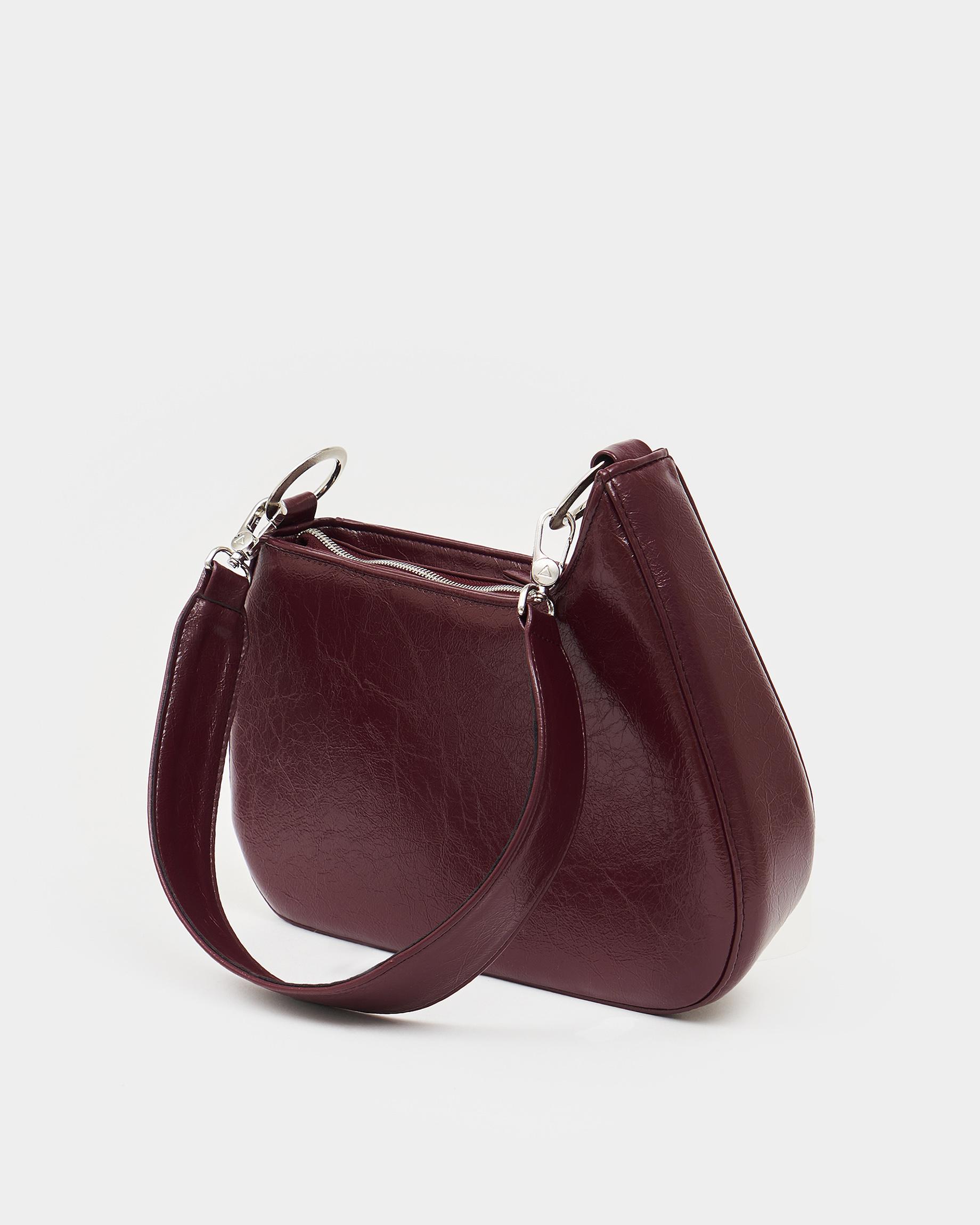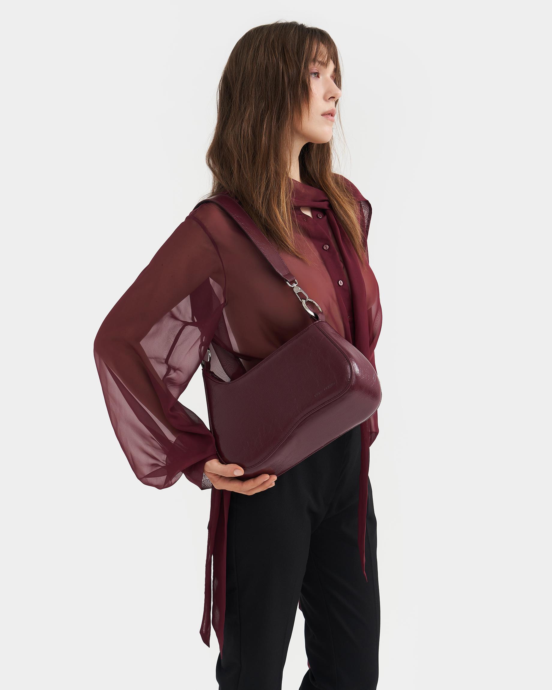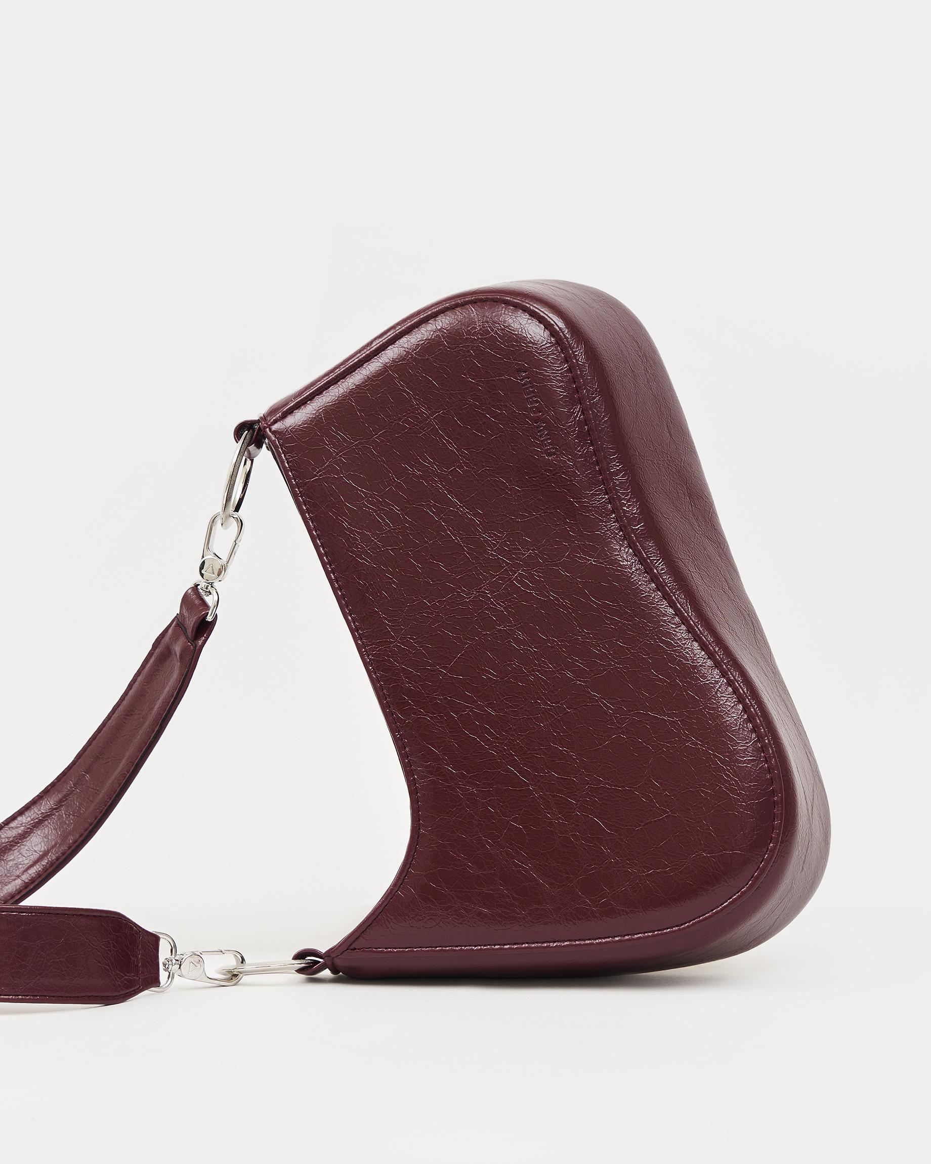 Каркасная сумка необычной формы в цвете бордо кракле