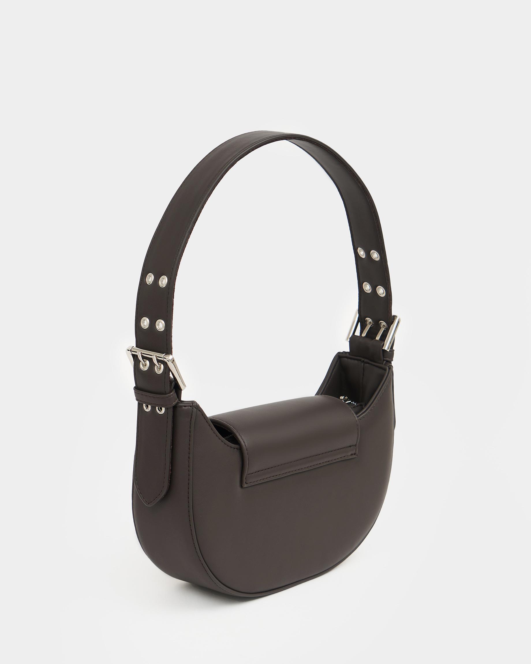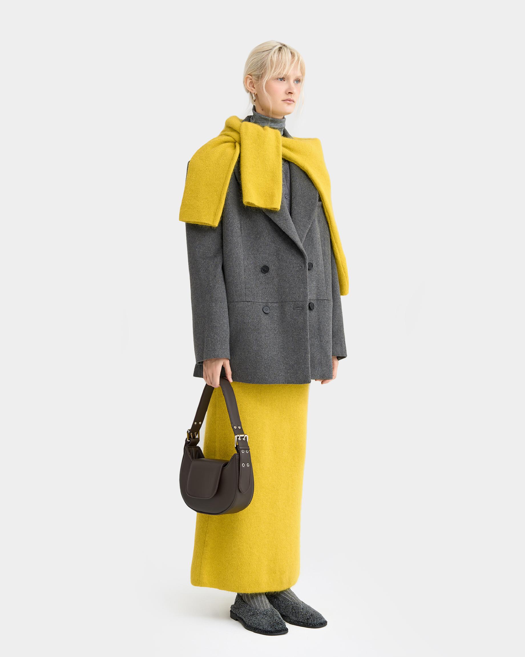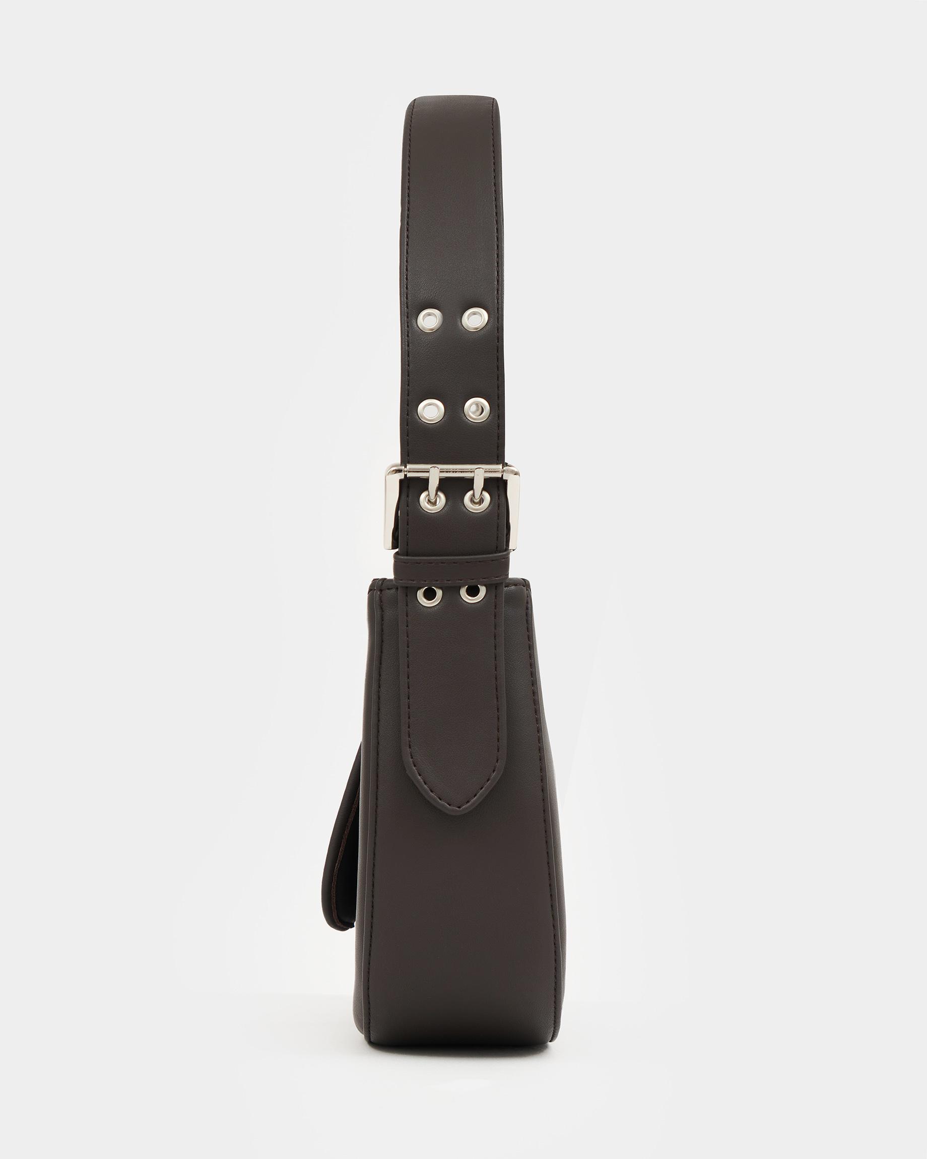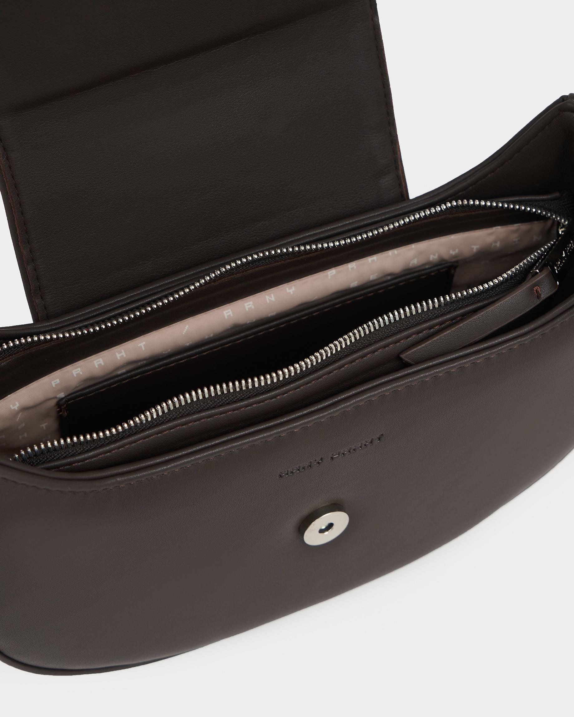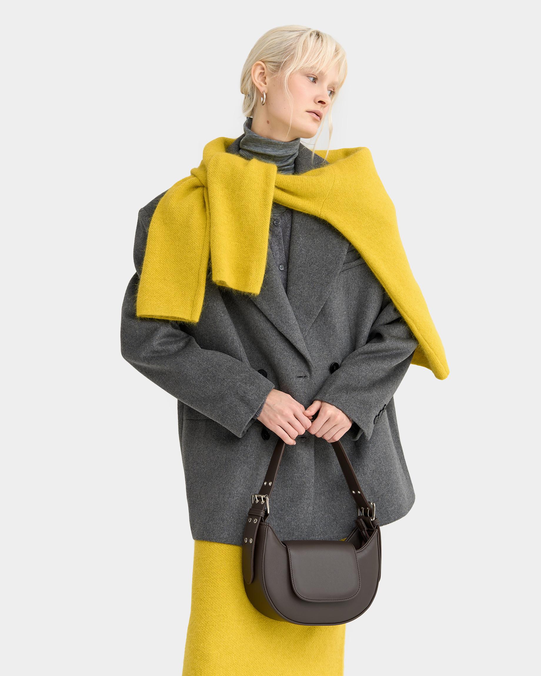 Сумка-багет цвета кофе с широким ремнем