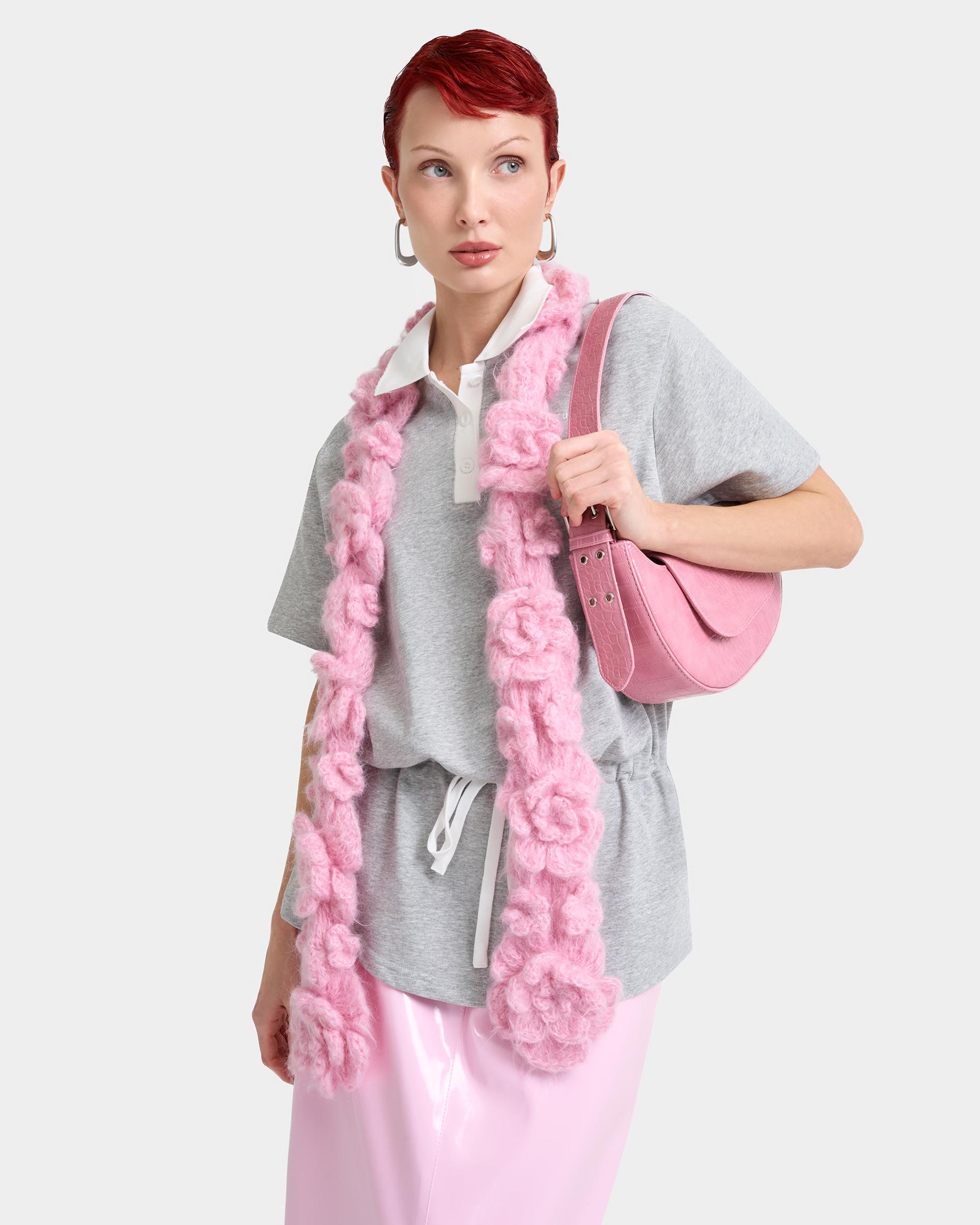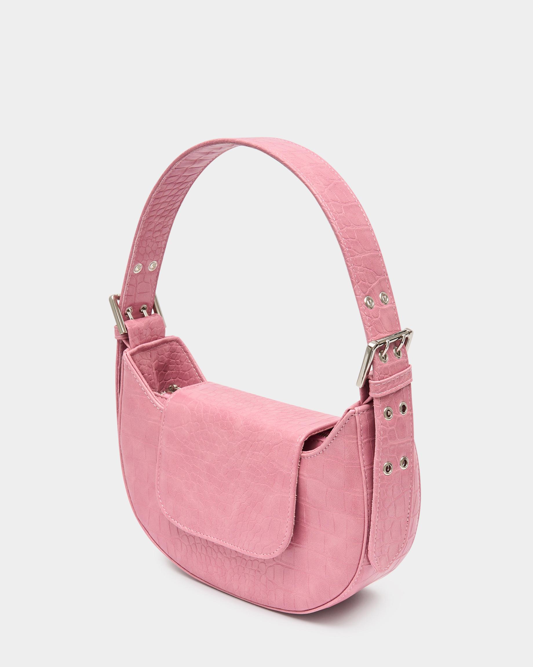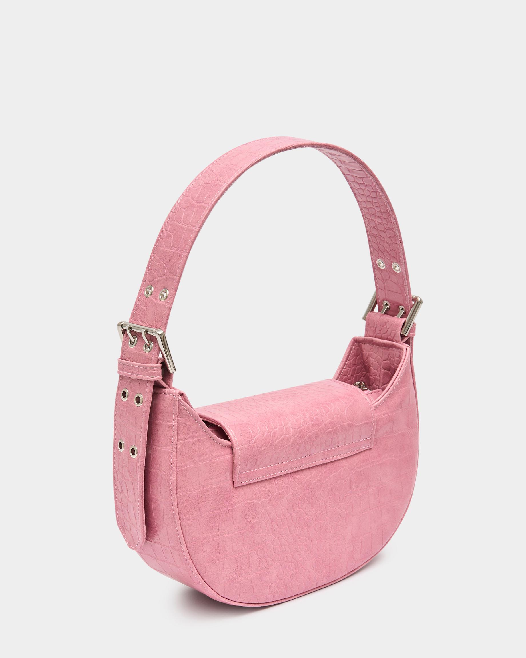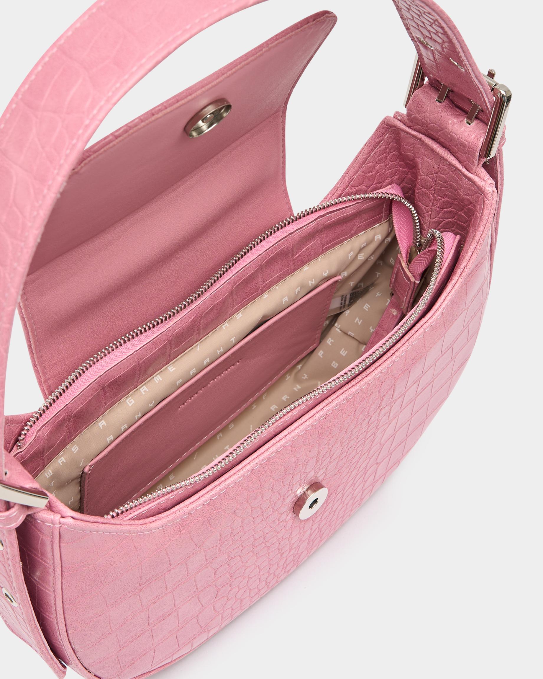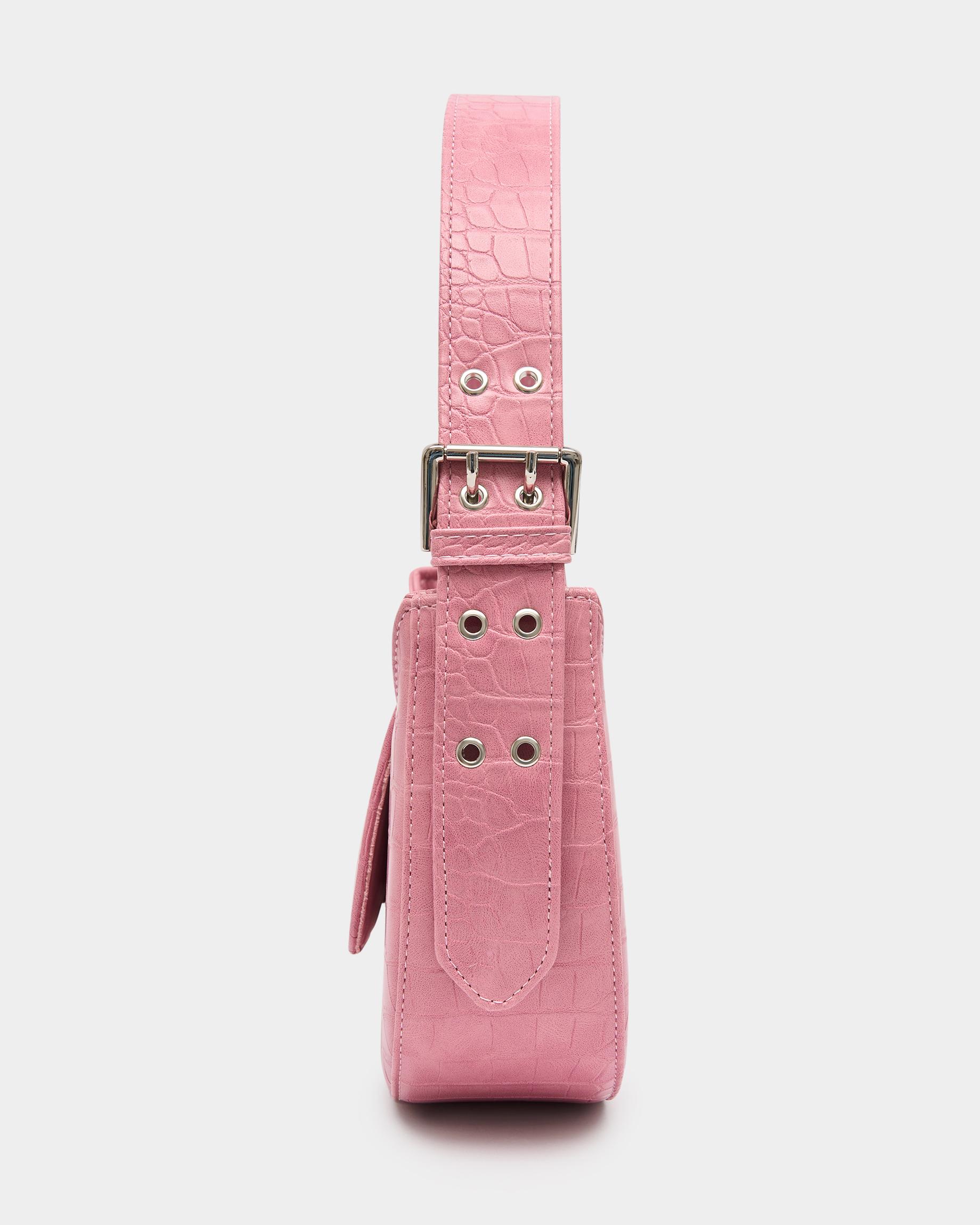 Сумка-багет цвета розовый крокодил с широким ремнем