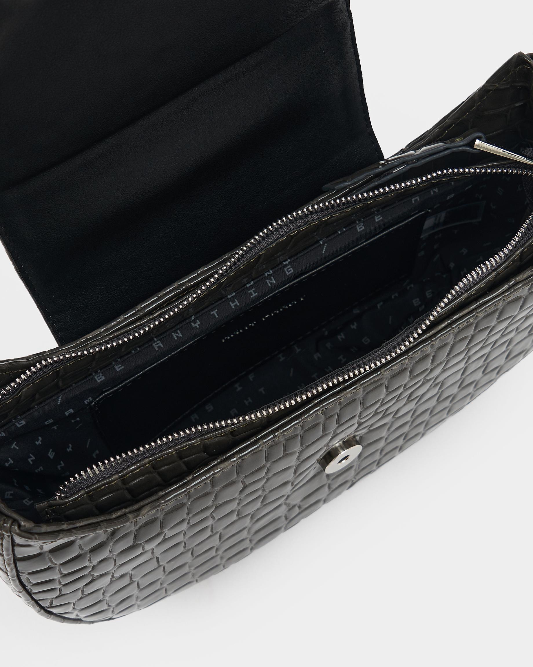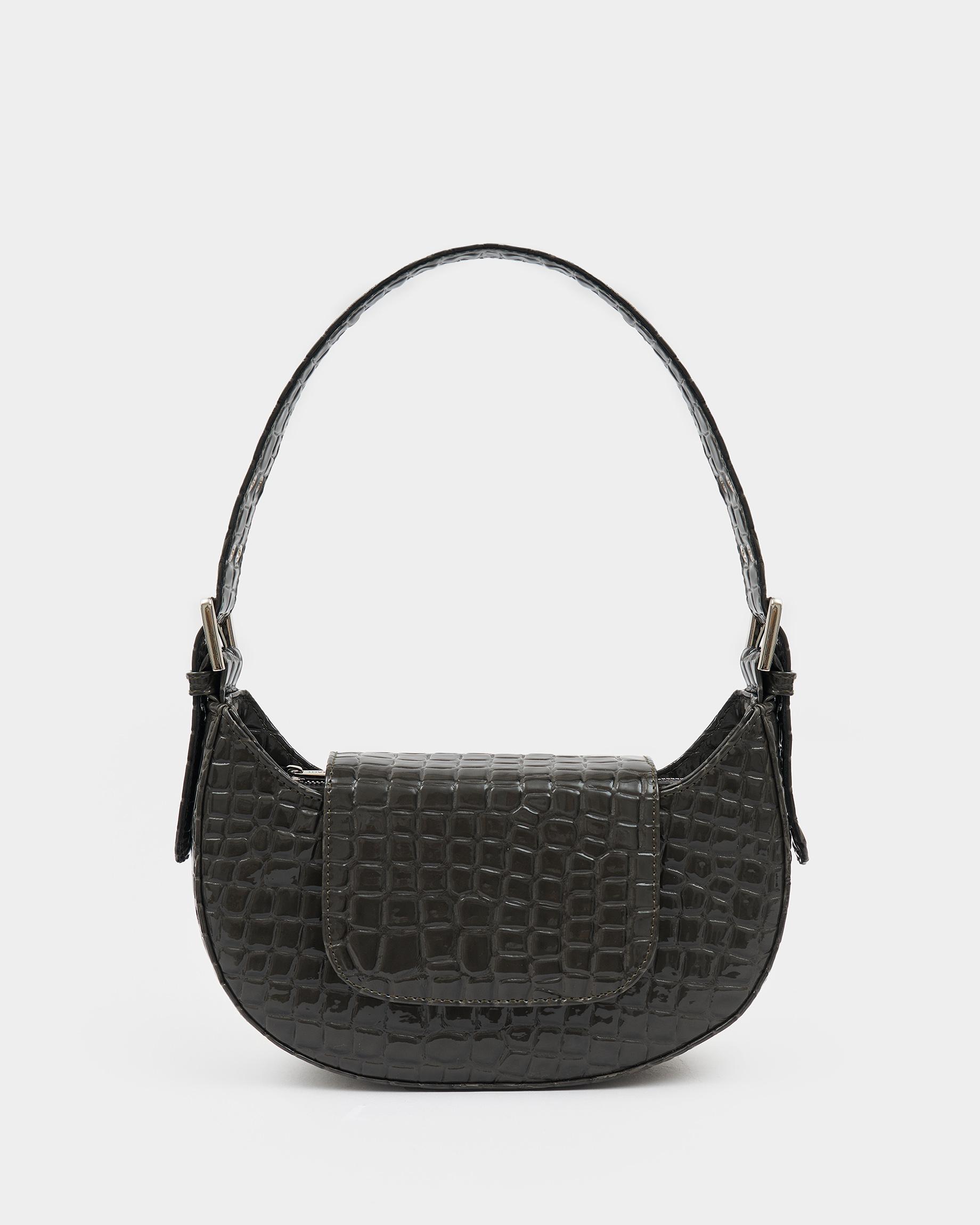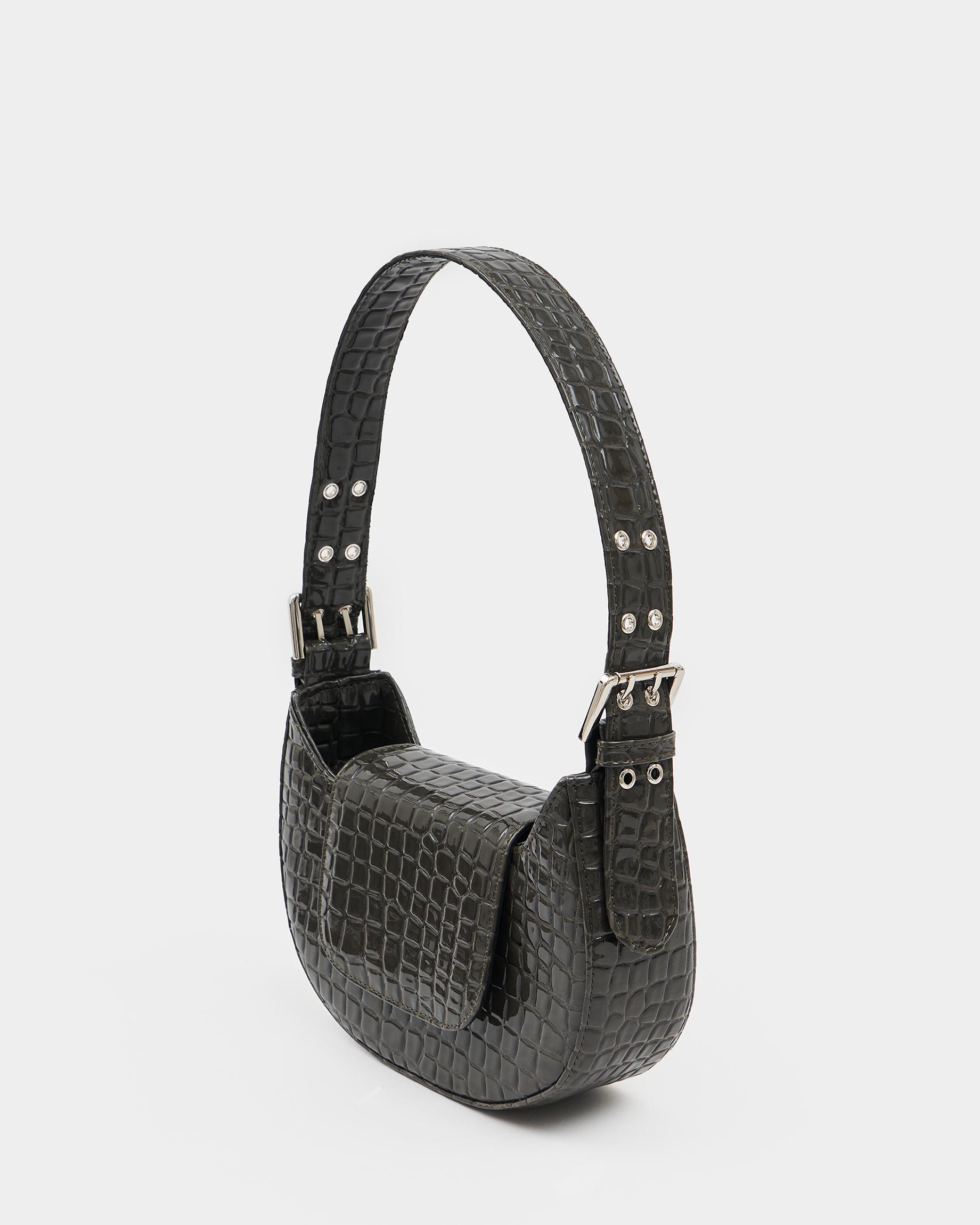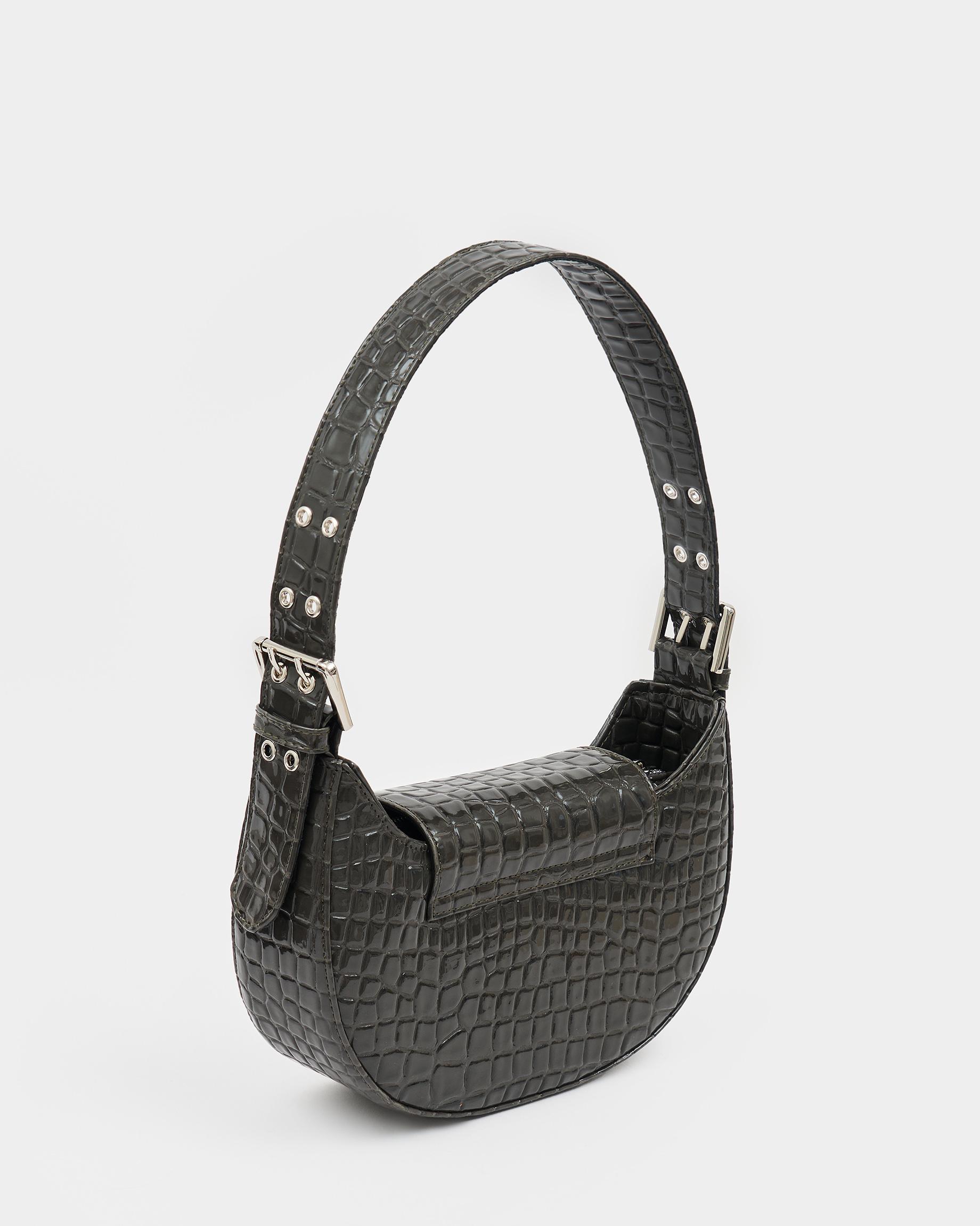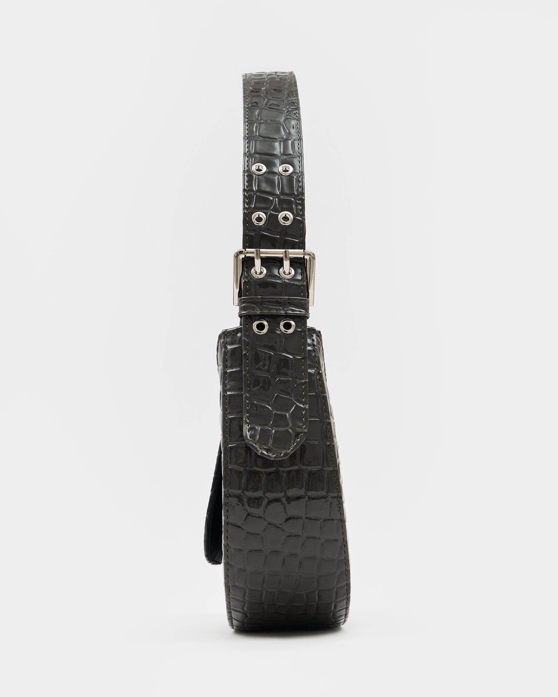 Сумка-багет цвета серый крокодил с широким ремнем